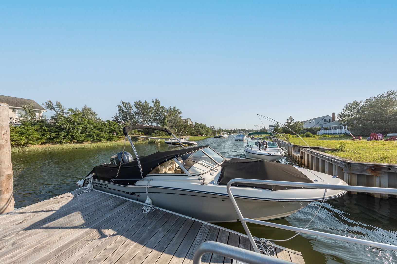 Designer style meets an unrivaled waterfront location in this stunning, fully renovated four-bedroom, three-and-a-half-bathroom Southampton home featuring a private dock and direct access to Peconic Bay beaches. Beautifully positioned on Cold Spring Point Road - an ultra-private community where homes rarely change hands- this residence is surrounded by shimmering water vistas from the northwestern bay views to the canal and pond on the southea
