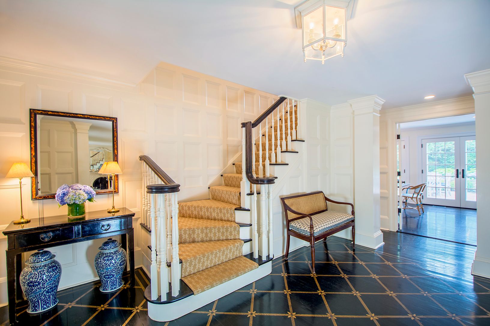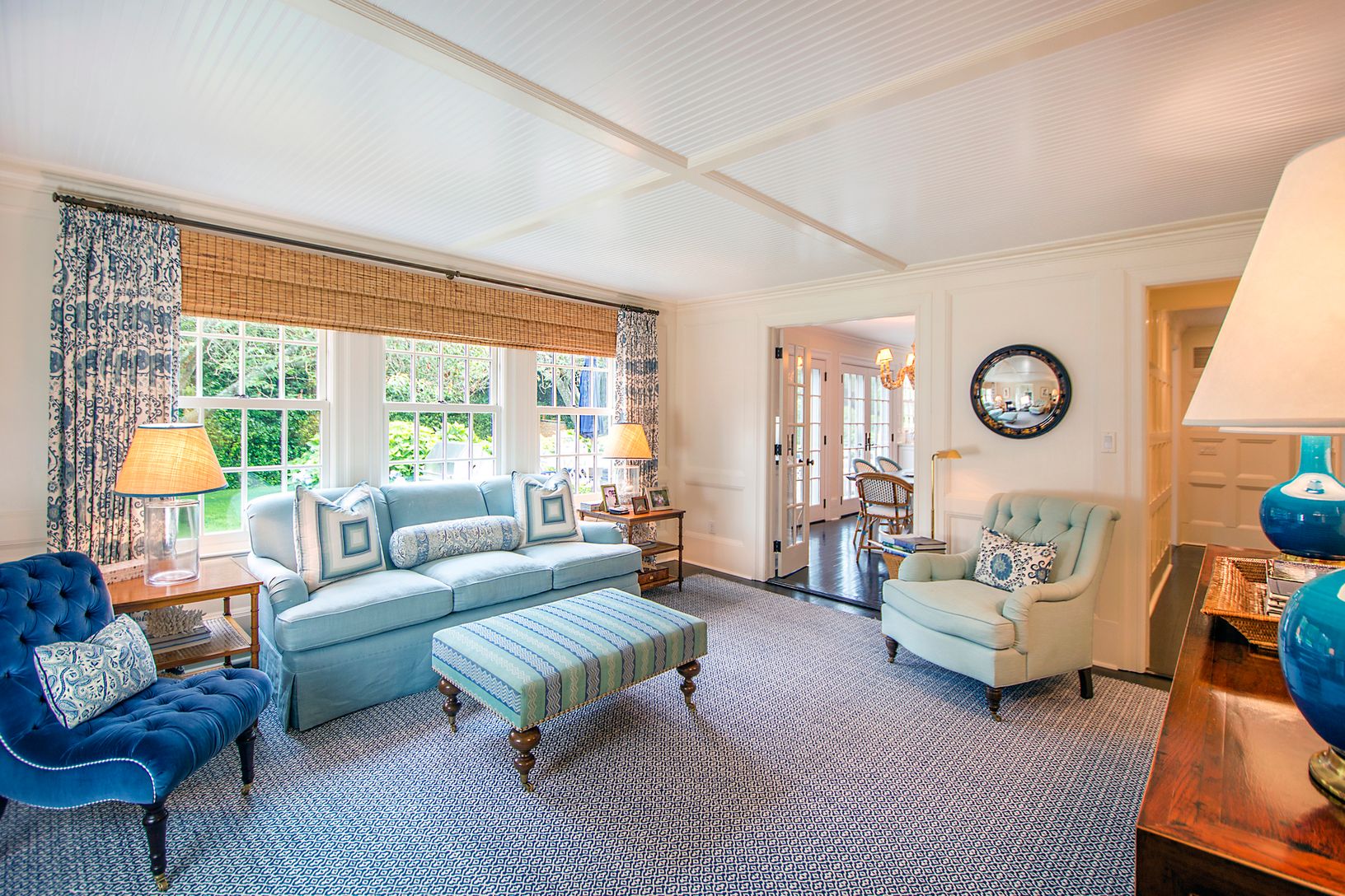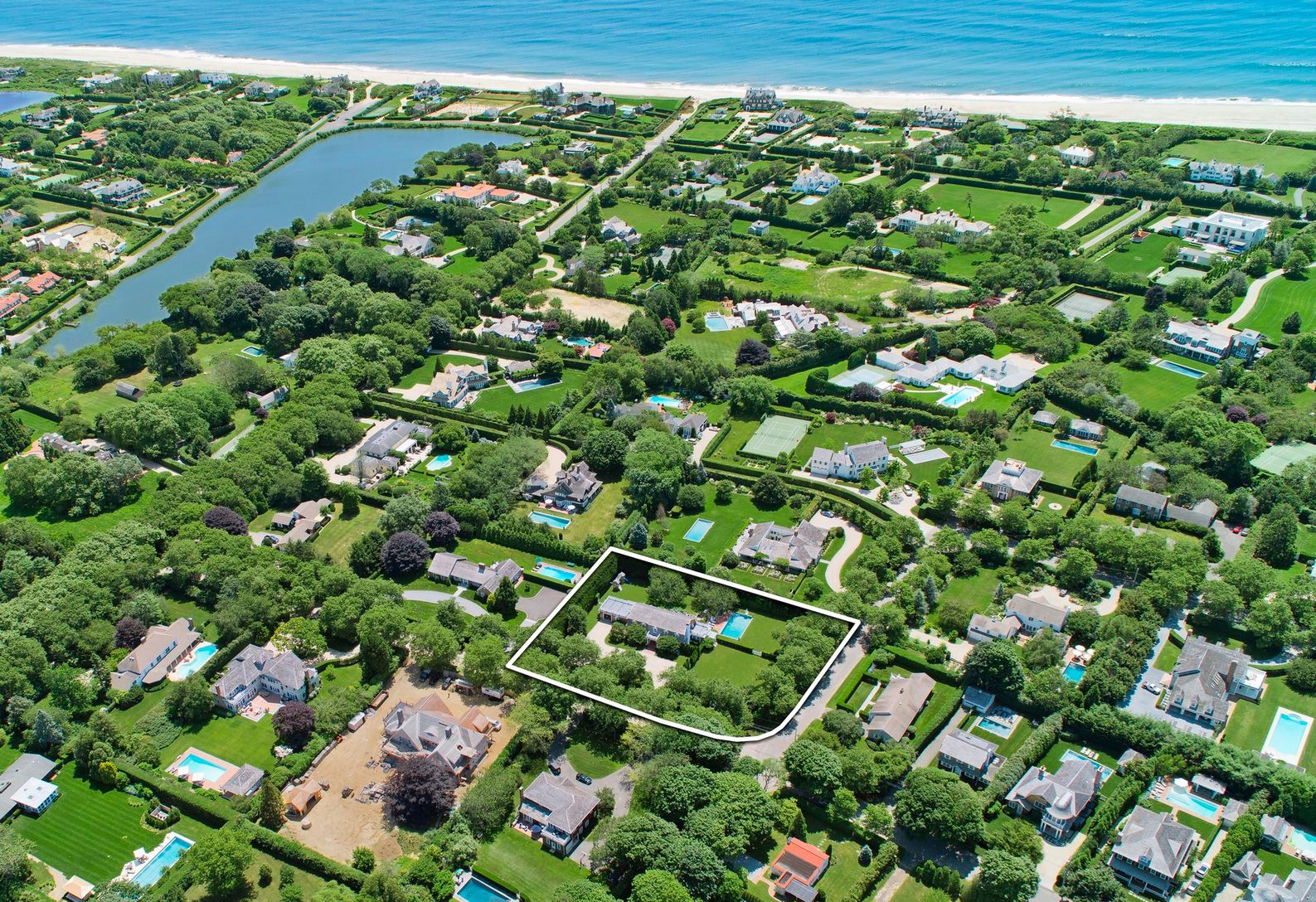 The sound of ocean waves wafts across this lovely Southampton Village home set on one +/- beautifully landscaped acre with heated 40'x20' Gunite pool. High hedges and two gates open to a half-moon gravel drive to the front brick walkway and covered front porch of this shingle-sided traditional residence. With six bedrooms and 6.5 bathrooms in all, the interior spaces are marked by dark polished wood floors and detailed white painted wainscoti