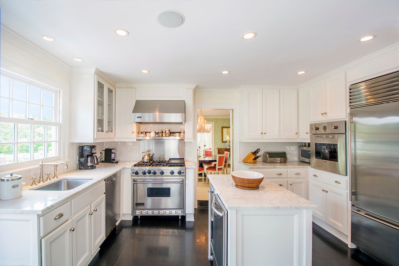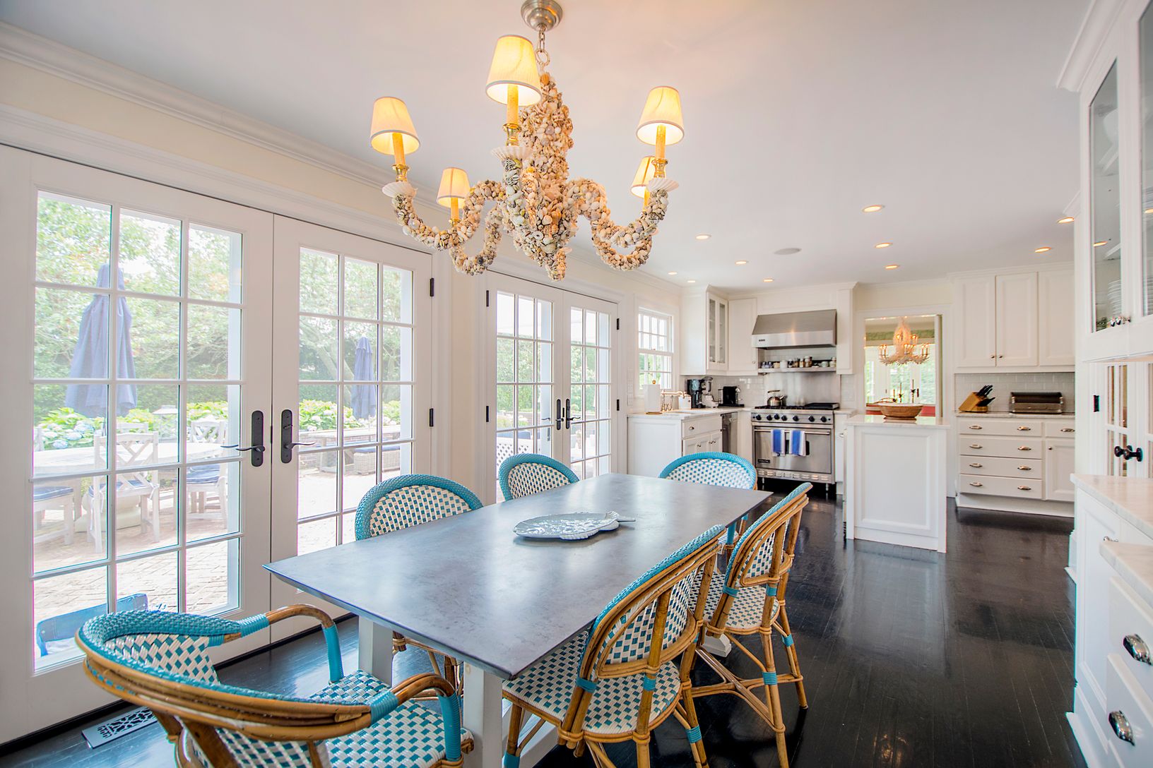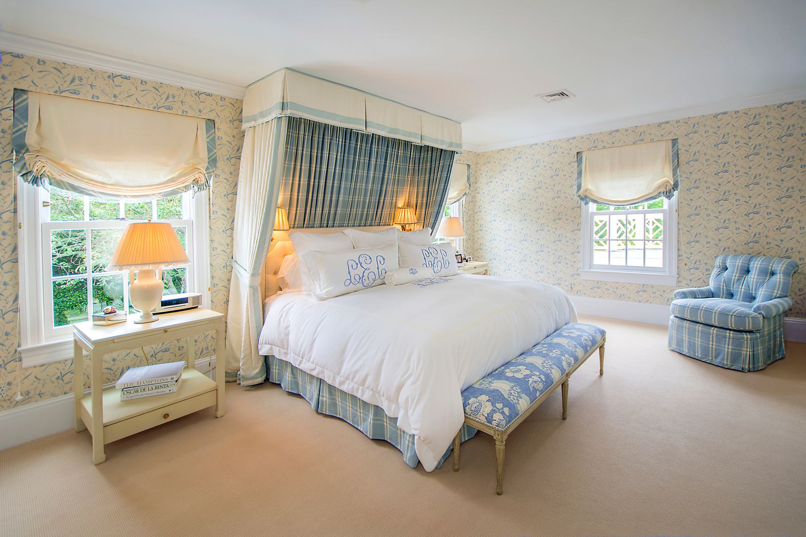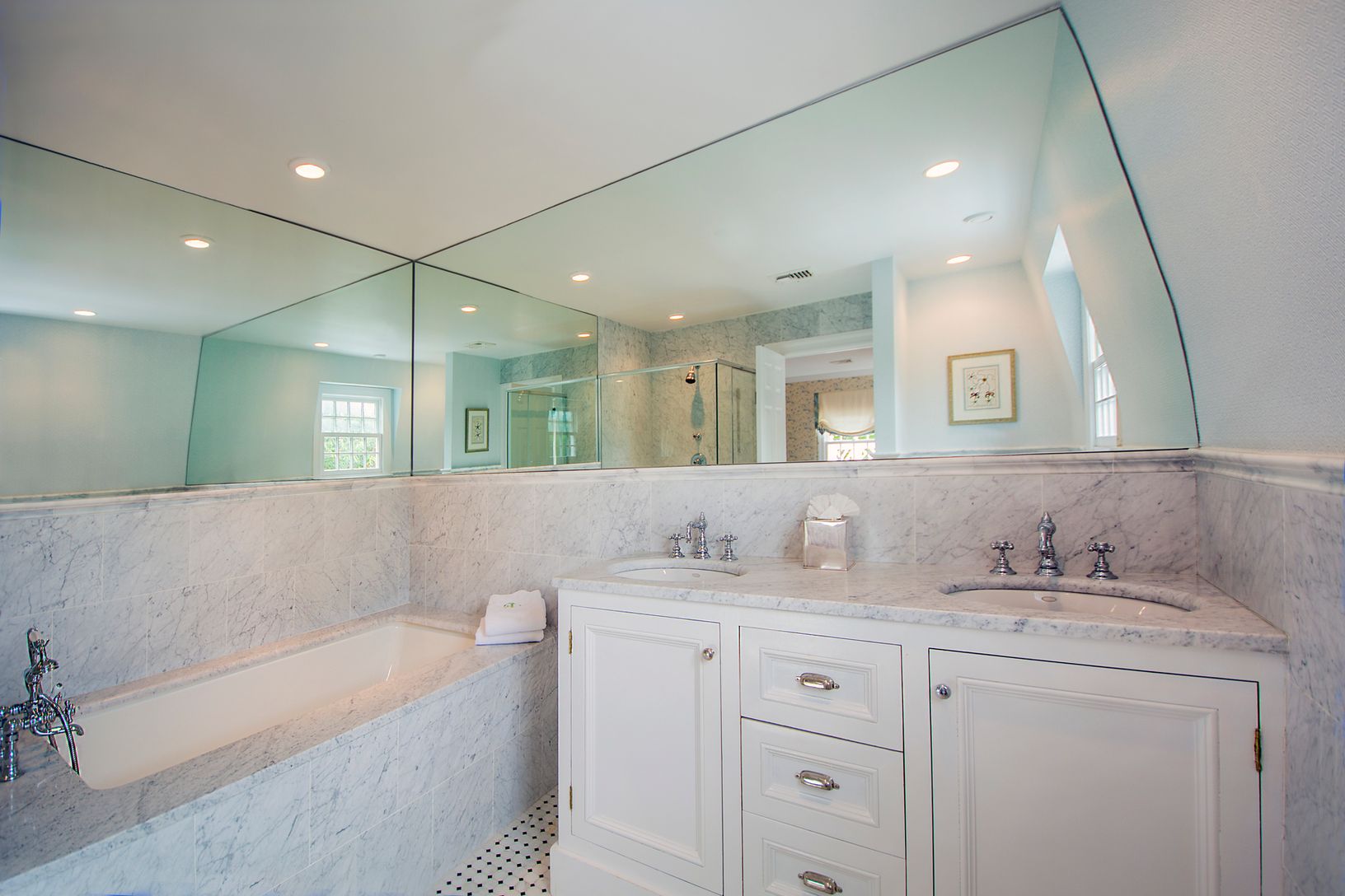 The sound of ocean waves wafts across this lovely Southampton Village home set on one +/- beautifully landscaped acre with heated 40'x20' Gunite pool. High hedges and two gates open to a half-moon gravel drive to the front brick walkway and covered front porch of this shingle-sided traditional residence. With six bedrooms and 6.5 bathrooms in all, the interior spaces are marked by dark polished wood floors and detailed white painted wainscoti