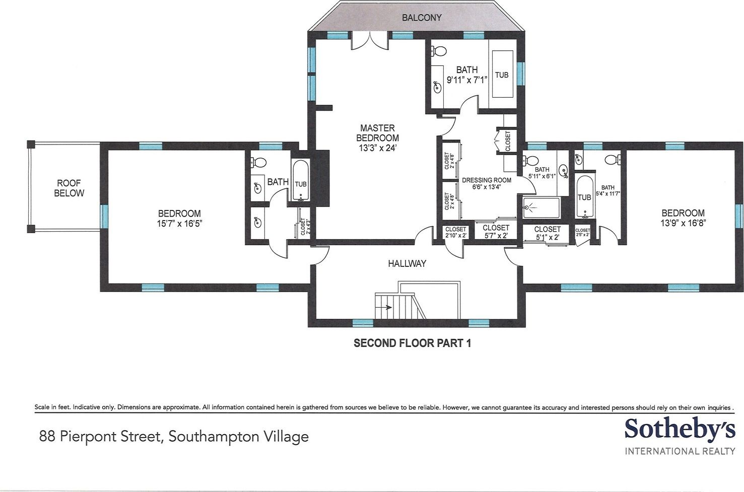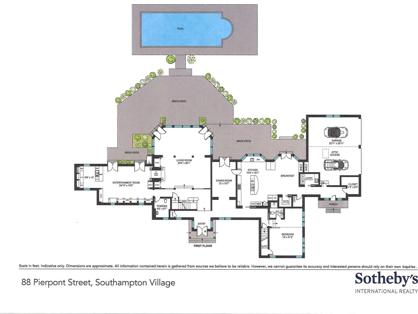 A brand new listing on a coveted quiet Southampton village street, less than a mile to the beach and village, is now available. The 4,800 square feet south-facing residence offers 5 bedrooms, 6 baths set among 1.2 acres of beautifully landscaped gardens and mature trees. Amenities include an up-to-date oversized chef's kitchen, formal dining room, a den with full entertainment bar, a two car garage, a separate guest wing, a bright step-down li