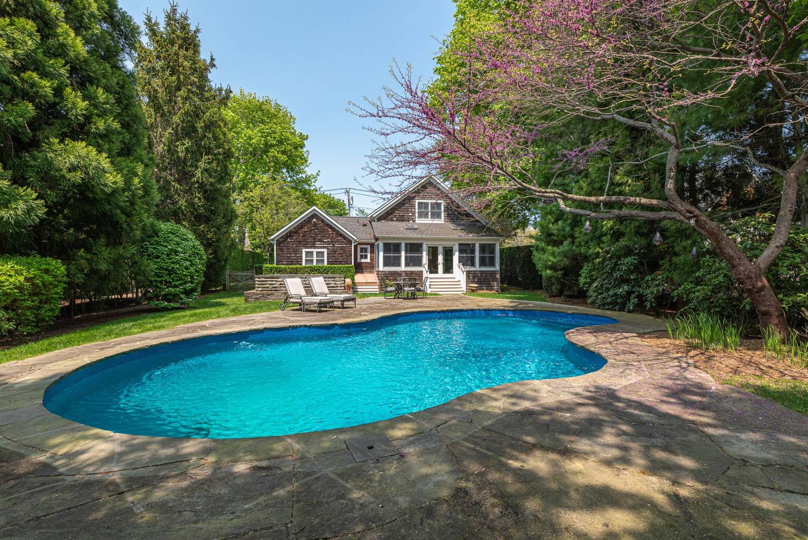 Located in the heart of Southampton Village, this classic 3 bedroom 3 full bath village home is set on .26 +/- private acres and offers a south facing rear yard with a natural free form in-ground pool and a fantastic sunroom overlooking the beautifully landscaped private back yard. Renovated in 2004, the first floor has an open floor plan along with an updated kitchen that features a large center island, large pantry, stainless steel appliance