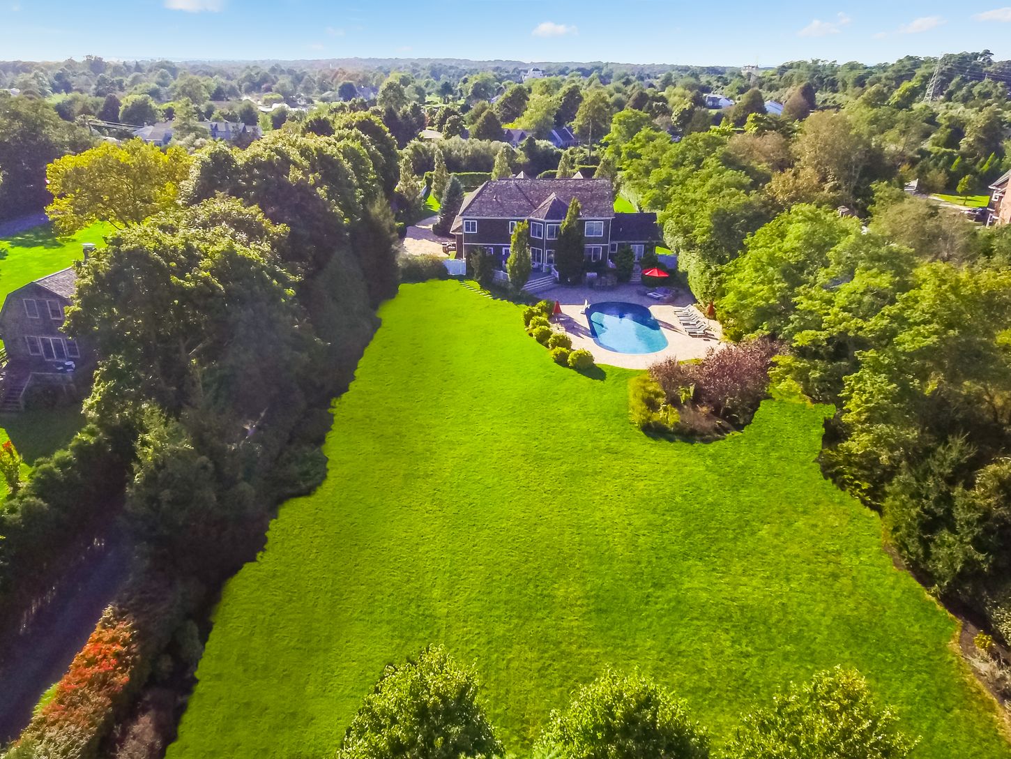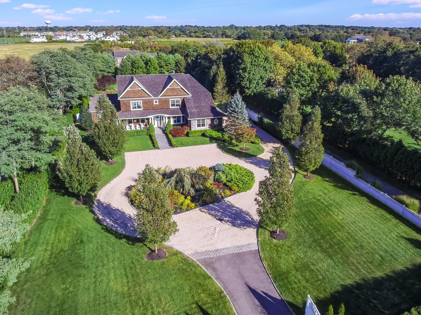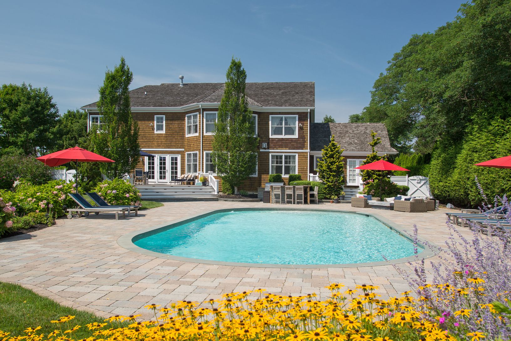 Southampton, south-of-the-highway, stunning and meticulous 7,706+/- square foot traditional home set on 1.5+/- landscaped acres with gardens and specimen plantings. Featuring southeastern sun exposure with a heated 55'x22' Gunite pool and a generous outdoor summer kitchen/bar defined by a DCS BBQ, prep sink, and outdoor fridge. Eight bedrooms and 8.5 baths (Four en-suite bedrooms on second floor plus additional bedroom & bath, junior maste