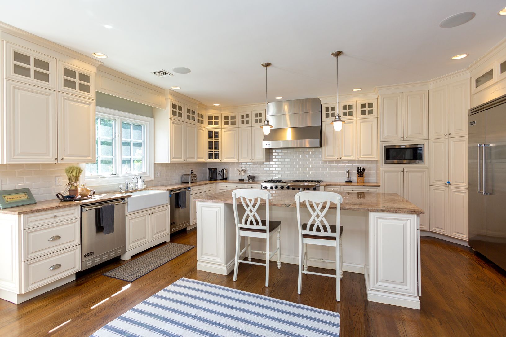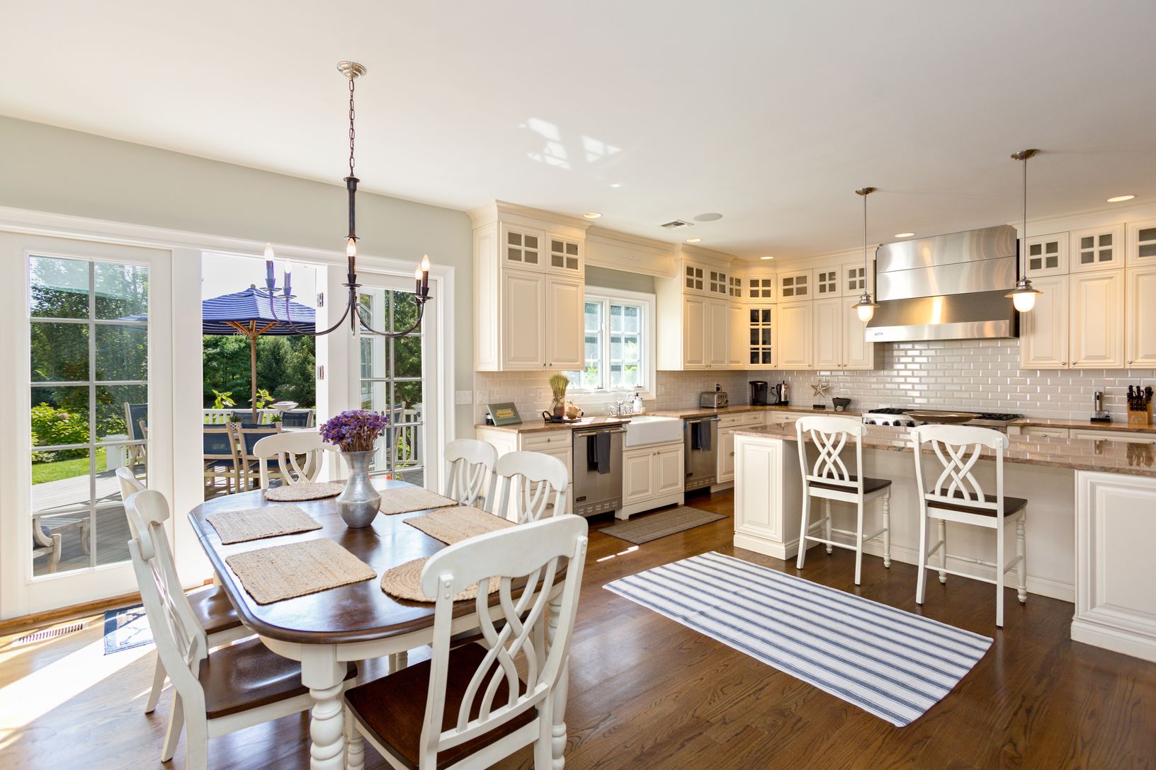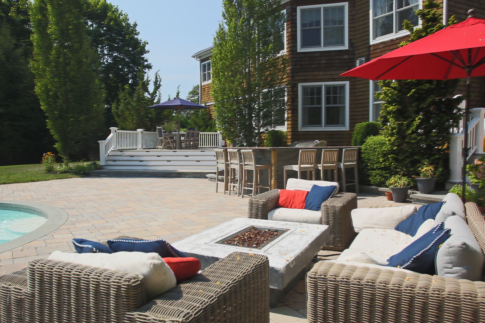 Southampton, south-of-the-highway, stunning and meticulous 7,706+/- square foot traditional home set on 1.5+/- landscaped acres with gardens and specimen plantings. Featuring southeastern sun exposure with a heated 55'x22' Gunite pool and a generous outdoor summer kitchen/bar defined by a DCS BBQ, prep sink, and outdoor fridge. Eight bedrooms and 8.5 baths (Four en-suite bedrooms on second floor plus additional bedroom & bath, junior maste