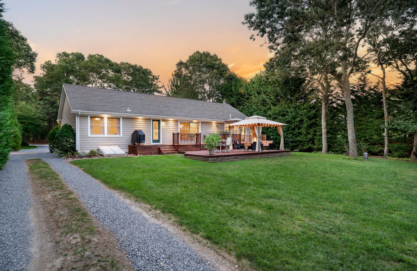 This Rare Find includes a detached oversized three-car garage/workshop rough plumbed for radiant heat and offers a full second floor ready to customize to suit your needs with potential for spacious accommodations ideal for separate guest quarters, a mother/daughter setup, or an income-producing Accessory Dwelling. Nestled on three-quarters of an acre, this beautifully landscaped property provides year-round privacy and scenic beauty. The Hamp