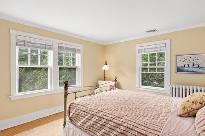Stunning Traditional on one of East Hampton Village's most famous tree-lined lanes. Originally built in 1920, expanded in 1992, and renovated in 2006, this gorgeous home boasts three stories, 3,500 +/- square feet, six bedrooms, four bath including en suite master with generous private deck. Open floor plan, expansive living room with wood-burning stove, formal dining room and breakfast area, multiple sweeping French doors leading to the blues