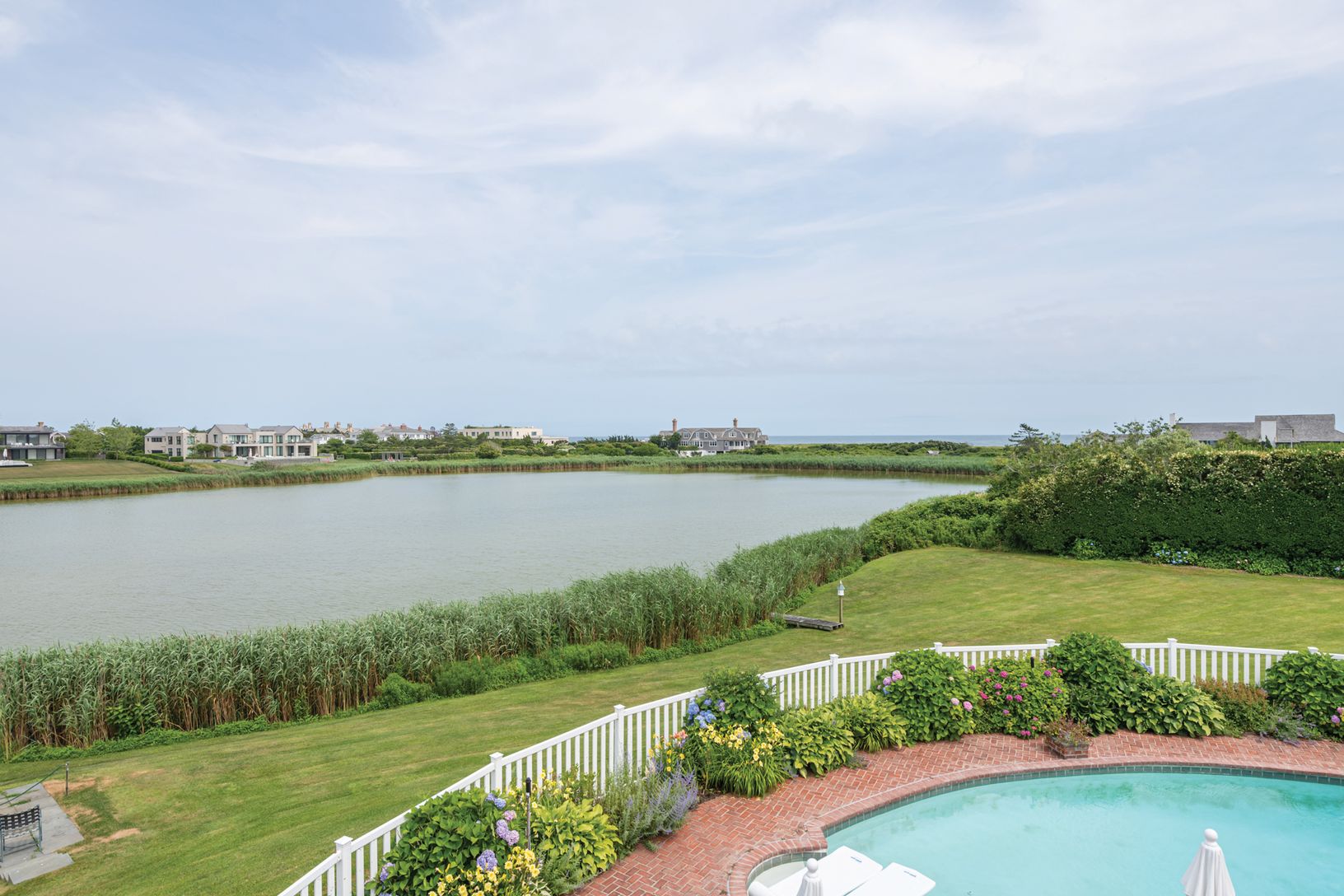 Sited on 2 +/- acres with private ocean beach access, this fabulous pond front traditional offers six bedrooms, seven full and one-half baths, a beautiful new chef's kitchen, a finished basement, central air conditioning, three fireplaces, a screened-in porch, a brick terrace and a heated gunite pool.