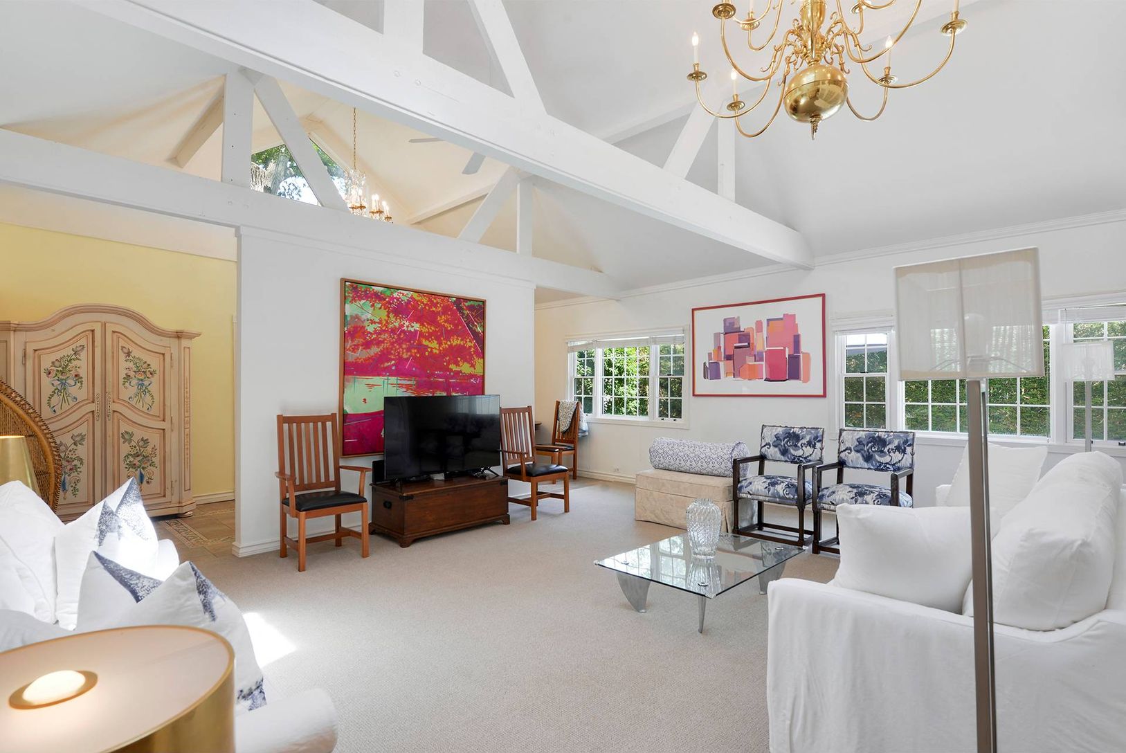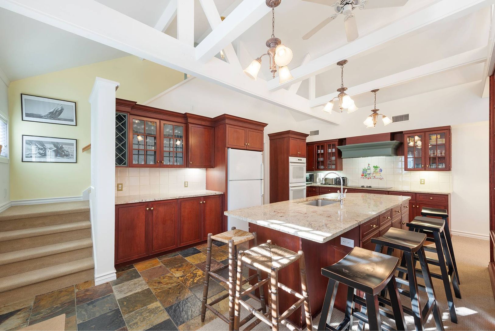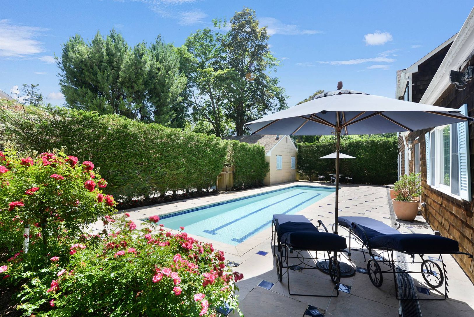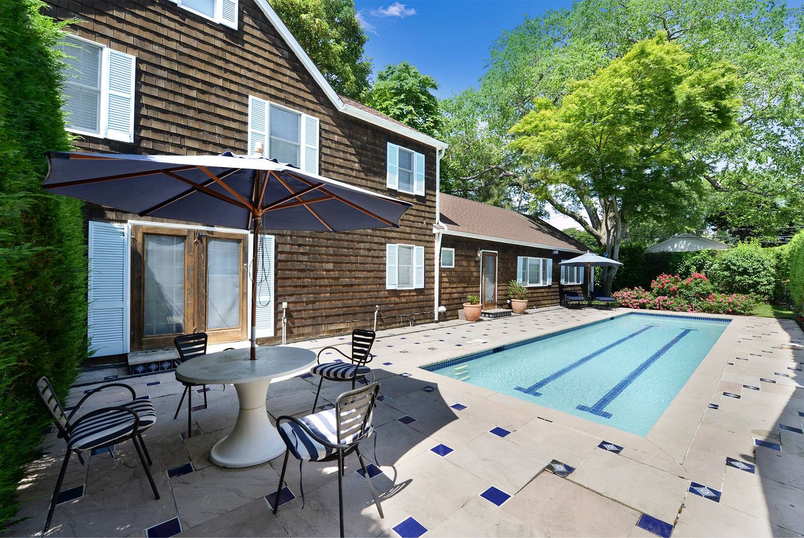 Beautiful barn-style residence, situated on a gated, landscaped property with beautiful trees, plantings, patio, and a heated Gunite pool. The spacious house features a living room with a 20 ft cathedral ceiling, dining, gourmet kitchen, four bedrooms, three baths, and central AC and a separate laundry room. Short distance to both Little Plains Beach and Main street.