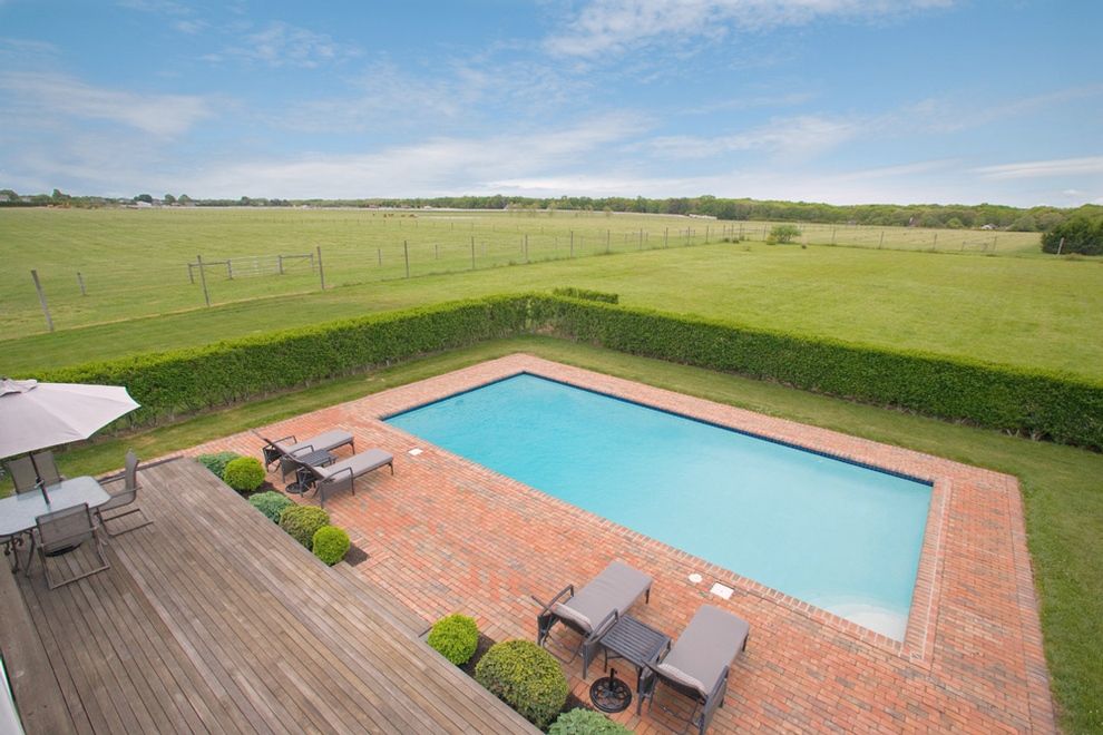 Traditional home at 896 Deerfield Road in Water Mill overlooks agricultural reserve with awesome sunrise/sunset views. Living and dining rooms, eat-in kitchen, 5 bedrooms, 3 baths, heated gunite pool, 3,500 sq. ft. home. Lower Deerfield Road, convenient to all. The wide-open farm spaces you have been longing for, THINK BIG BLUE SKY at 896 Deerfield Road to recharge your batteries and breathe in the fresh air and relax