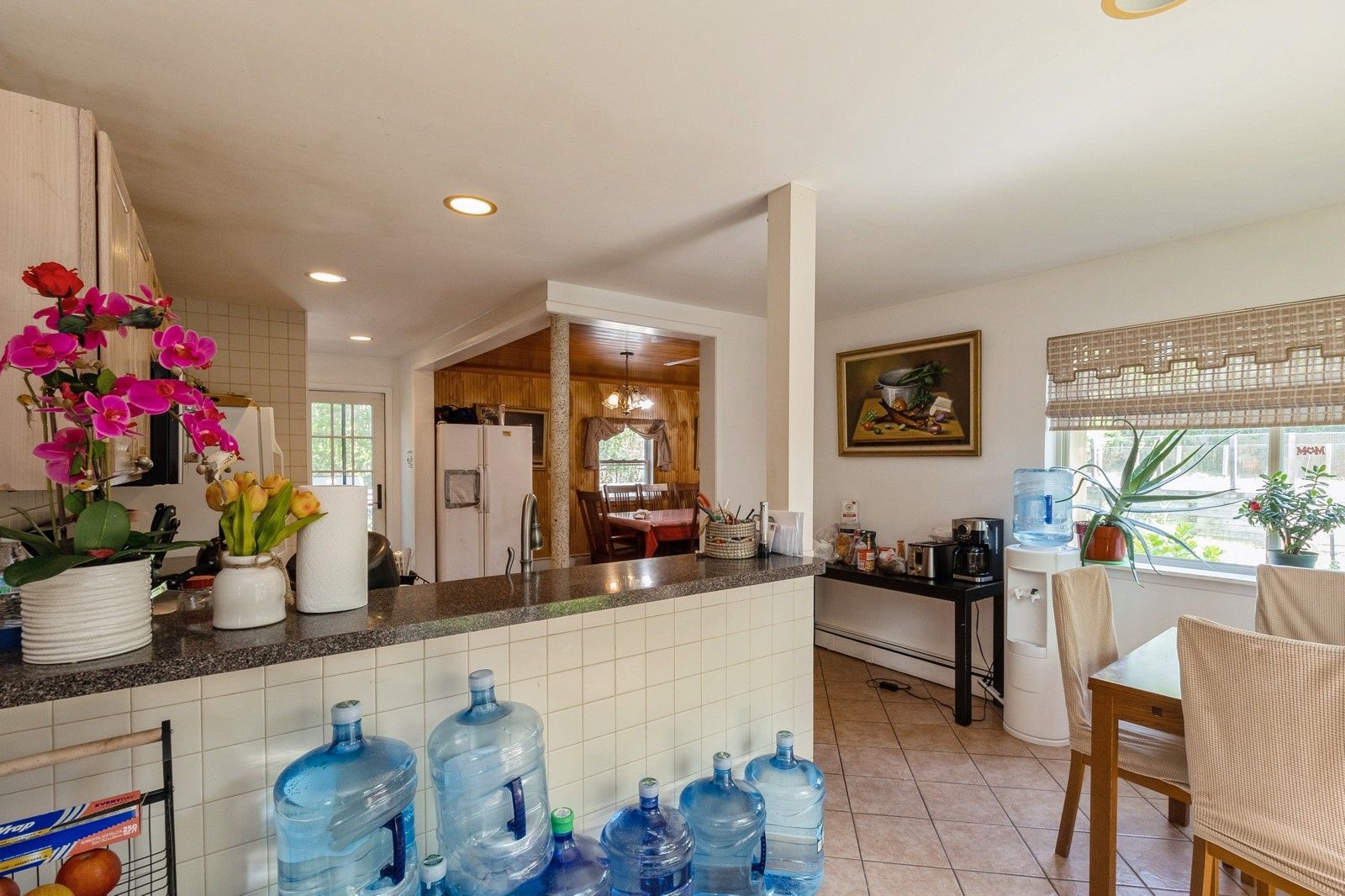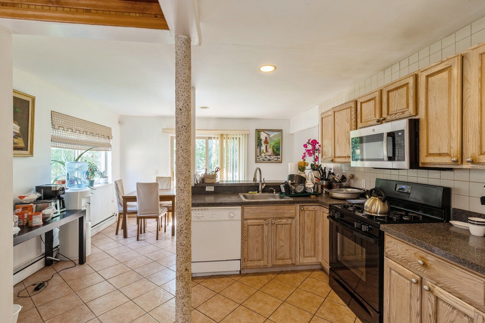 Floors: Hardwood, Tile
