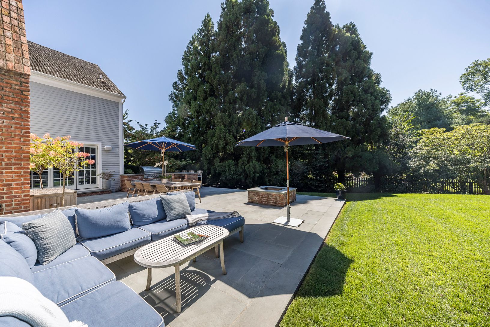 Enjoy summer in style. This recently renovated village farmhouse residence is located only minutes to downtown Bridgehampton village and ocean beaches. The home stands at 3,100 sq. ft. +/- with 5 bedrooms, and 5 just renovated bathrooms, four fireplaces, and a finished lower level with media room. The primary bedroom is on the second floor with a large balcony overlooking the grounds. The additional bedrooms also are en-suite. Excellent for en