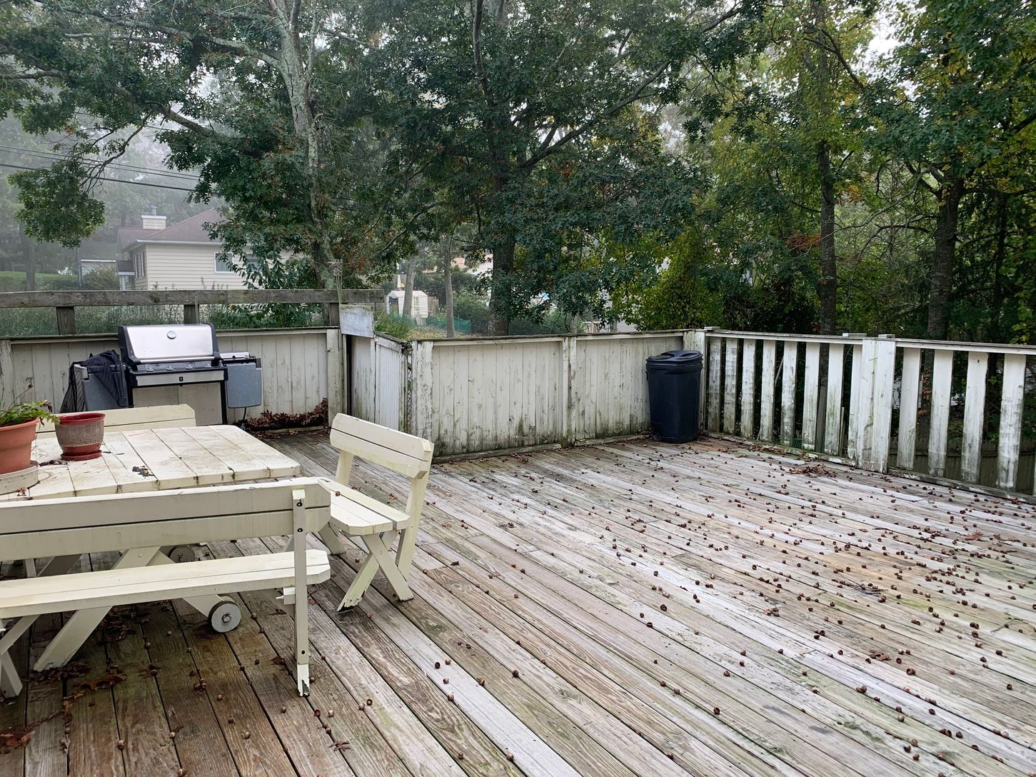 This home has a cathedral ceiling in the living room, hardwood floors, slider from living room and first floor bedroom to large deck, eat-in-kitchen, 2 additional bedrooms and 2 full bathrooms. Full basement. New roof, skylights and hot water heater. Needs some TLC.