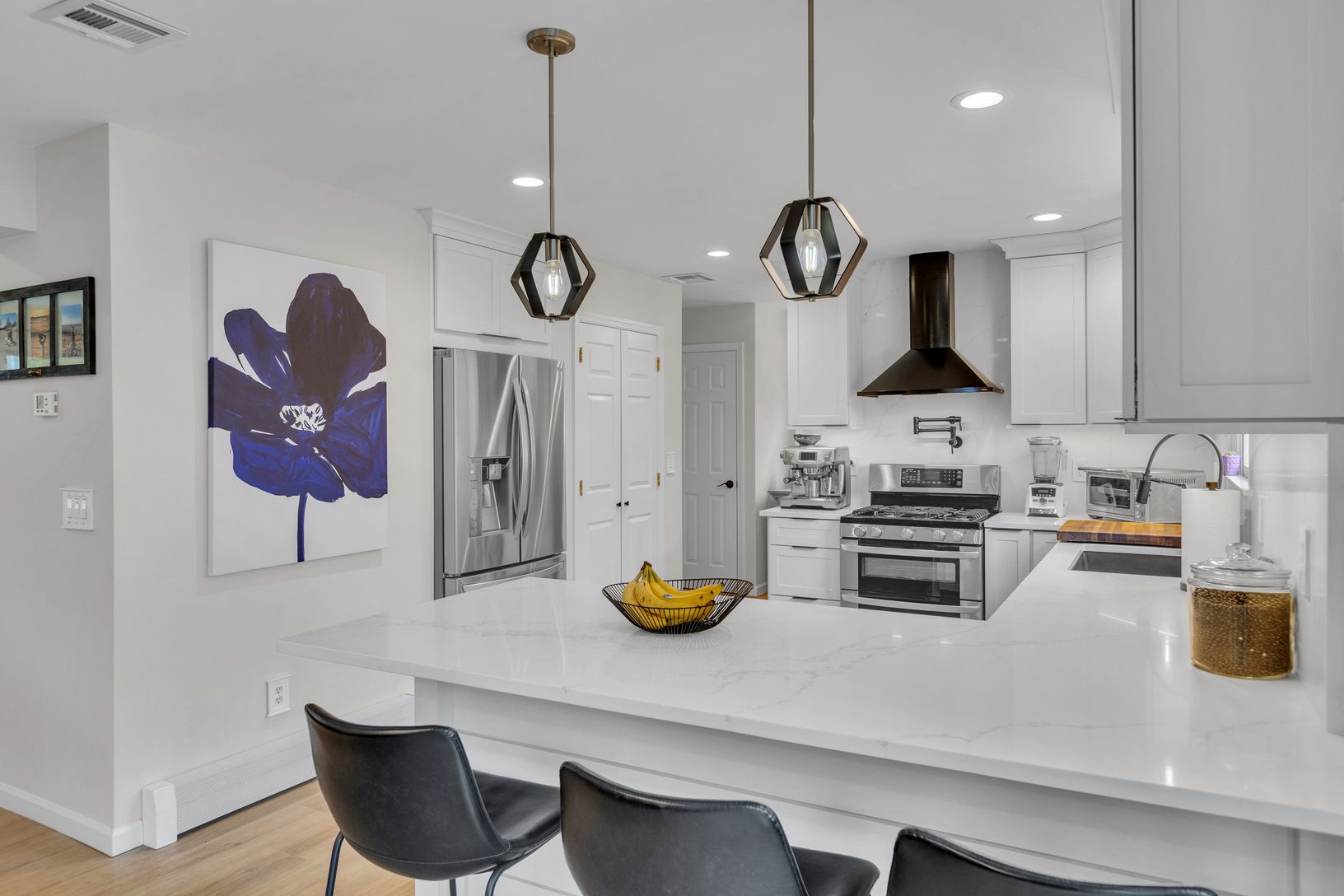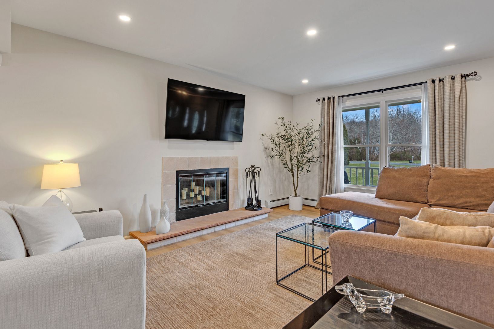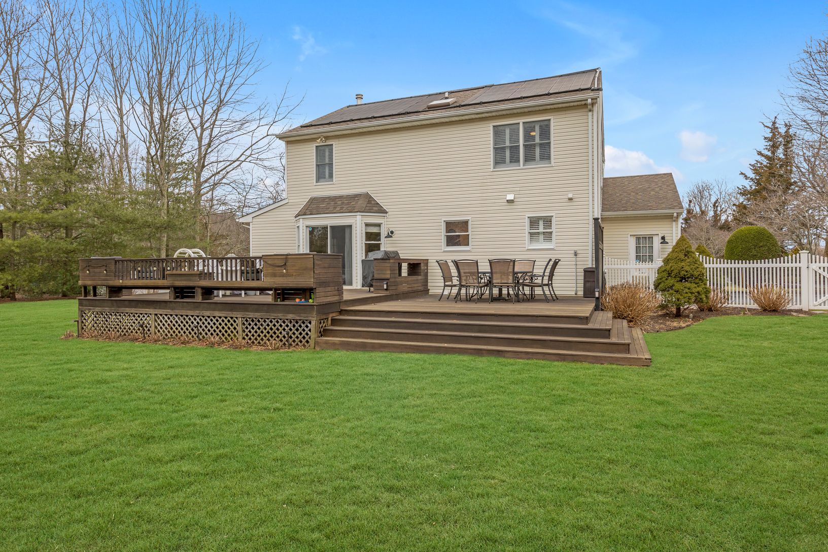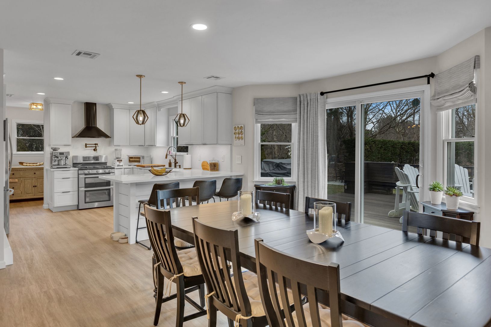 Welcome to 9 Bay Run! This chic home rivals new construction with its comfort and refined North Fork style. The heart of the home is a culinary haven: a gorgeous new kitchen with quartz countertops, stainless appliances, gas range with pot filler, and ample custom cabinetry. Entertain effortlessly in this stylish open concept entertainment area with woodburning fireplace for those cool fall evenings, and sliding doors that open onto a large de