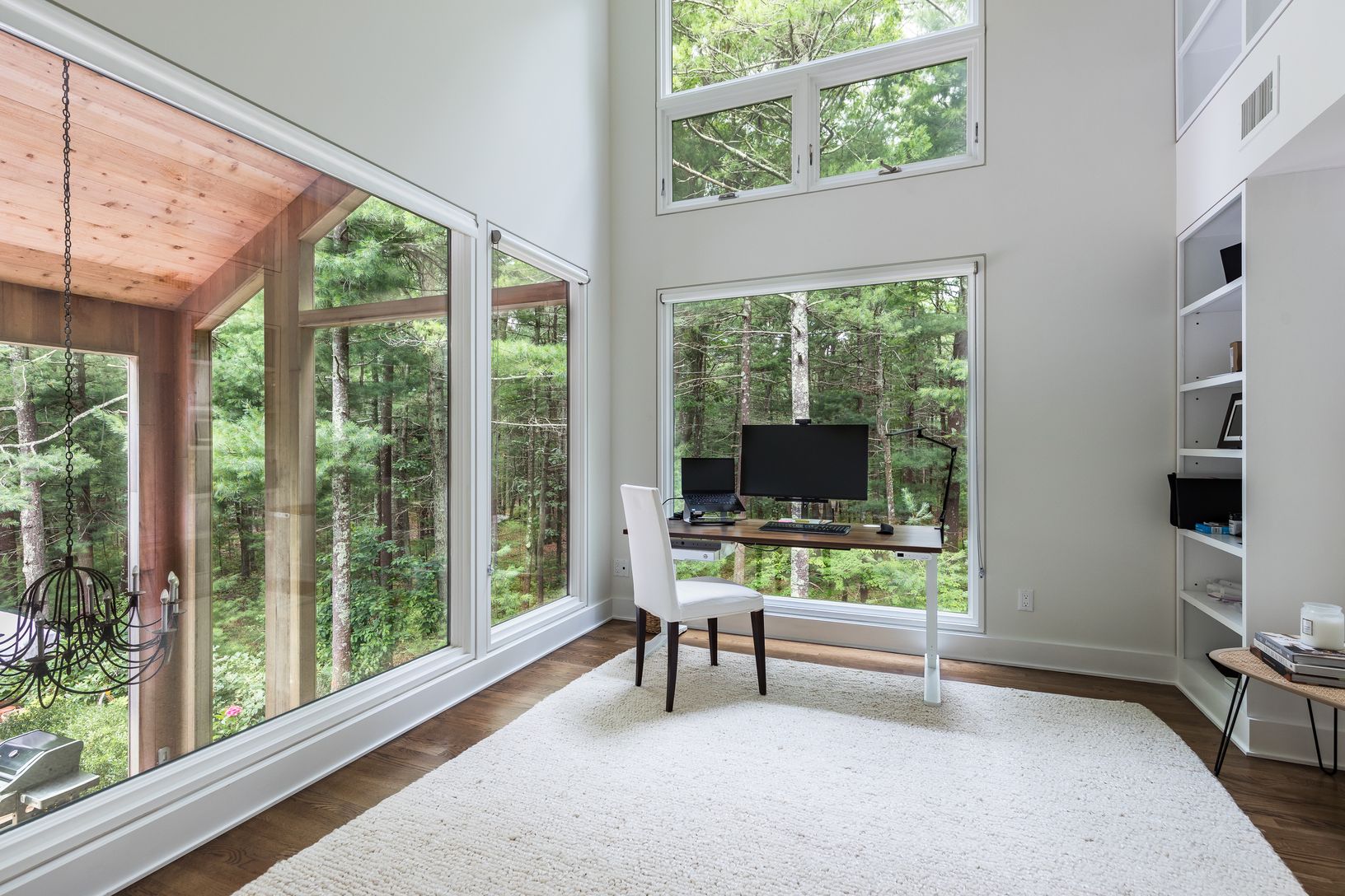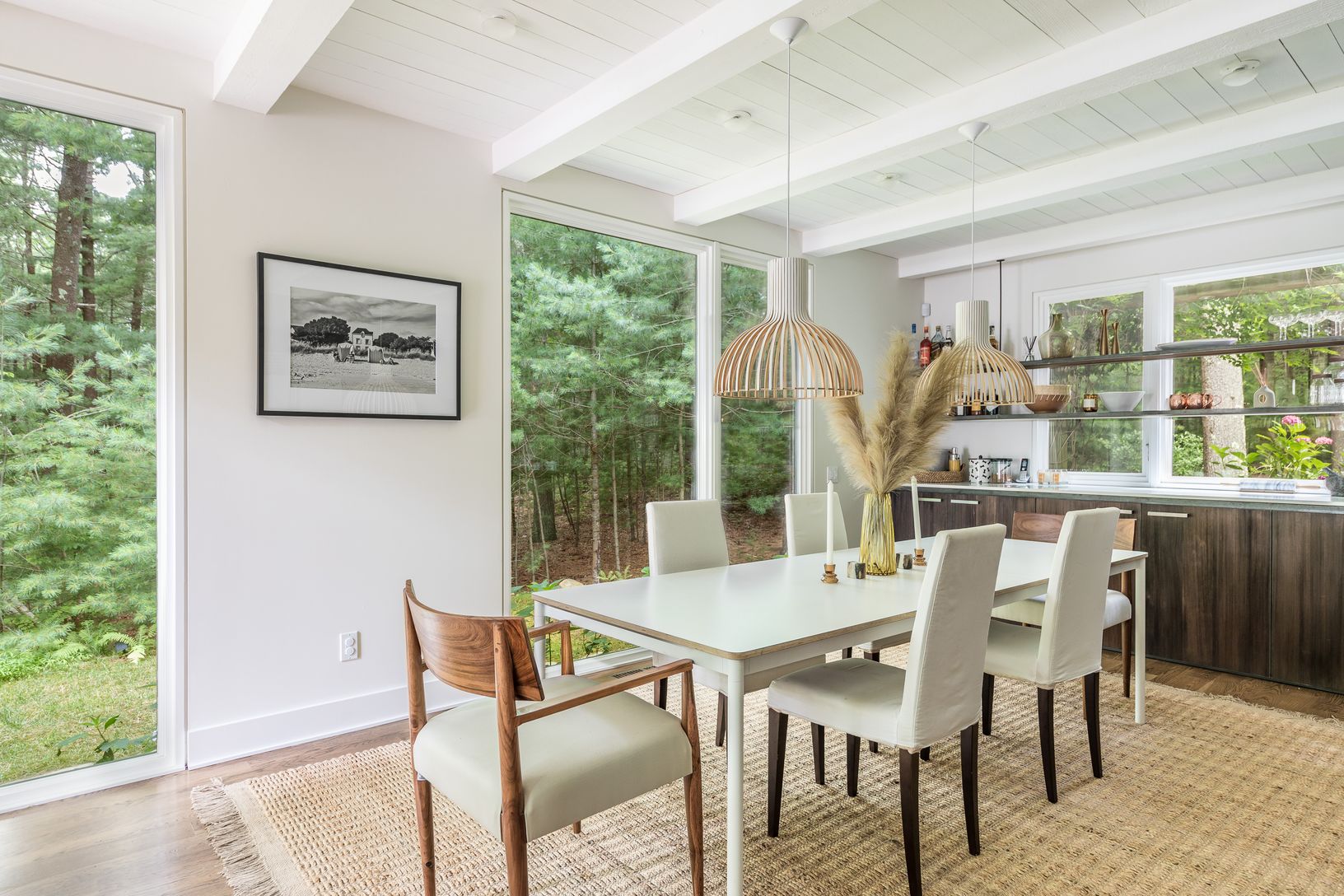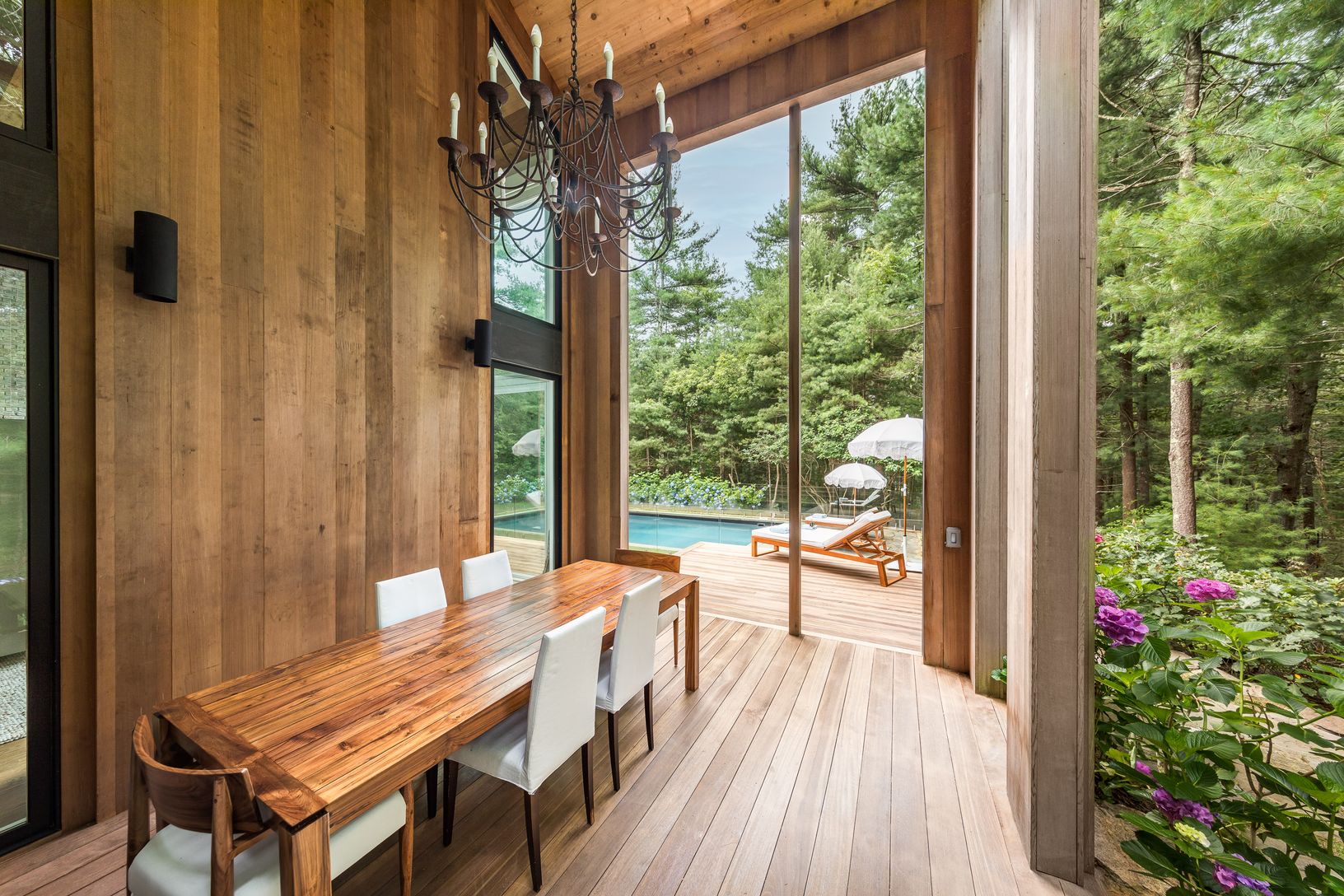 Make yourself at home on a private 2-acre oasis in the Northwest Woods! Surrounded by white pines and a 63-acre nature preserve, this stunning modern retreat is the perfect Hamptons getaway. As you drive down the private road and enter through the gate, you're immediately drawn to the immaculate architectural details of this 4-bedroom gem. Oversized windows flood the home with sunlight from every angle, creating a warm and inviting atmosphere