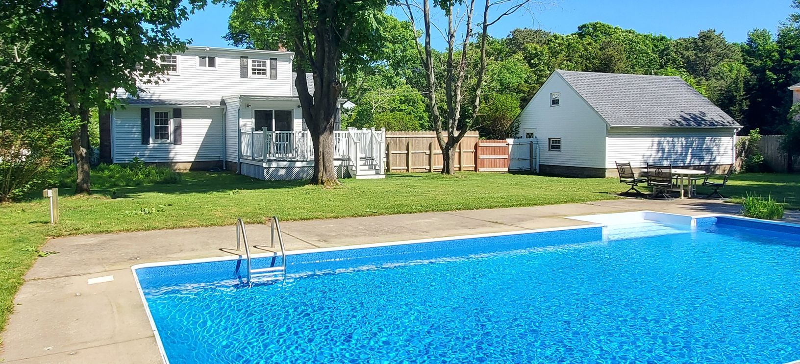 SOLD & CLOSED $960,000 --- Westhampton two-story Expanded Cape Cod style home originally built in 1945 and renovated in 2022. 5 Bedrooms and 2 Bathrooms with full utility basement. Situated on a .7 Acre Parcel with In-Ground 18'x36" Vinyl Swimming Pool and Detached Two-Car Garage. Excellent Rental History the past 15 Years. Features All New Include: Roof - Chimney - Floors - Doors - Lights - Kitchen - Bathrooms - Rear Deck. Rear of Proper
