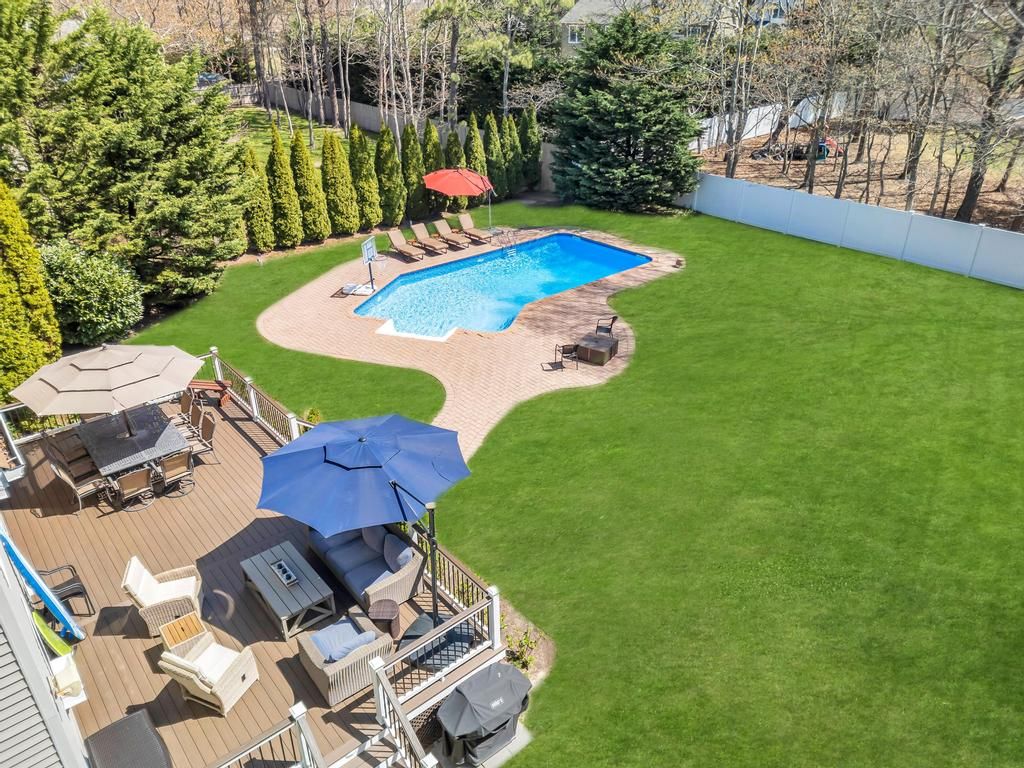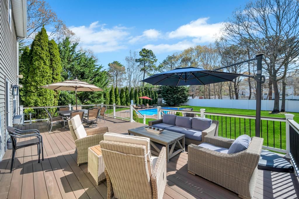 Summer Fun on 9 Deborah Dr. Westhampton Beach Welcome to 9 Deborah Drive A beautifully maintained 4-bedroom, 3.5-bathroom home nestled on a quiet block. Step onto the inviting front porch and into a residence that blends comfort with charm. The spacious backyard is perfect for outdoor games, lounging, or entertaining on the expansive deck outfitted with a dining area and outdoor living room area. A large pool adds to the summer fun, making thi
