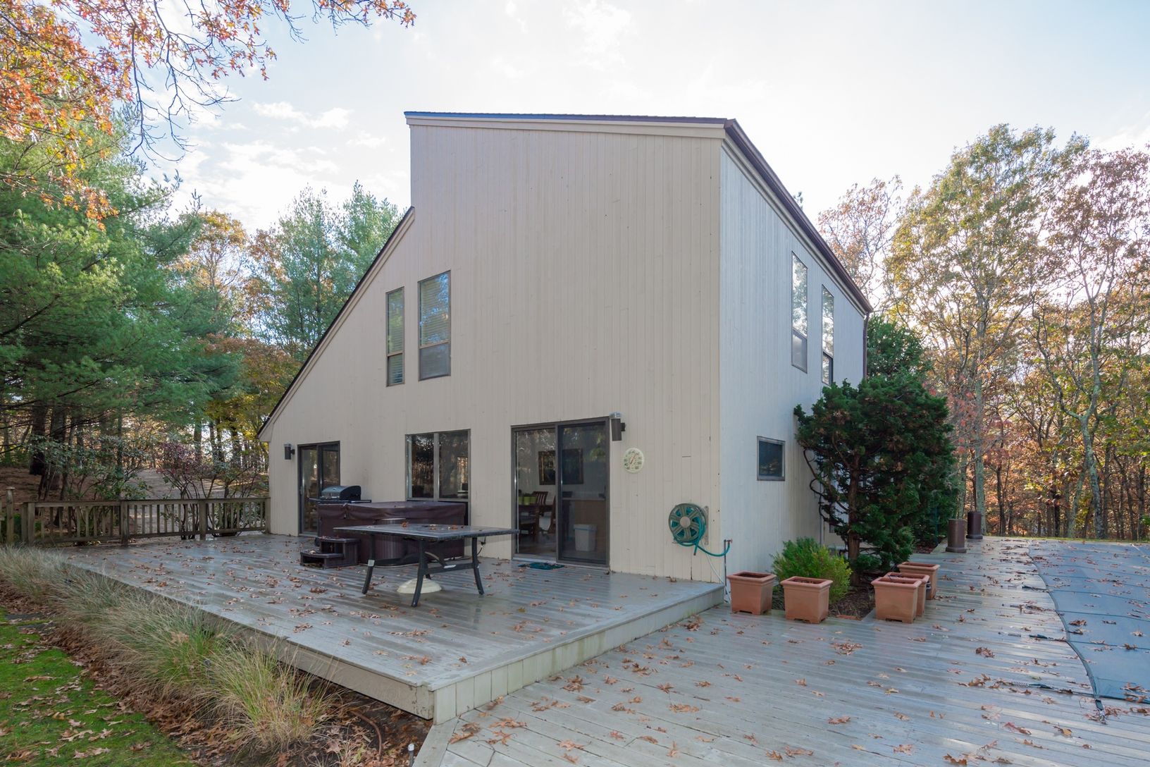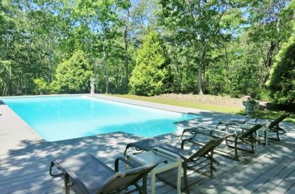 Rental Registration #: 16-1388 Located down a beautiful wooded drive on a private one acre lot is this sun-filled four bedroom, two bathroom contemporary. Offering open floor plan with comfortably furnished living room, double height ceilings, fully equipped chef's kitchen, and breakfast dining. Sliding doors open to expansive backyard deck with outdoor dining, BBQ, and heated pool perfect for outdoor entertaining. Enjoy your summer at this pr