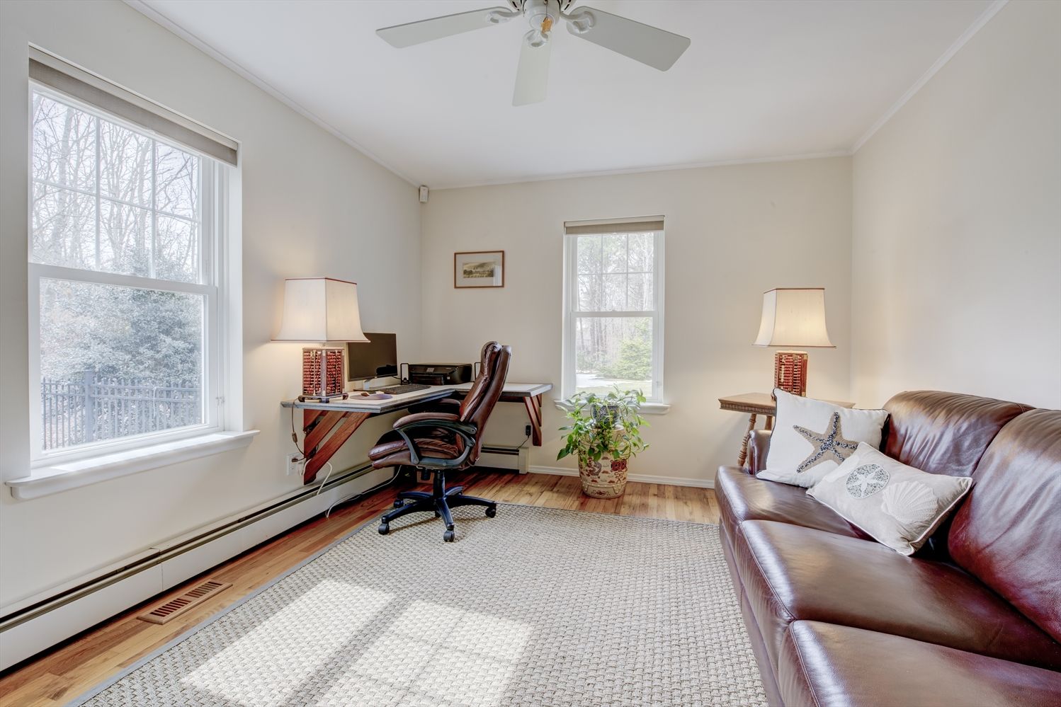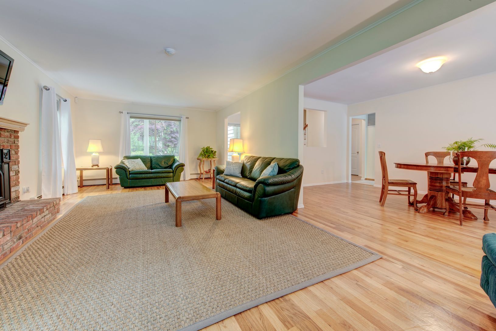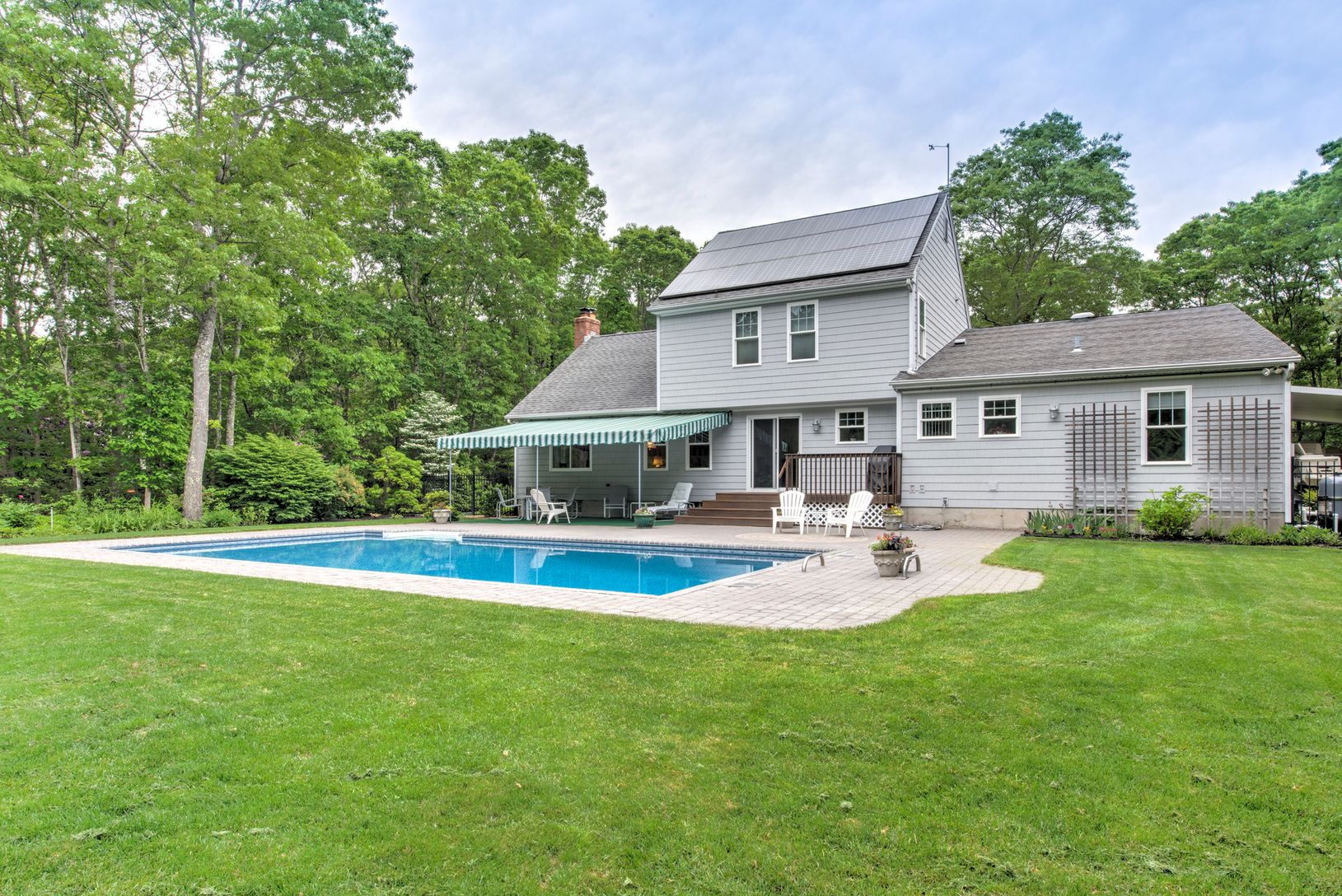 Stately summer or year round home on a picturesque lane in Quogue village. Originally built in 1981, but renovated and expanded in 2010, this 2800 square foot meticulously maintained home shows pride of ownership and attention to detail throughout. The first floor features an extra large living room with wood burning fireplace that opens to the dining area, an eat-in kitchen with updated appliances, a den that can become a fifth bedroom, a mas