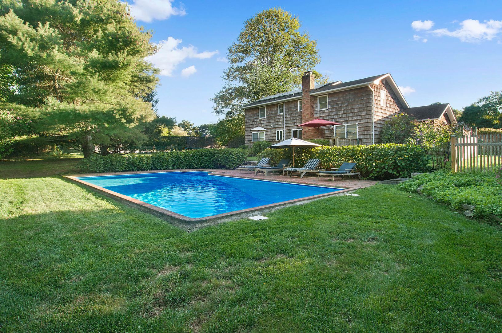 This Southampton Traditional treasure located on one acre on a quiet cul-de-sac is just one mile from Southampton Village. This tastefully renovated home features 4 bedrooms, 2.5 bathrooms, large living room, dining room, den with fireplace that opens to the renovated kitchen which leads to the lovely grounds with plenty of room for entertaining and a 2-car garage. Enjoy lounging by the heated pool surrounded by a brick patio. This peaceful re