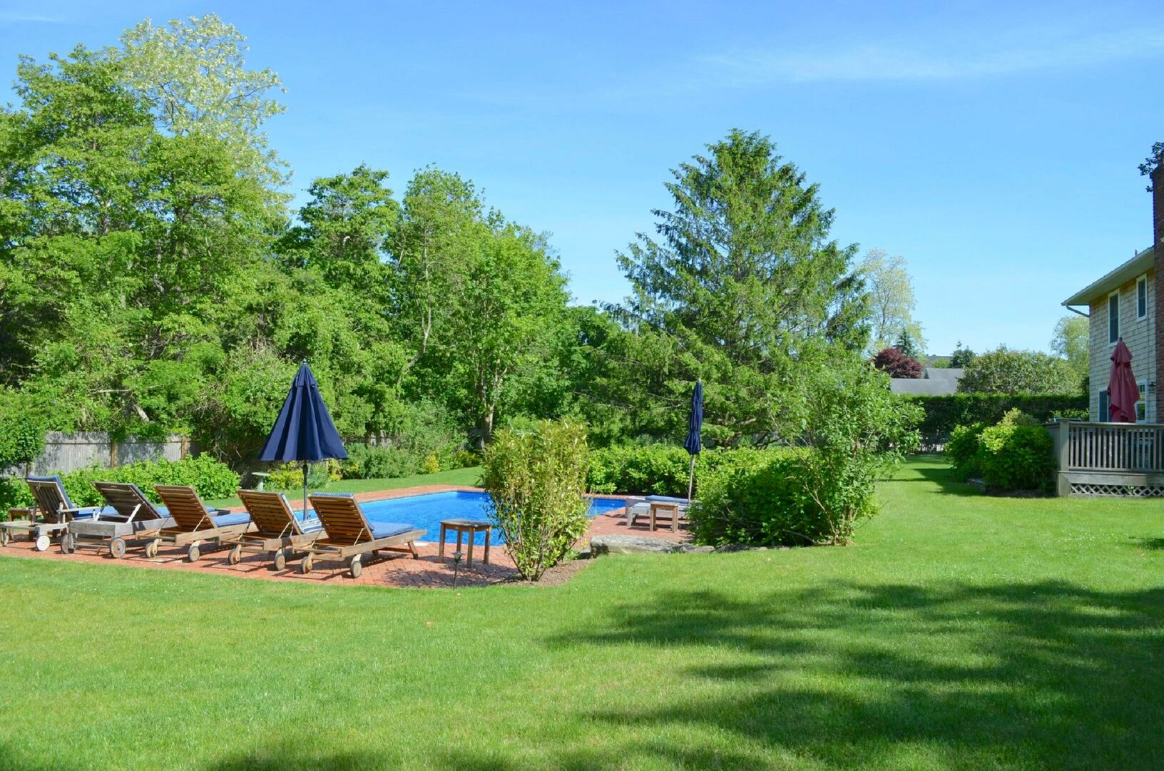Southampton Summer Rental, close to Southampton Village. Quiet Cul-de-sac. Renovated Traditional with four bedrooms, three bathrooms, large living room, dining room, and new kitchen which opens to lovely grounds with plenty of room entertaining. Enjoy lounging by the heated pool surrounded by a brick patio and lined with beautiful hydrangeas. This peaceful respite is just moments away from beaches, restaurants and village shopping.