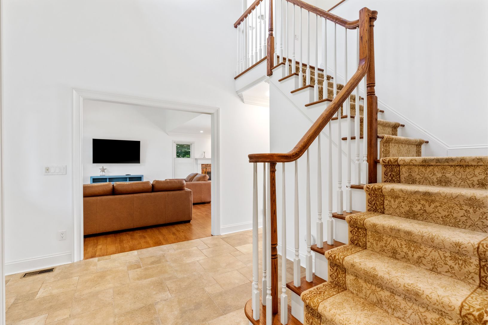The first floor boasts a large living room with wood burning fireplace, formal dining room, eat in kitchen with stainless appliances, laundry, two car garage and a full bath.