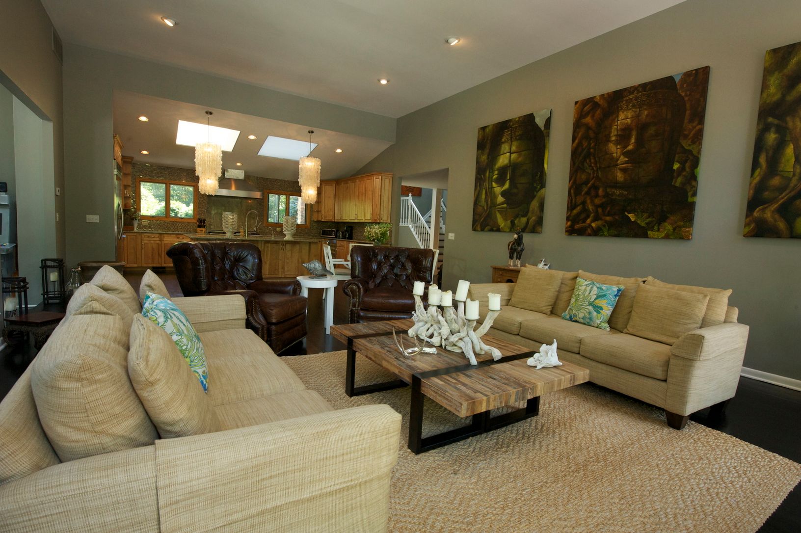 For the consummate hosts, this completely renovated contemporary home features a pool, spa and screening room with seating for twelve. The expansive living room has soaring ceilings. Chef's kitchen with top of the line appliances and formal dining room for entertaining inside. The decor has dramatic art and handsome furnishings. There is a first floor master suite. There is also an additional bedroom on the first floor and three bedrooms upst