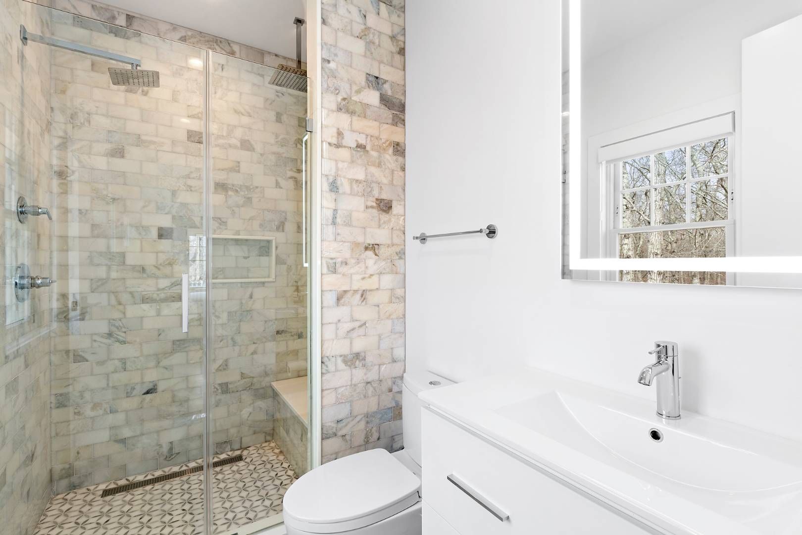 This 1.43 acre property in Sagponack is the site of a new construction home with a 20' x 40' heated saltwater gunite pool. Offering 5,742+/- sq. ft. of living space with 5 bedrooms and 5.5 baths, this masterfully constructed home is beautifully finished and appointed. Enter from the portico to a double height foyer leading to an oversized great room with wood-burning fireplace, which flows to the eat-in kitchen with island seating and high end