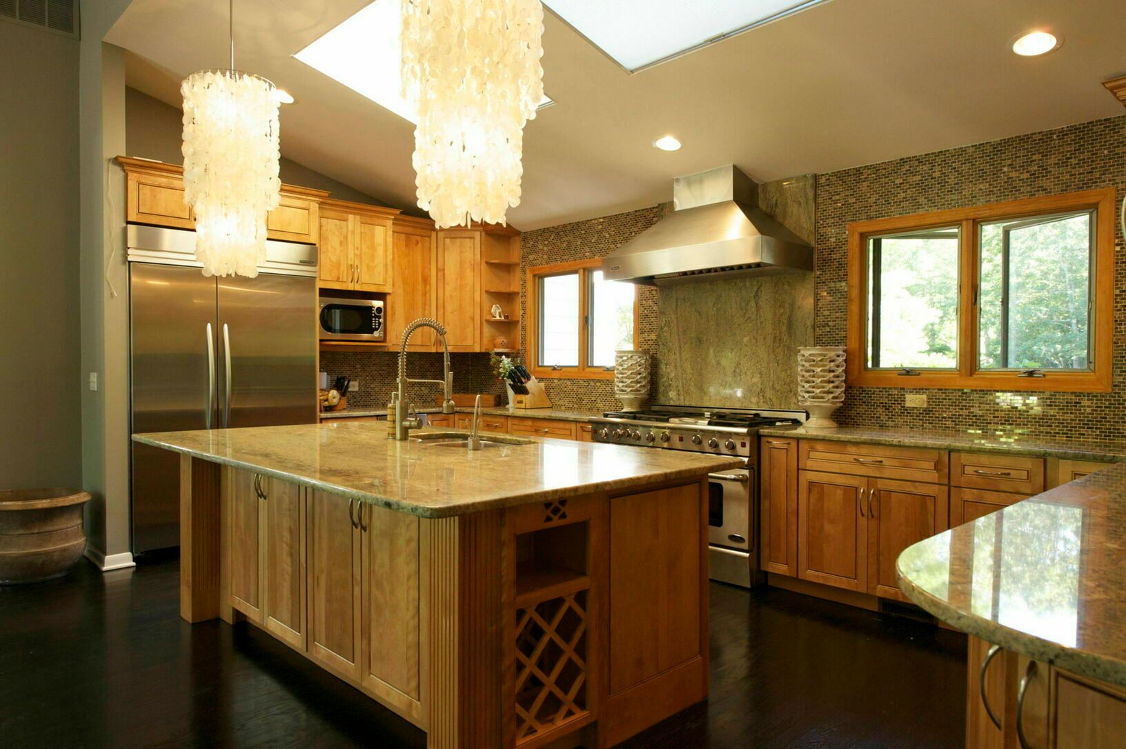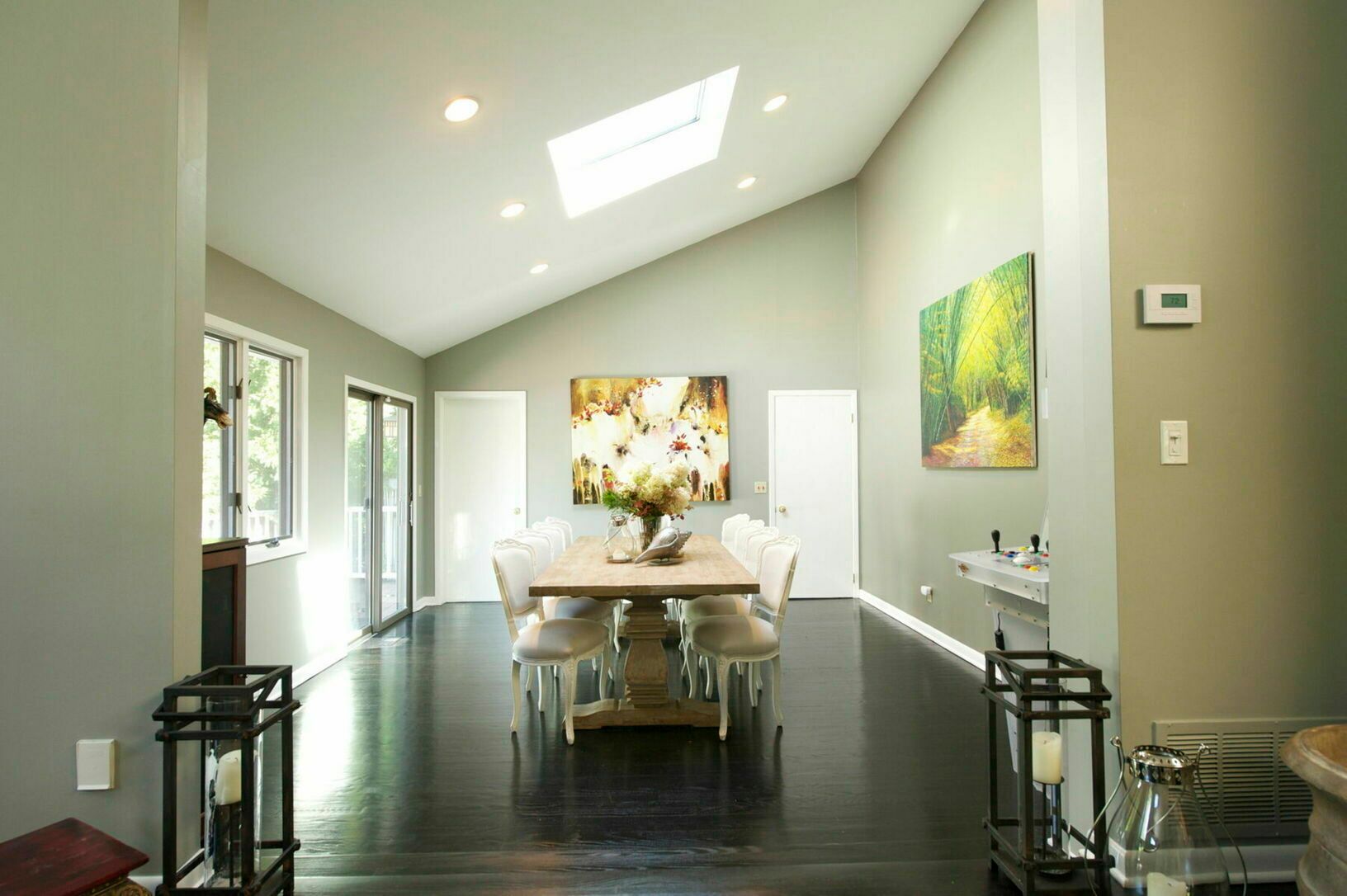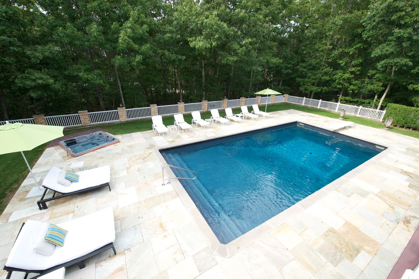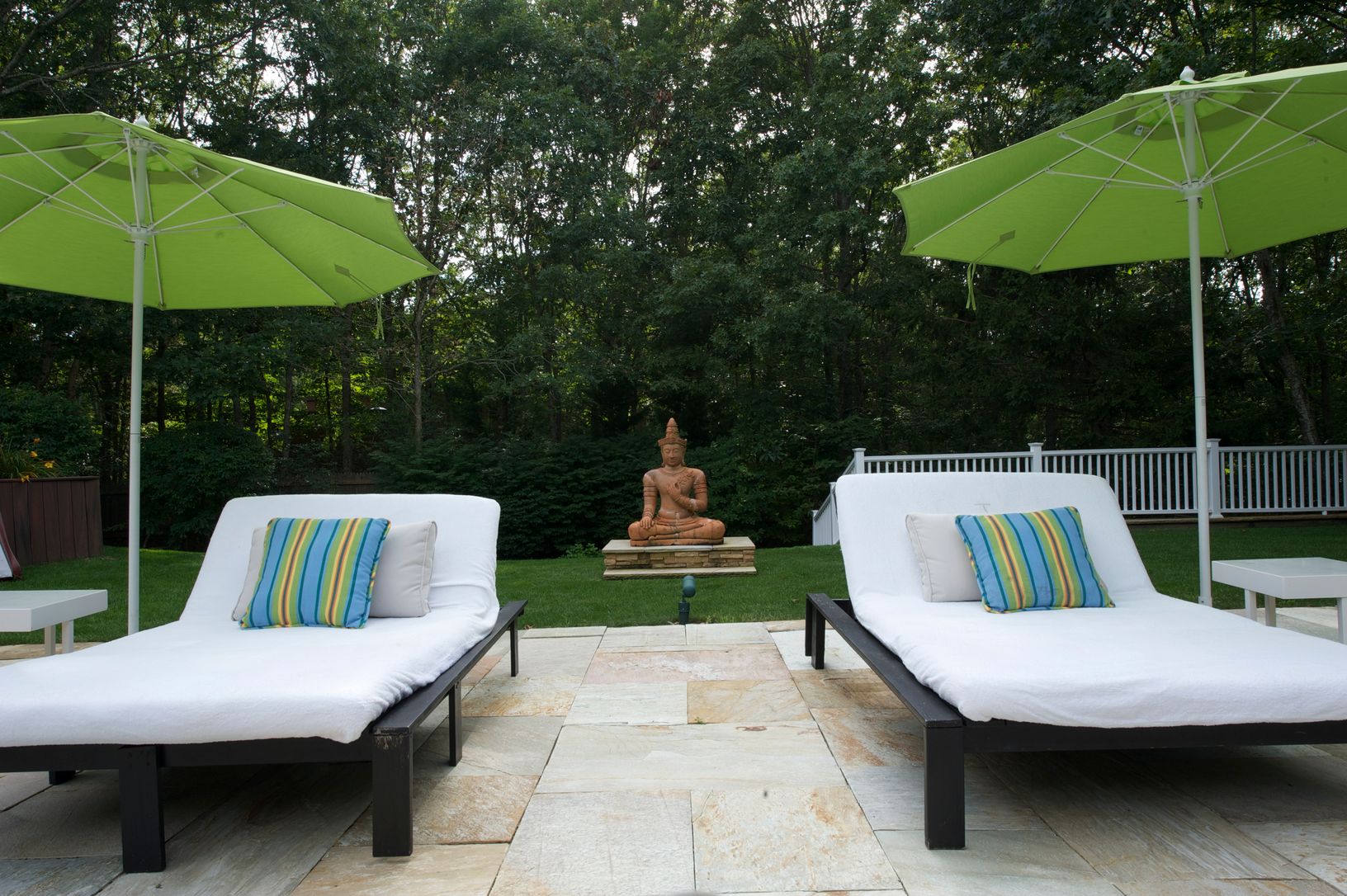Contemporary eight-bedroom, five-bath house has huge double-height living room with formal dining room, chef's kitchen with granite counters, top-of-the-line stainless appliances including wine cooler. The decor has dramatic Eastern artifacts and handsome furnishings. There is a first floor master suite with marble bathroom. There is also an additional bedroom downstairs and three bedrooms upstairs with marble baths. The ground level is off t