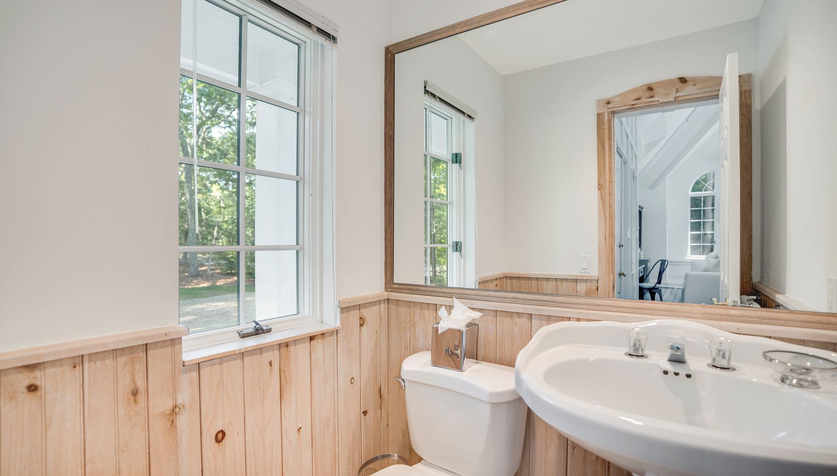 Close to Wainscott and East Hampton village and ocean beaches, this traditional Hamptons property is quite literally a slice of heaven. Luxurious privacy is apparent as you head down the long driveway beautifully lined with mature trees. The interiors are fresh and clean with touches of chic design married with classic architecture. The first floor has beautiful wood flooring running throughout a very seamless layout. On the First Floor are tw