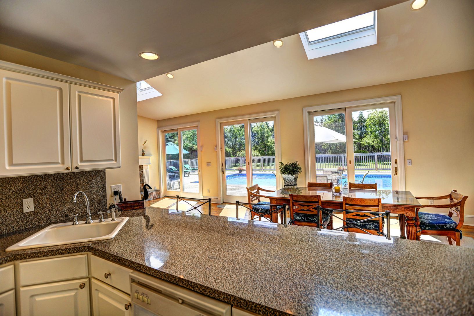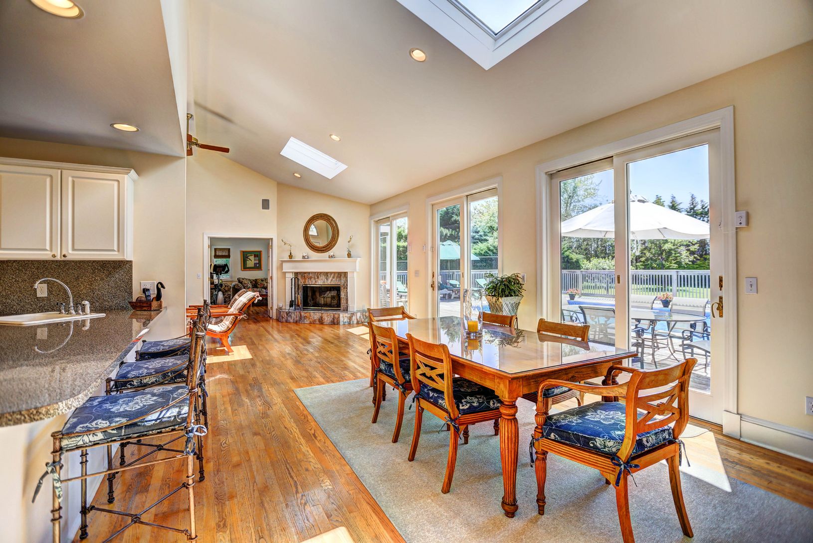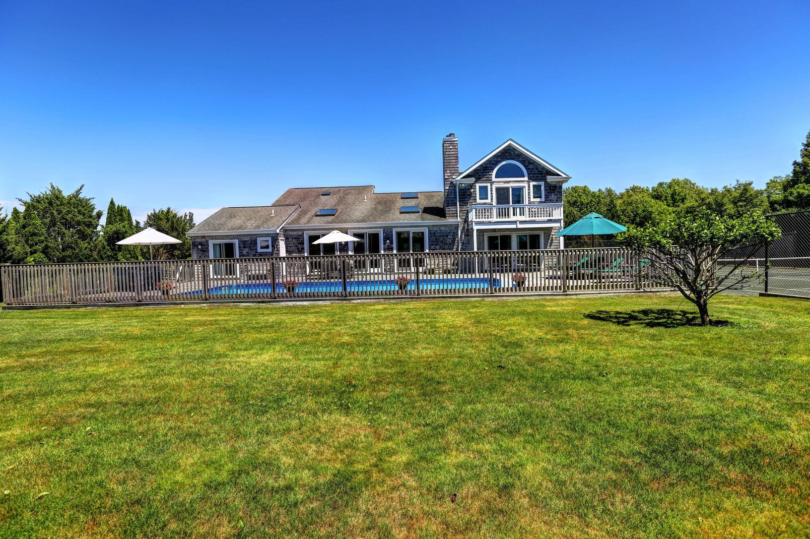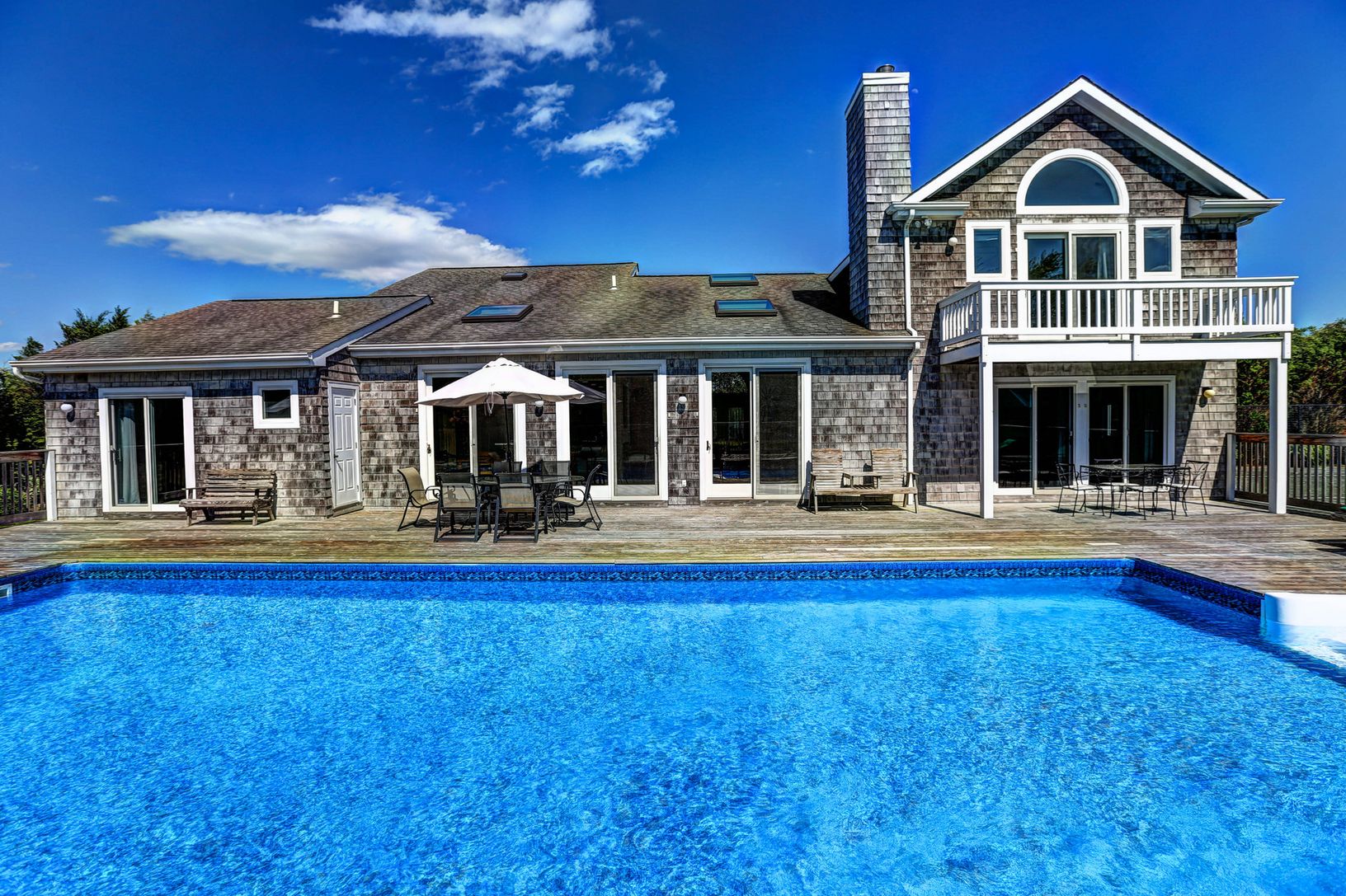Two-story, 4 bedroom plus bonus room, 3.5 bath, Contemporary set on beautifully manicured grounds. Ample windows bring in the Hampton's light, showcasing an open living room with fireplace, spacious dining area with views of the pool area and grounds and a large country kitchen. Upstairs, a spacious second floor master suite with balcony, 3 additional guest bedrooms, and a loft or bonus room for guests. Perfect for entertaining, an inviting he