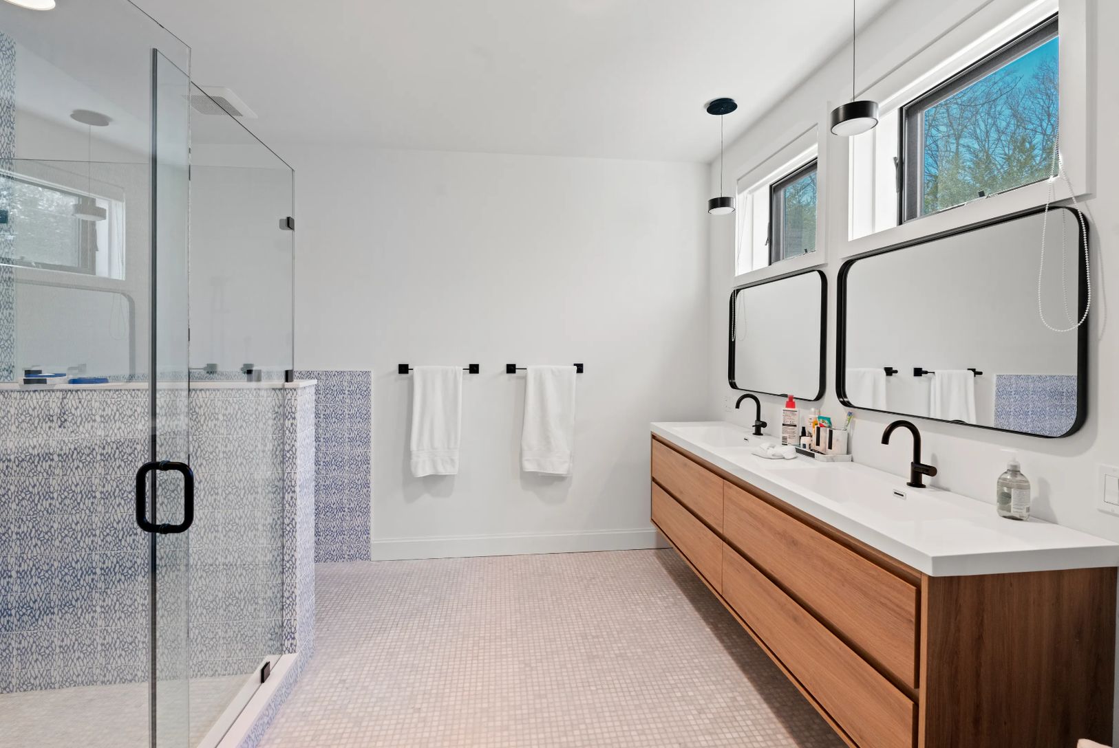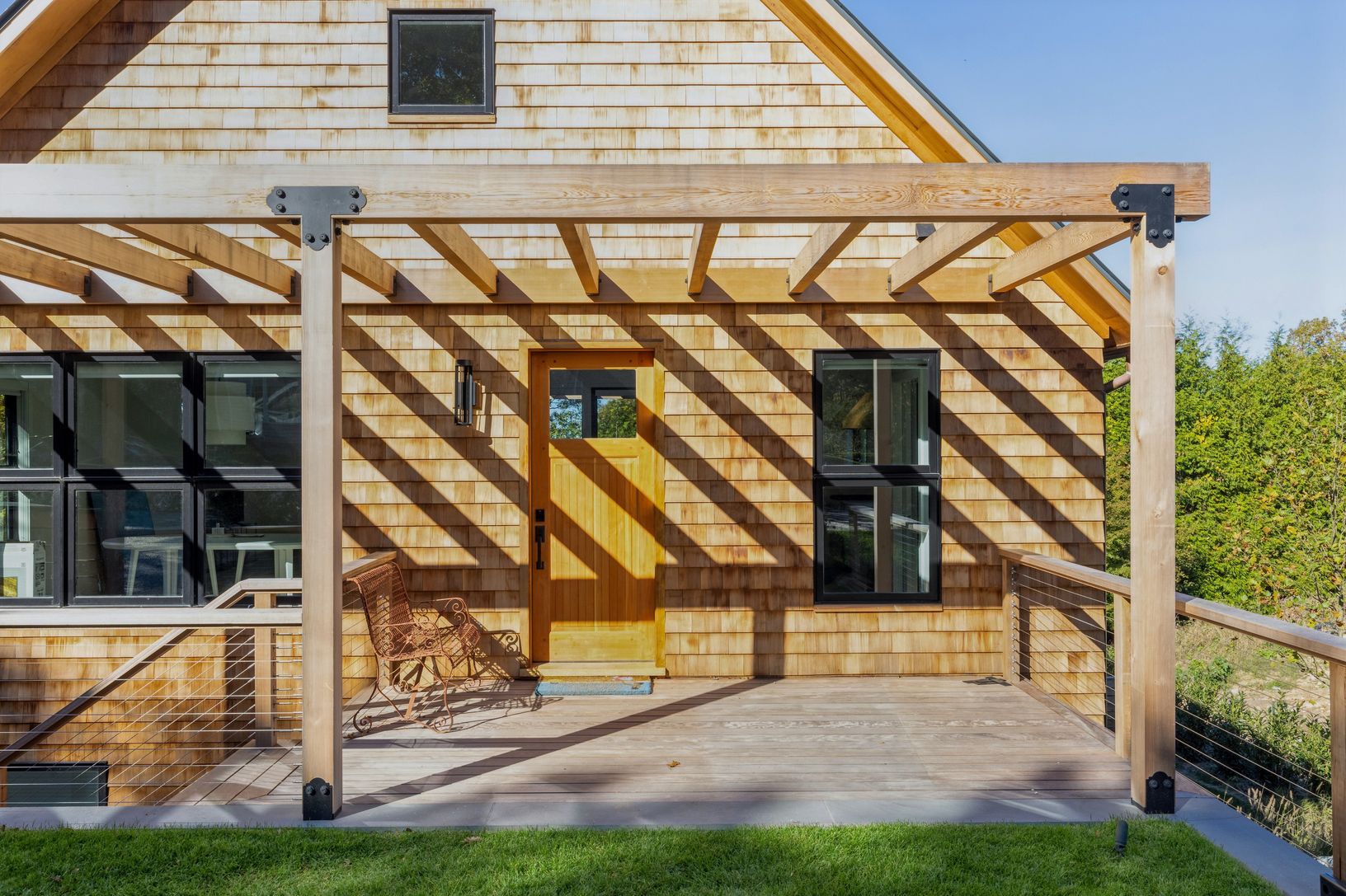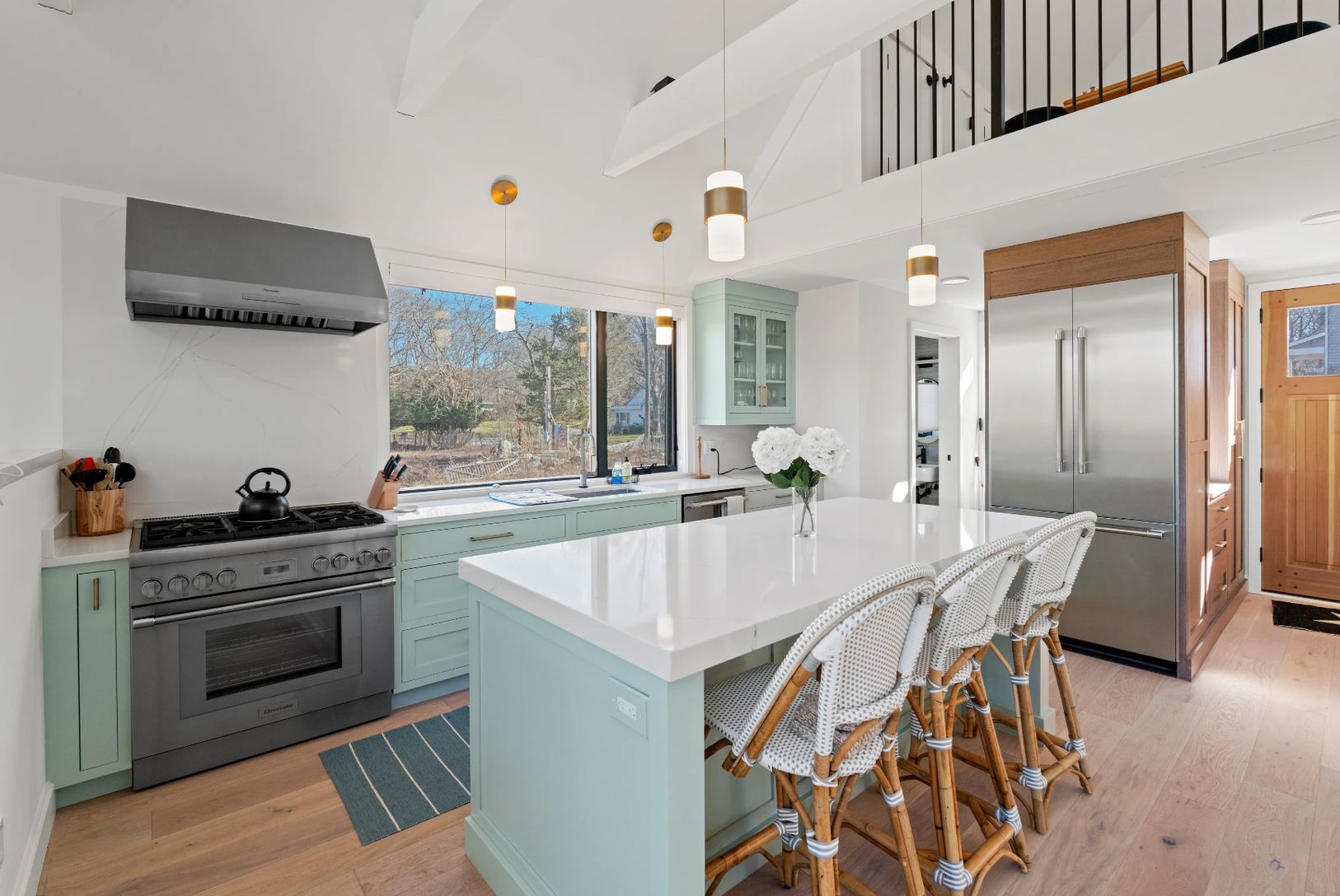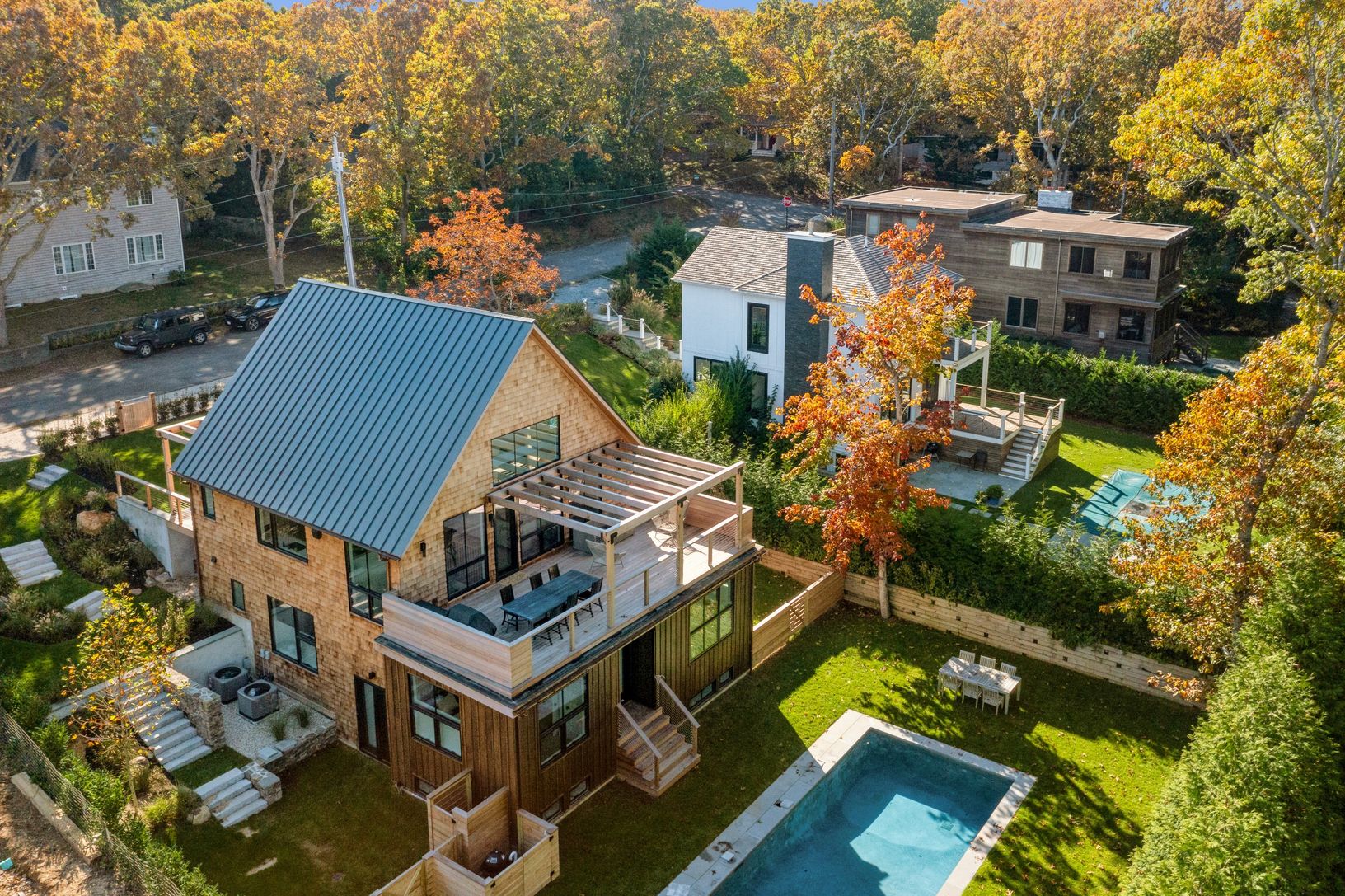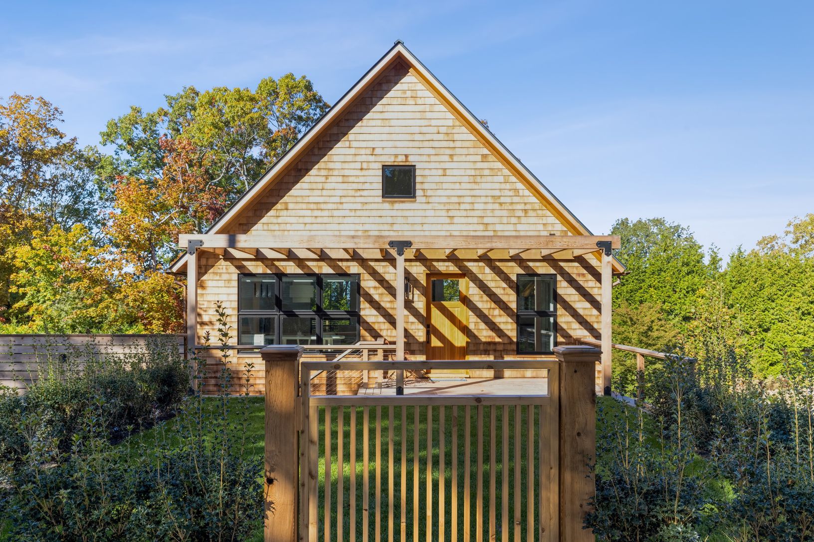 Newly Built - Private beach access and mooring rights. This cedar shingled modern cottage has 4 bedroom 3.5 baths, a mezzanine/loft space accessible from the 1st floor - all the bells and whistles one could ask for!. Thermador appliances, radiant flooring on the lower level, HVAC 3 zones, Quartz custom designed counter tops and backsplash- There is a Gym and Media room and a