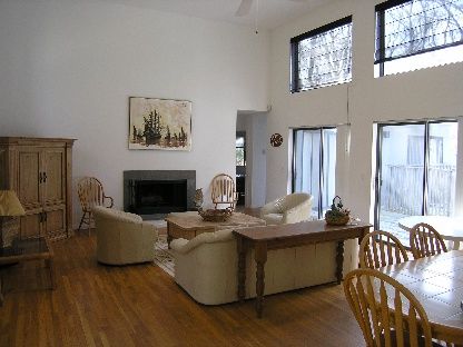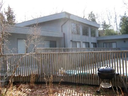 Located in a harbor community and surrounded by cedar and white pine trees. Great potential for this 4-bedroom, 2-bath contemporary! Open design living area and kitchen. High ceilings and large windows create ample light. Fireplace, wood floors, large ensuite master bedroom. Heated pool surrounded by decking. Private access to harbor.