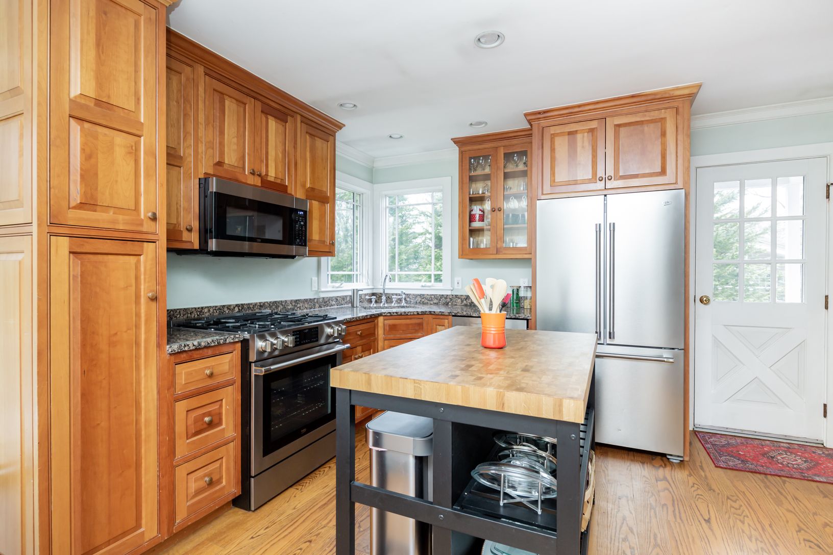 This charming and sprawling one level home is sited on a .6 hilltop acre on a dead-end street. The 1760 sqft of living space is generous and expansive with a large living room, formal dining room with sliders to bluestone patio, natural light-filled sunroom with cathedral ceiling, skylights and French doors leading to a large private covered front porch. The eat in kitchen features a quaint breakfast area with bay window overlooking the patio