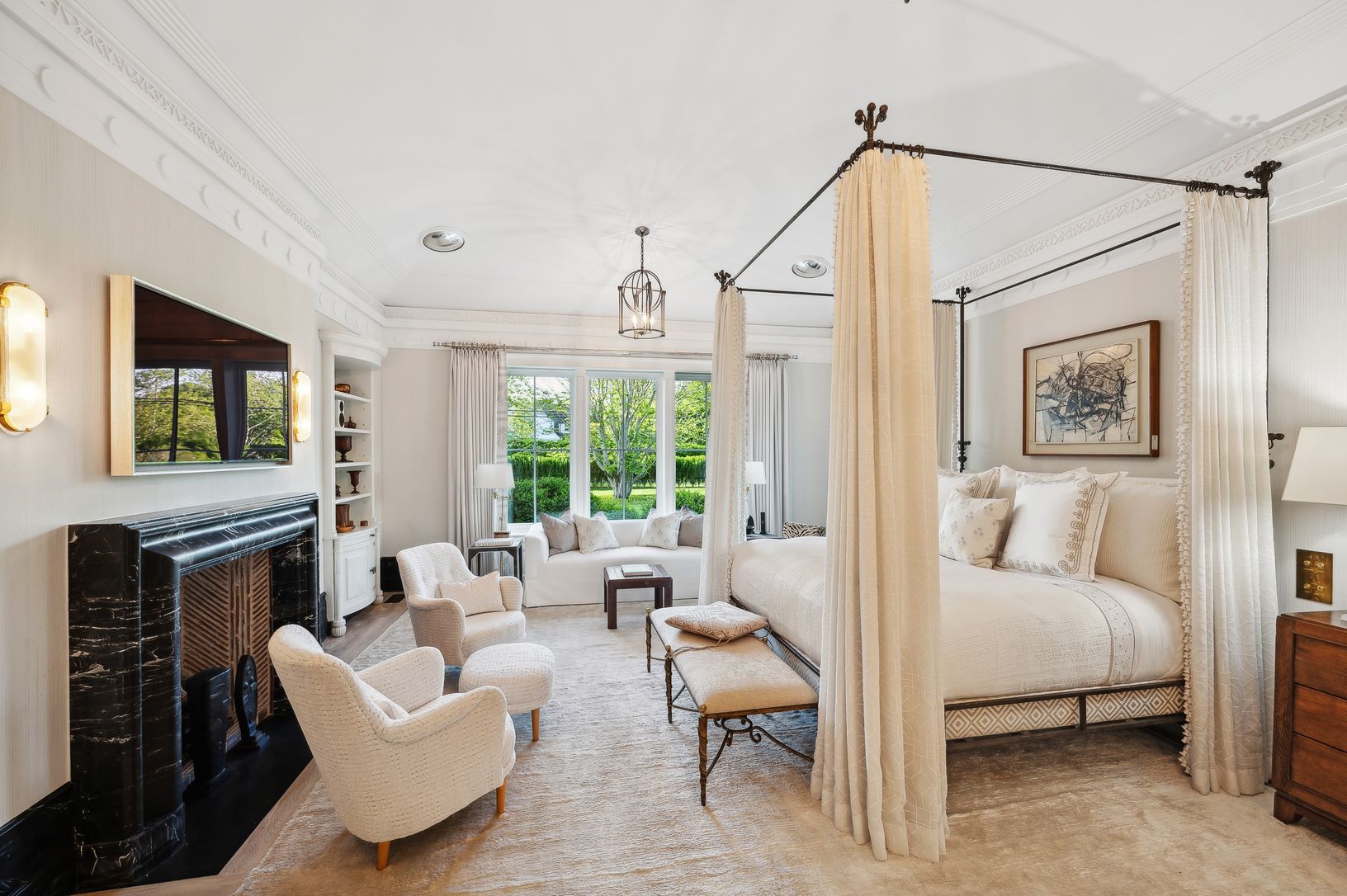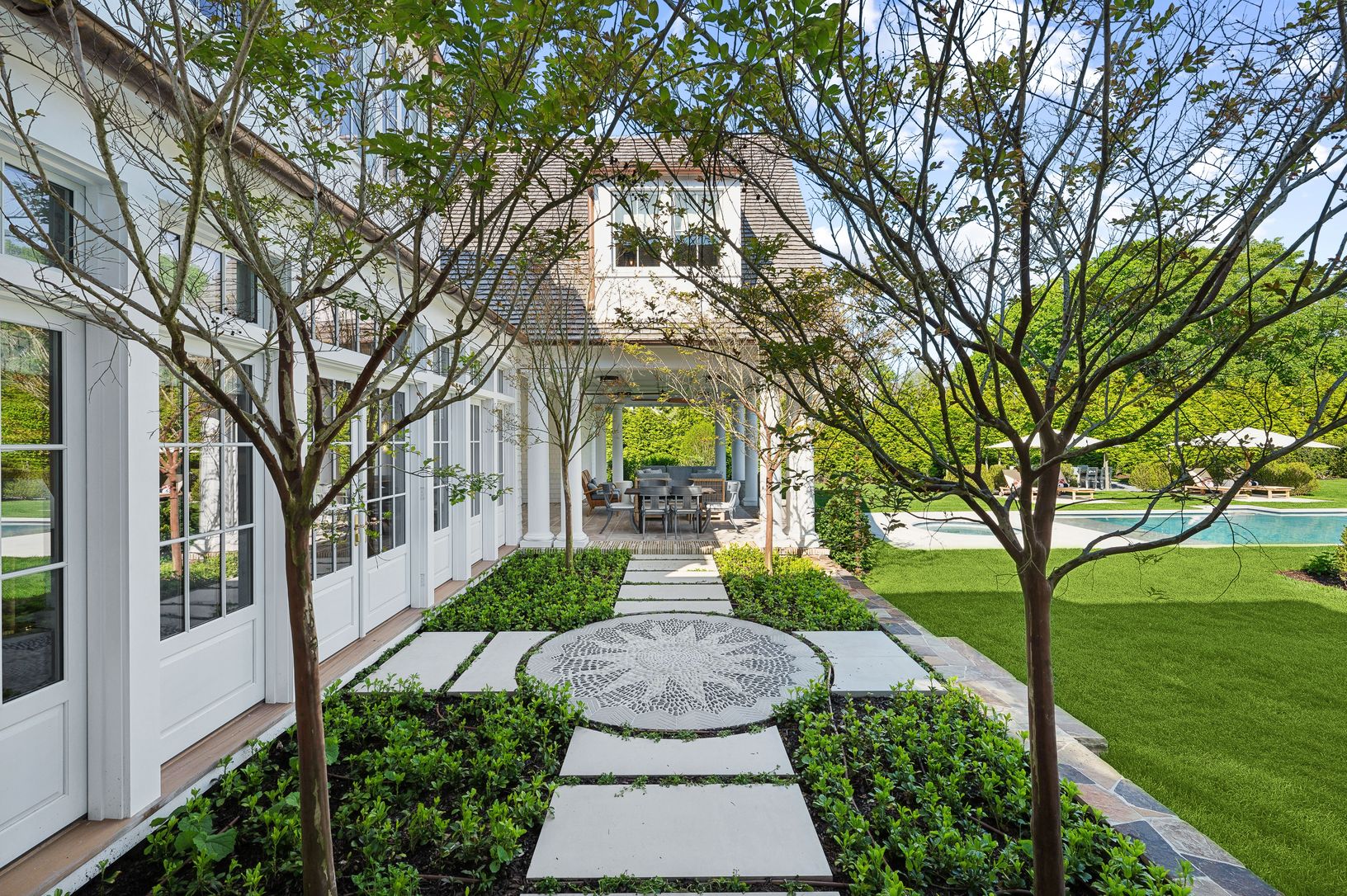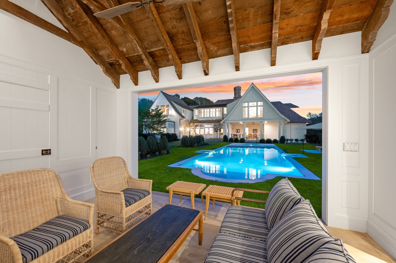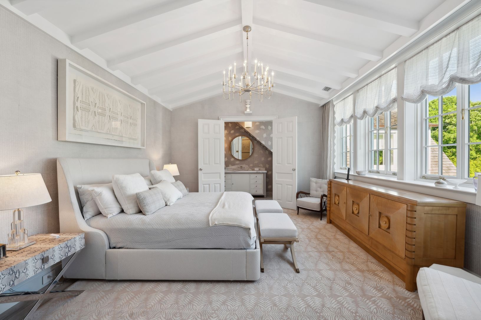 On 1.12+/- acres along coveted Hither Lane, James Michael Howard's masterpiece, influenced by classical architecture, awaits-a rare chance for a once-in-a-lifetime experience this 11,644+/- sq. ft. home boasts a grand gated entrance, heated gunite pool, pool house, and a detached 2-car garage with old barn board finished interior loft space. Curated by Howard, the fully furnished home features 8 bedrooms, 8 full and 1 half bathrooms, and an el
