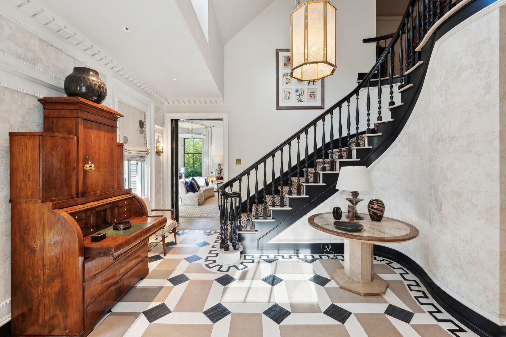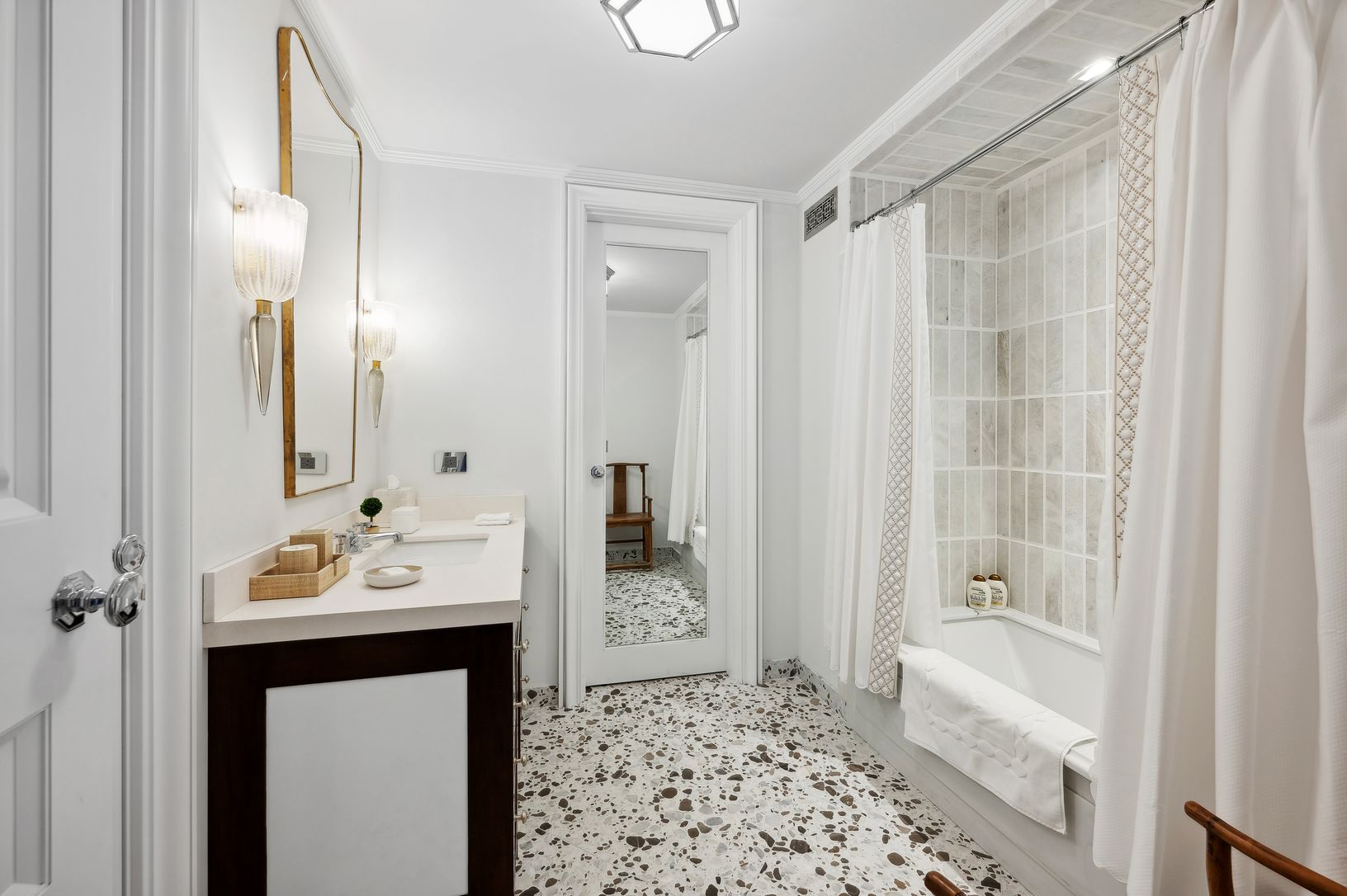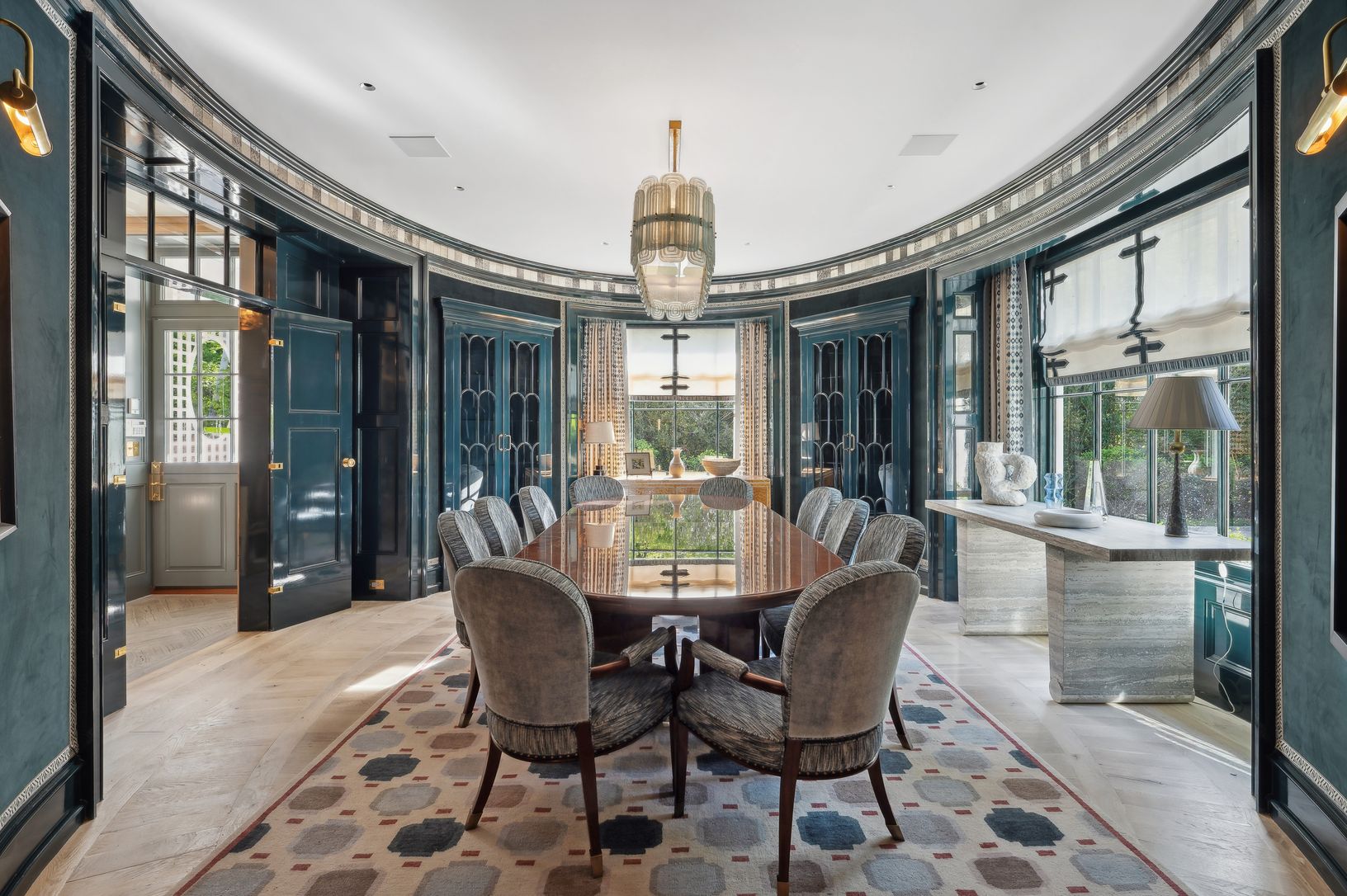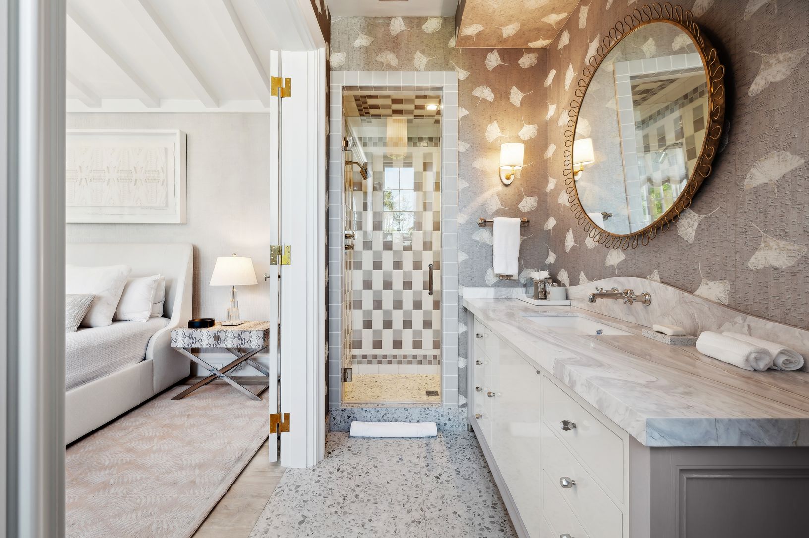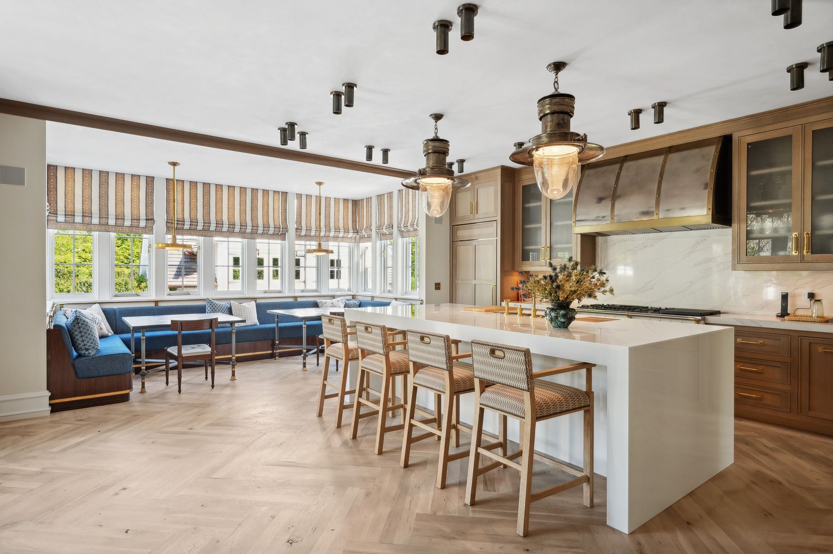 On 1.12+/- acres along coveted Hither Lane, James Michael Howard's masterpiece, influenced by classical architecture, awaits-a rare chance for a once-in-a-lifetime experience this 11,644+/- sq. ft. home boasts a grand gated entrance, heated gunite pool, pool house, and a detached 2-car garage with old barn board finished interior loft space. Curated by Howard, the fully furnished home features 8 bedrooms, 8 full and 1 half bathrooms, and an el