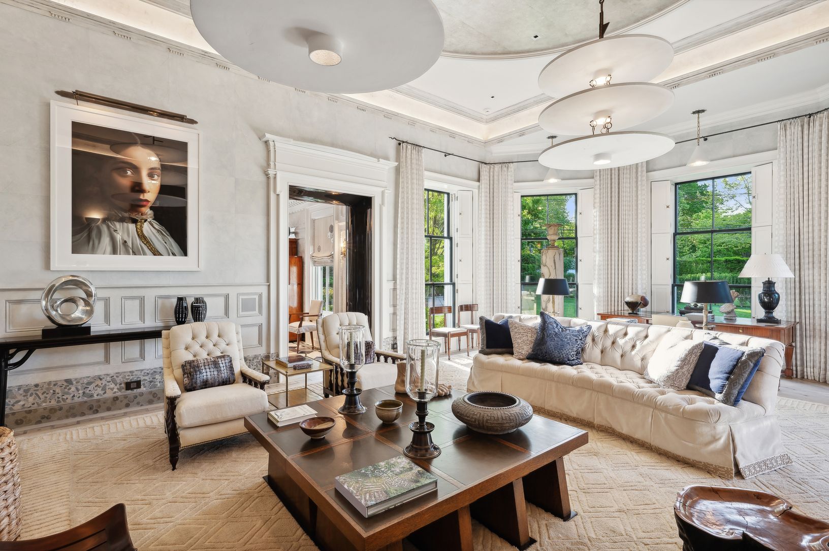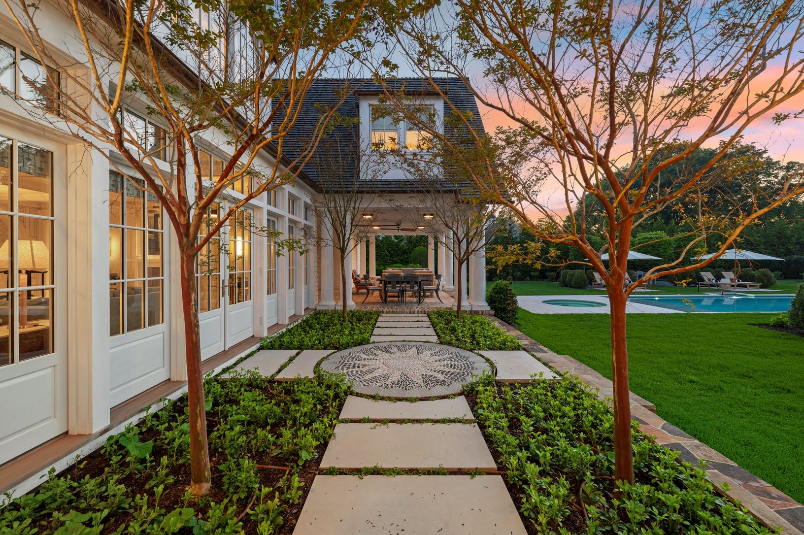 On 1.12+/- acres along coveted Hither Lane, James Michael Howard's masterpiece, influenced by classical architecture, awaits-a rare chance for a once-in-a-lifetime experience. Crafted by McAlpine Tankersley Architecture, P.C., the 11,644+/- sq. ft. home boasts a grand gated entrance, heated gunite pool, pool house, and a detached 2-car garage with old barn board finished interior loft space. Curated by Howard, the fully furnished home features