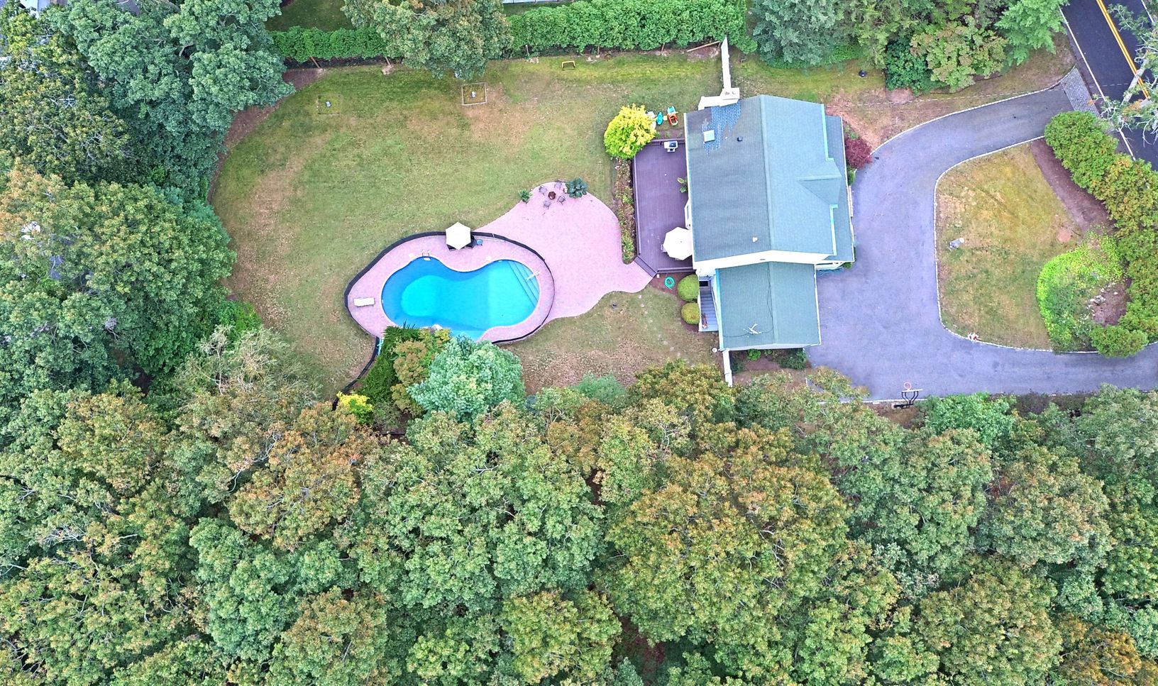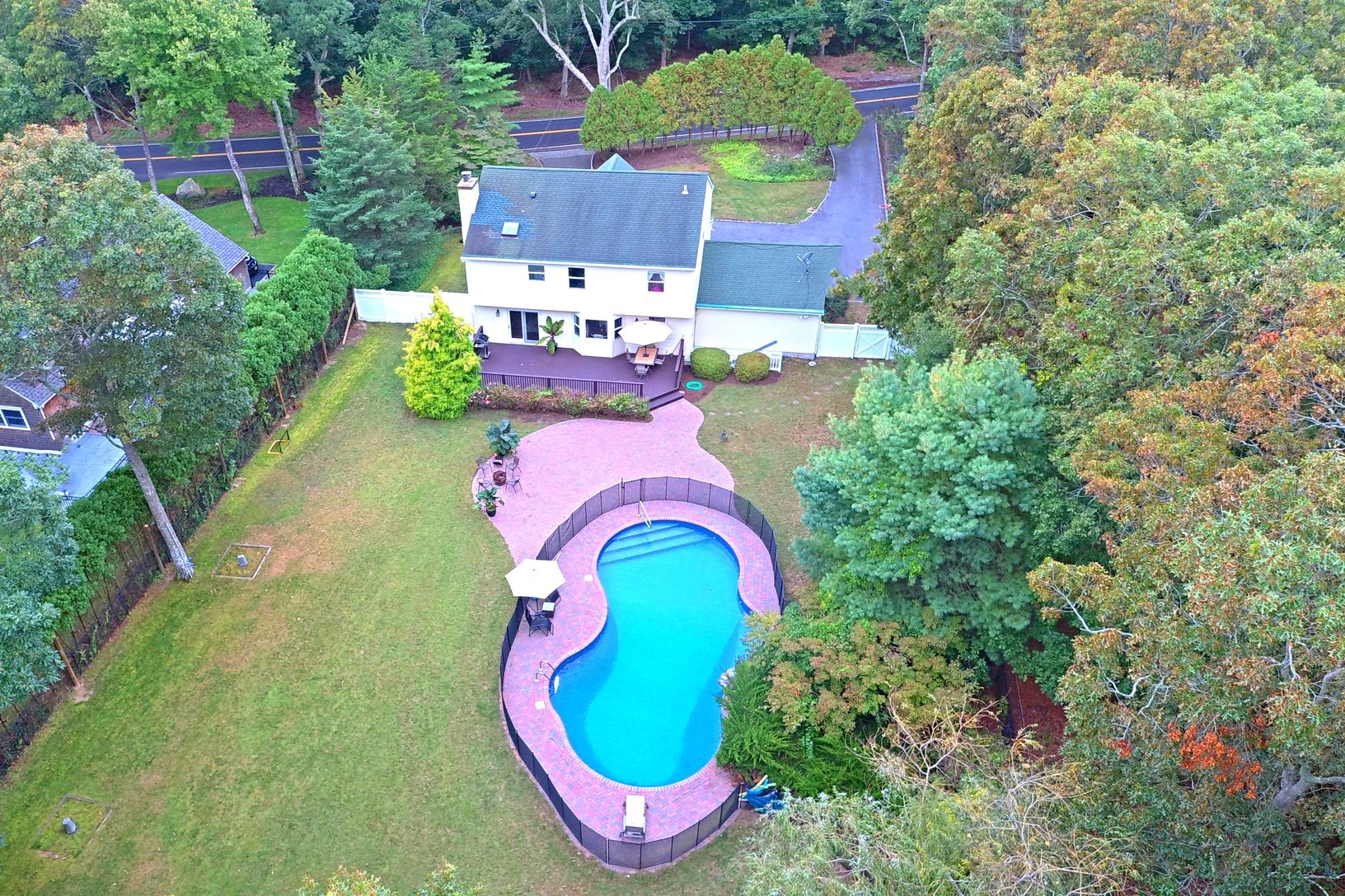 South of the highway in a private setting lies this perfect home protected by new invisible deer fencing with ample lawn space, an inviting in ground pool with new Merlin Industries Sterling Shore liner, pavers and removable lifesaver pool fence. Inside, the eat in the kitchen has been completely renovated and opens to the living area with wood burning stove. Formal dining and den finish off the main floor. The lower level is 1000+/-sqft of fi