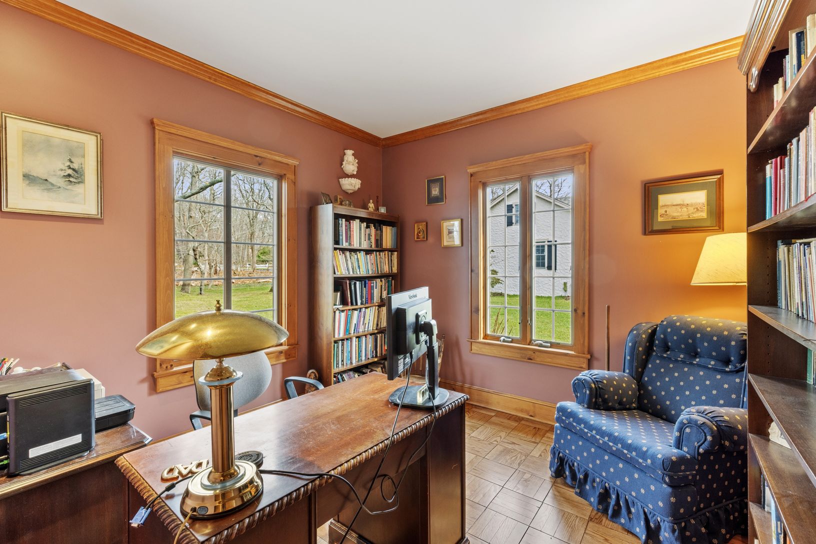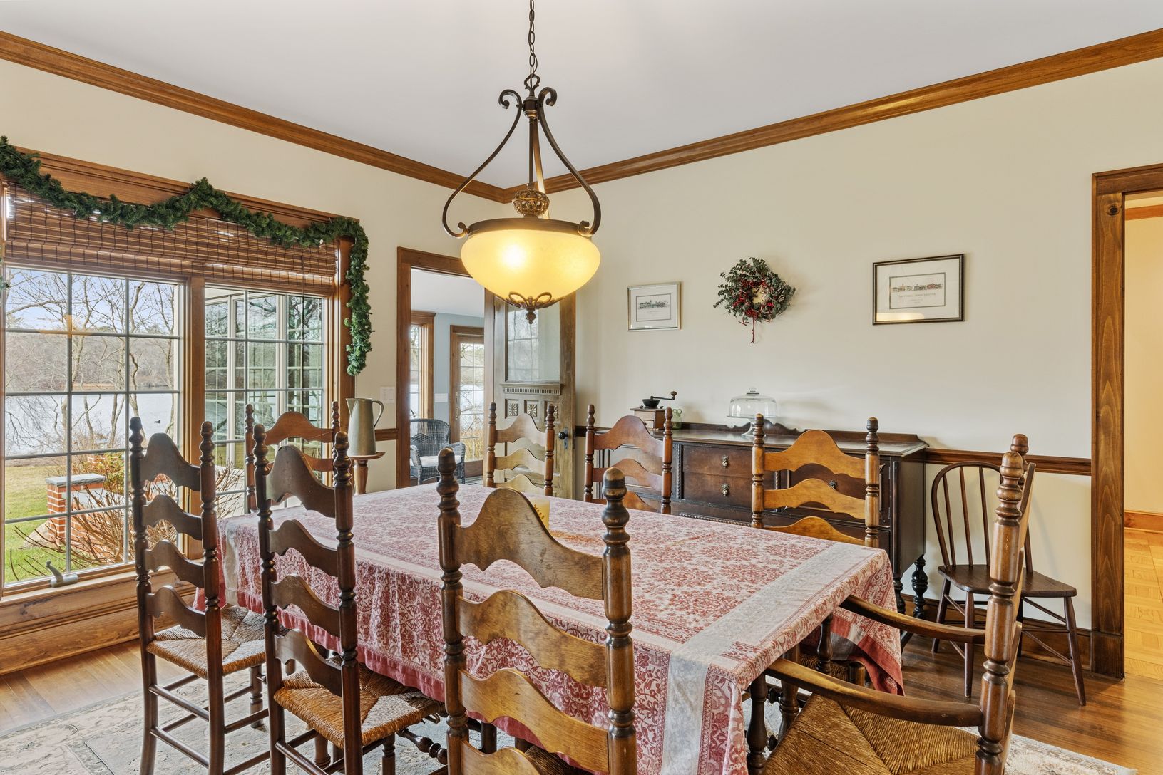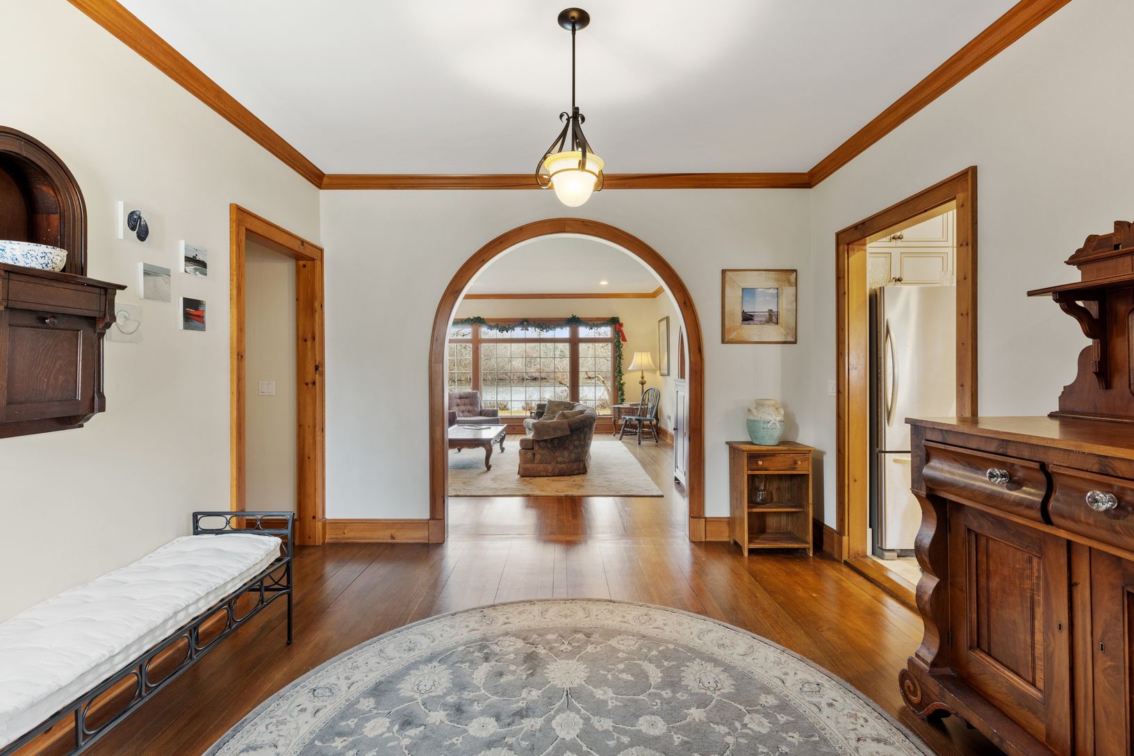 Overlooking nature at its best is this 1920’s vintage home completely restored to its original splendor along with modern updates including solar panels! The ~1.4 acres gently rolls down to the spring fed lake which is ideal for swimming and observing the abundant wildlife. The layout features a first-floor master suite, living room with fireplace, formal dining room, kitchen with breakfast nook, powder room, office/bedroom, family room and f