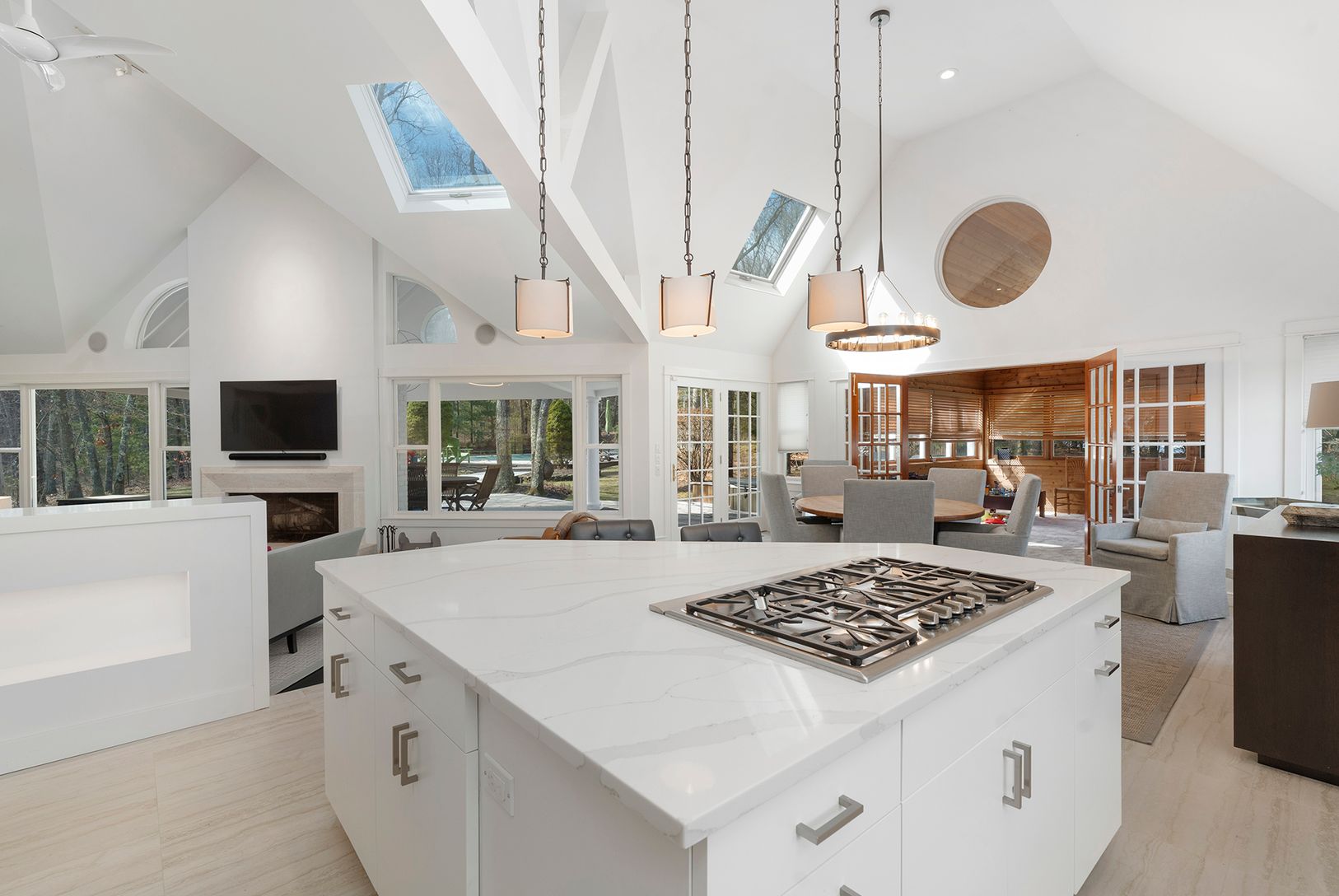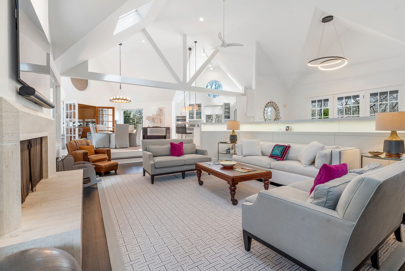 This private 1.5-acre gated estate in East Hampton's Northwest Woods offers the perfect balance of relaxation and high-end entertaining. Ideally located between East Hampton and Sag Harbor, the home provides easy access to luxury shopping at Chanel and Gucci, Michelin-star dining, and premier art galleries. The multi-level interior features a professional chef's kitchen, a state-of-the-art home theater, a temperature-controlled wine cellar, an