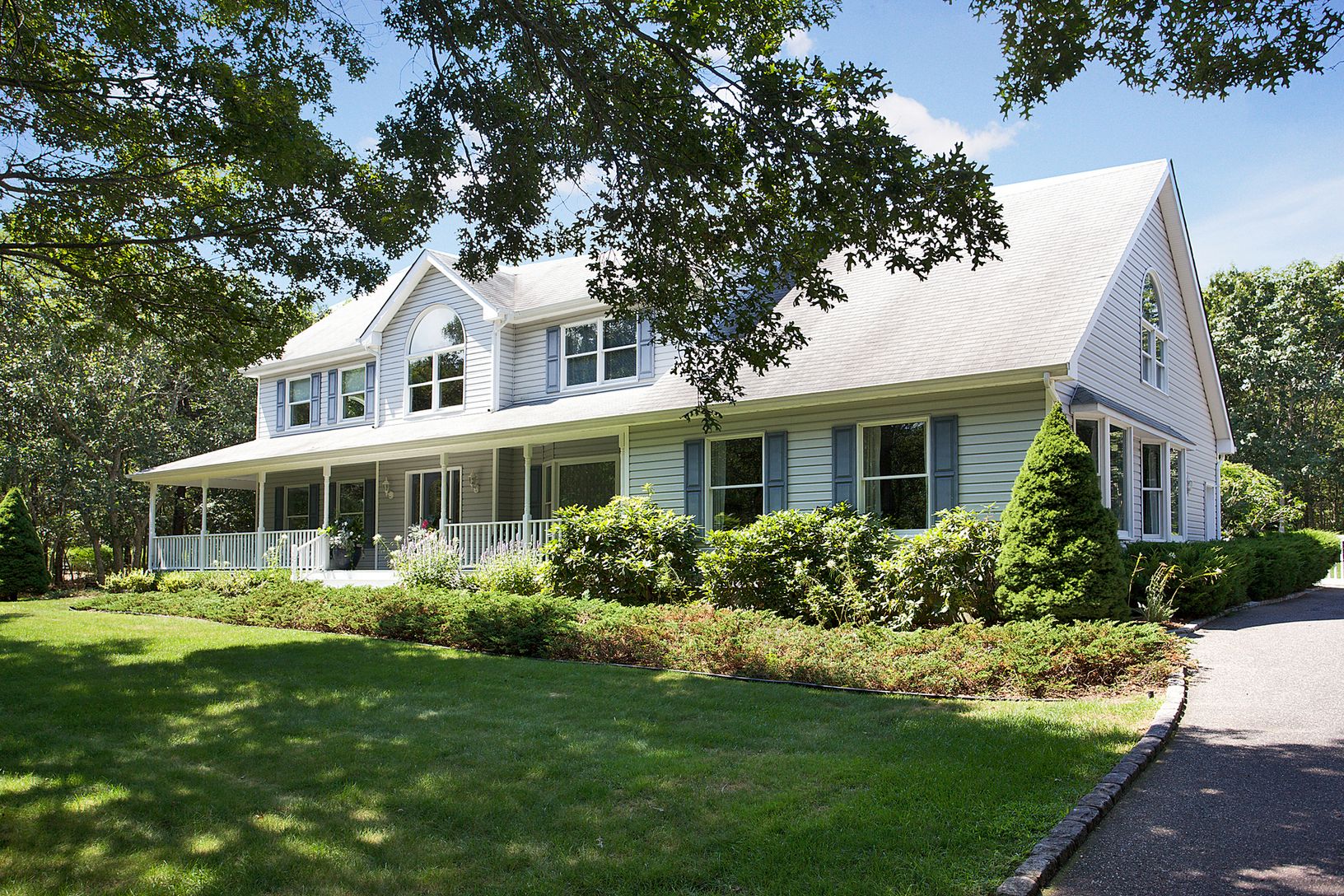 Sagaponack Traditional home with 4 bedrooms 3 baths in a secluded setting on 1.91 acres. Located at the end of a cul-de-sac and bordering a reserve. Enjoy summer on the beautiful wrap-around front porch or out back under the covered deck and pool. Amazing layout; sunken living room with stone fireplace, formal dining room, eat-in-kitchen, sitting room and spacious great room. Also includes full basement, office and detached two-car garage.
