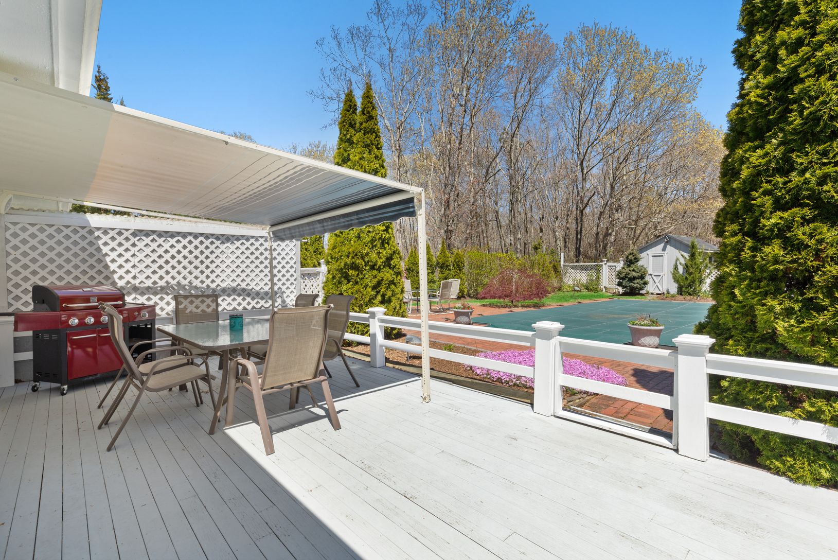 WOW ! This considerably large piece of property is the Epitomy of the word RANCH! Newly renovated and Located in SAG HARBOR -There is a heated In-Ground 12 x 32ft Pool- and outdoor shower. A 2 car garage and storage Shed. Four bedrooms,(The Fourth bedroom has its own separate private entrance should you choose). Three full baths (one with radiant heat). The lower level could be finished for additional living space. The kitchen has Silestone qu