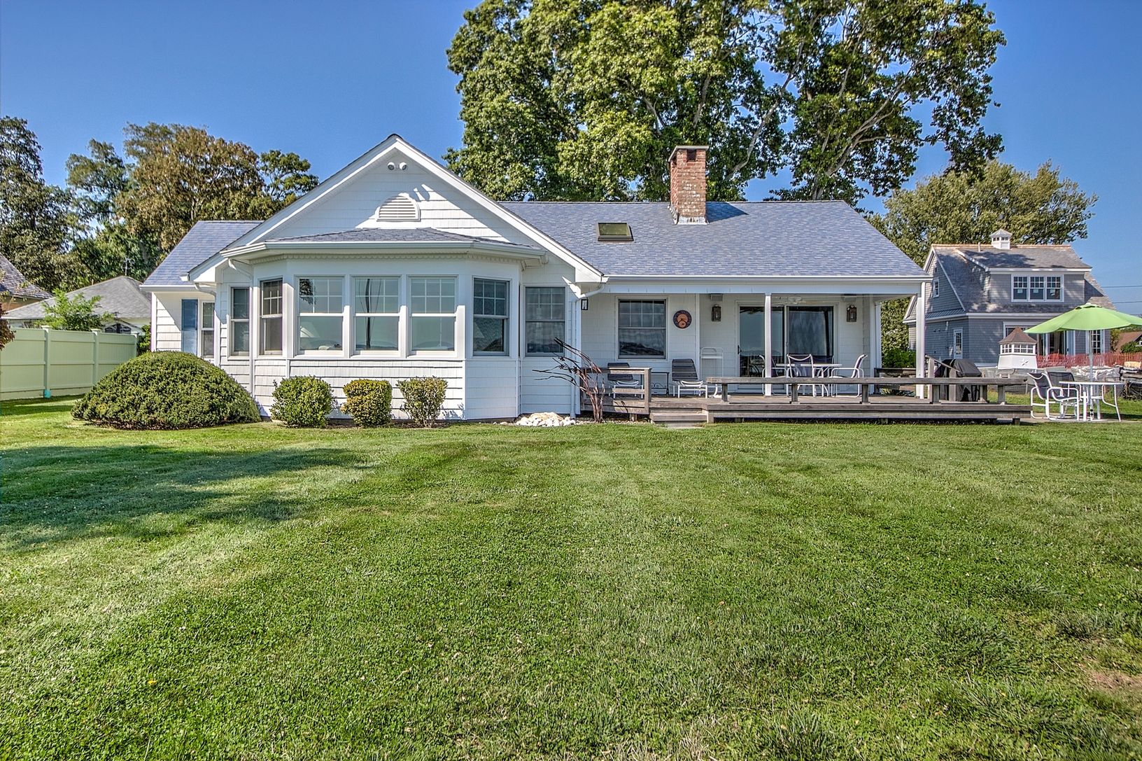 Built in 1929, this spectacular water front home on West Neck Bay is enjoyed from this 3-bedroom/ 3 bathroom CAC sunny home. Spacious rooms, a studio cottage with half bath and a dock with deepwater mooring complete the picture for the summer season.