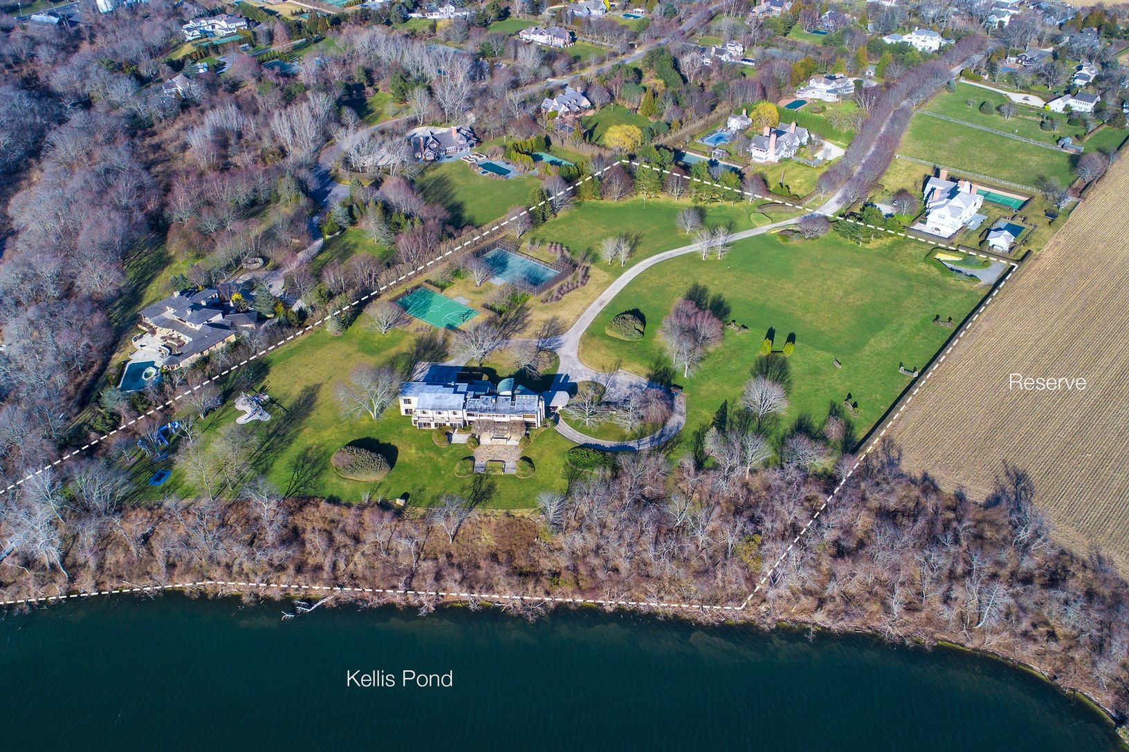 Morgan Hill Farm is defined by privacy and seclusion. Set at the end of a private country lane, beset with cherry trees and rolling lawns, sits one of the last remaining premier estate's in the Hamptons. The bucolic grounds are set over 11.5 sprawling acres in prime Bridgehampton South. These classic grounds command 770+/- feet of frontage on Kellis pond, along with a dock and majestic views. The property is bordered to the east by 31.5 ac