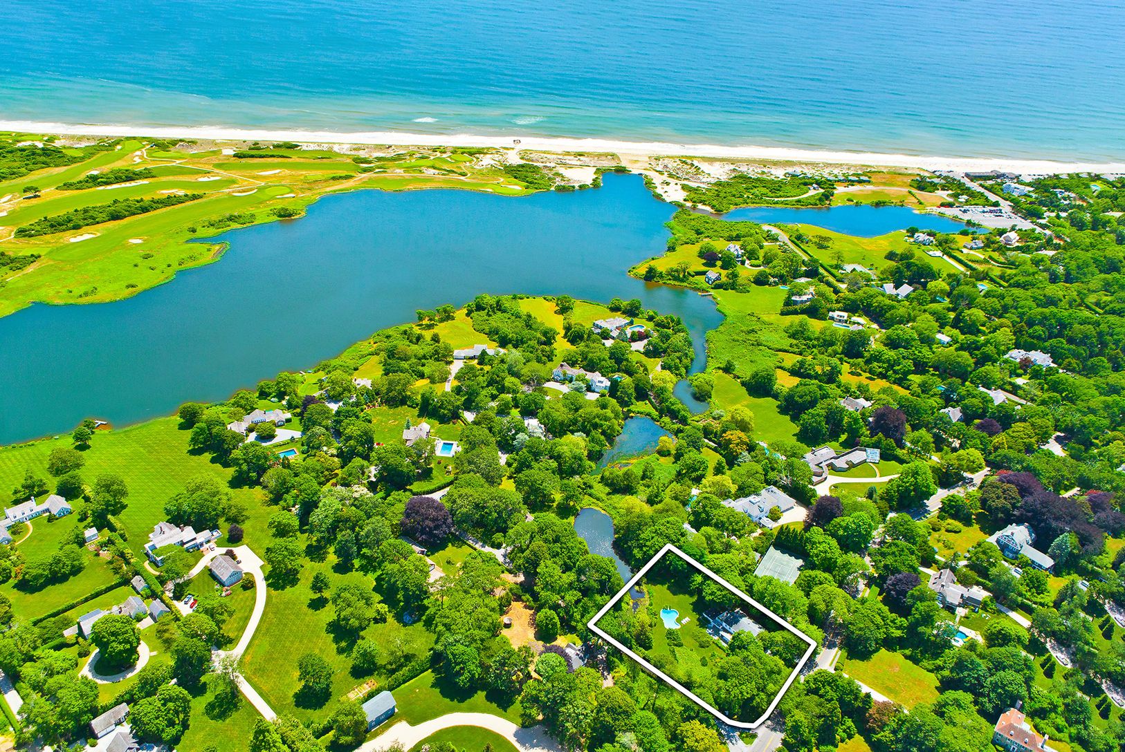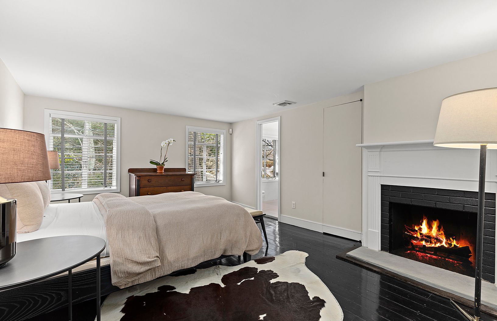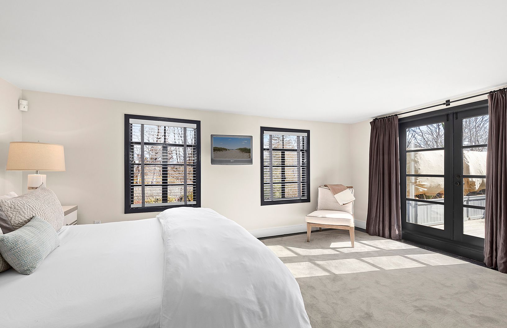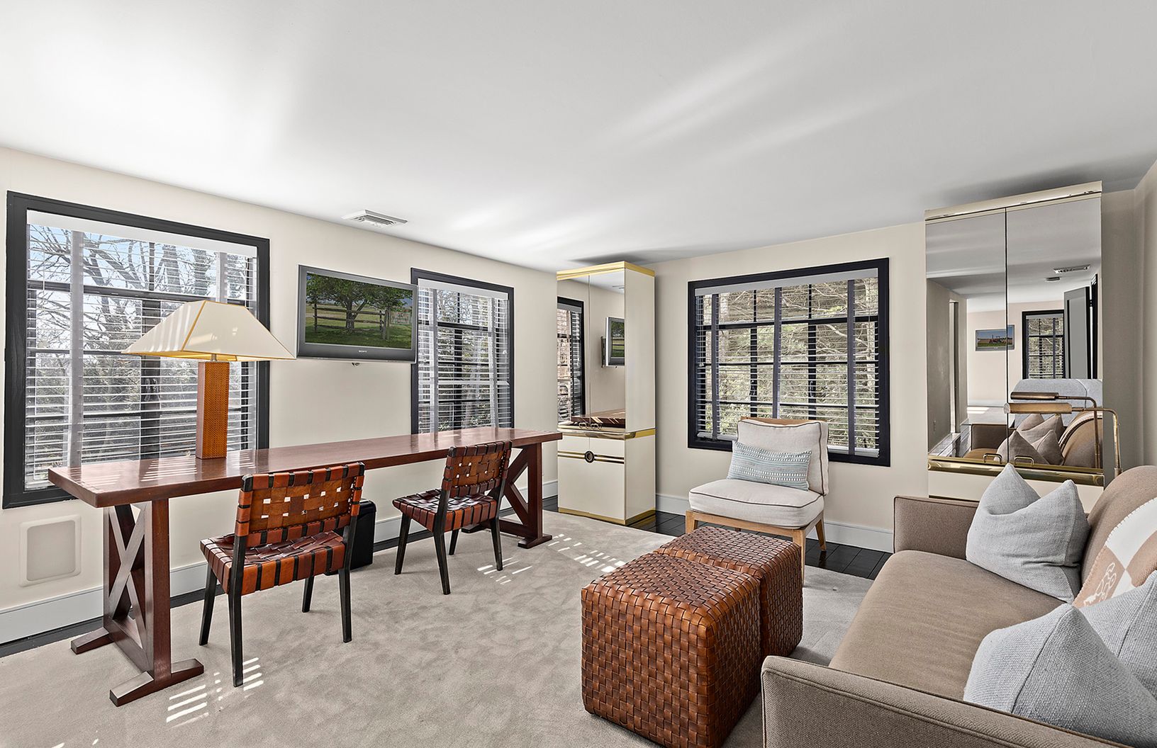 Hidden behind tall hedges and trees, this warm and inviting one-plus acre south of the highway house opens to a covered patio overlooking the lush landscaping and rolling lawns. This private and tranquil setting offers 5 bedrooms and 4.5 baths. A small bedroom, bath and powder room are on the first floor. The second floor has a primary bedroom ensuite with a private study & terrace. There is also a guest bedroom ensuite with a sitting are