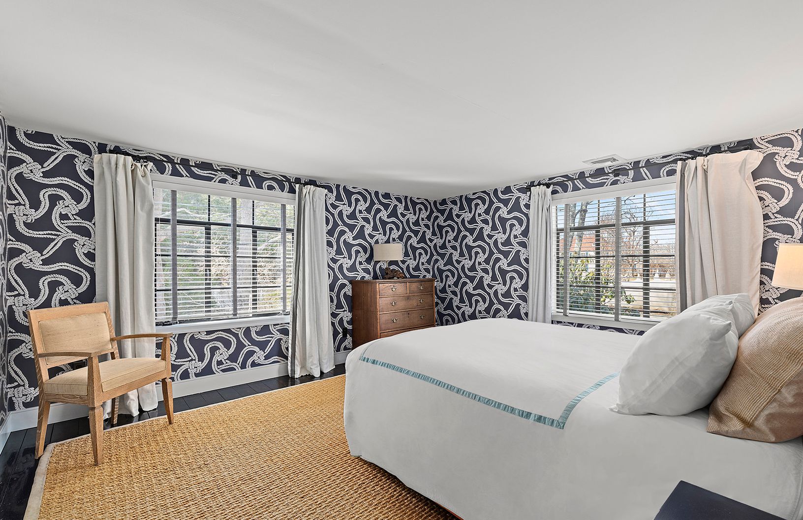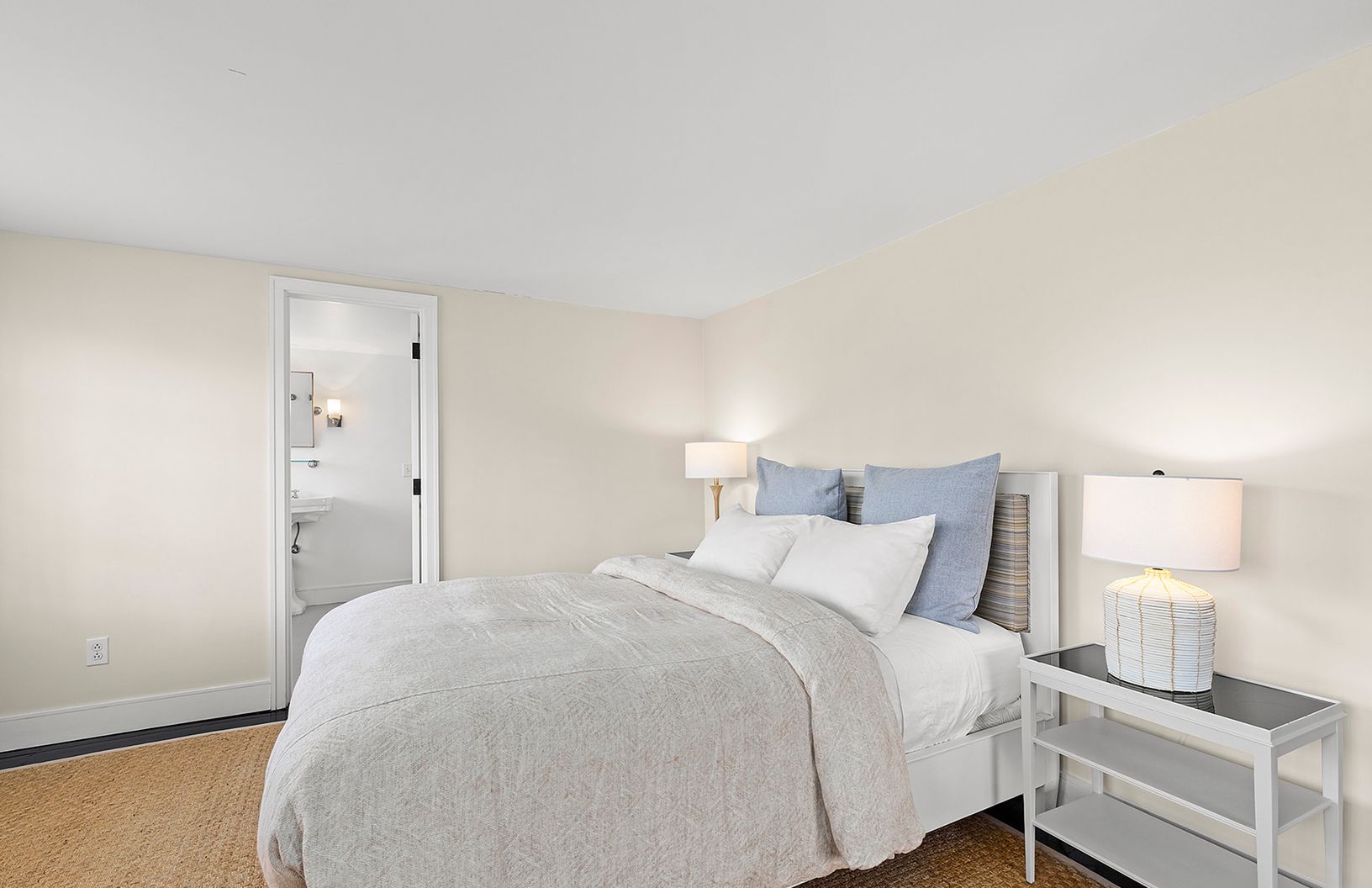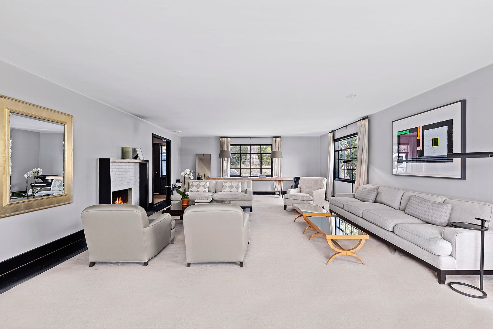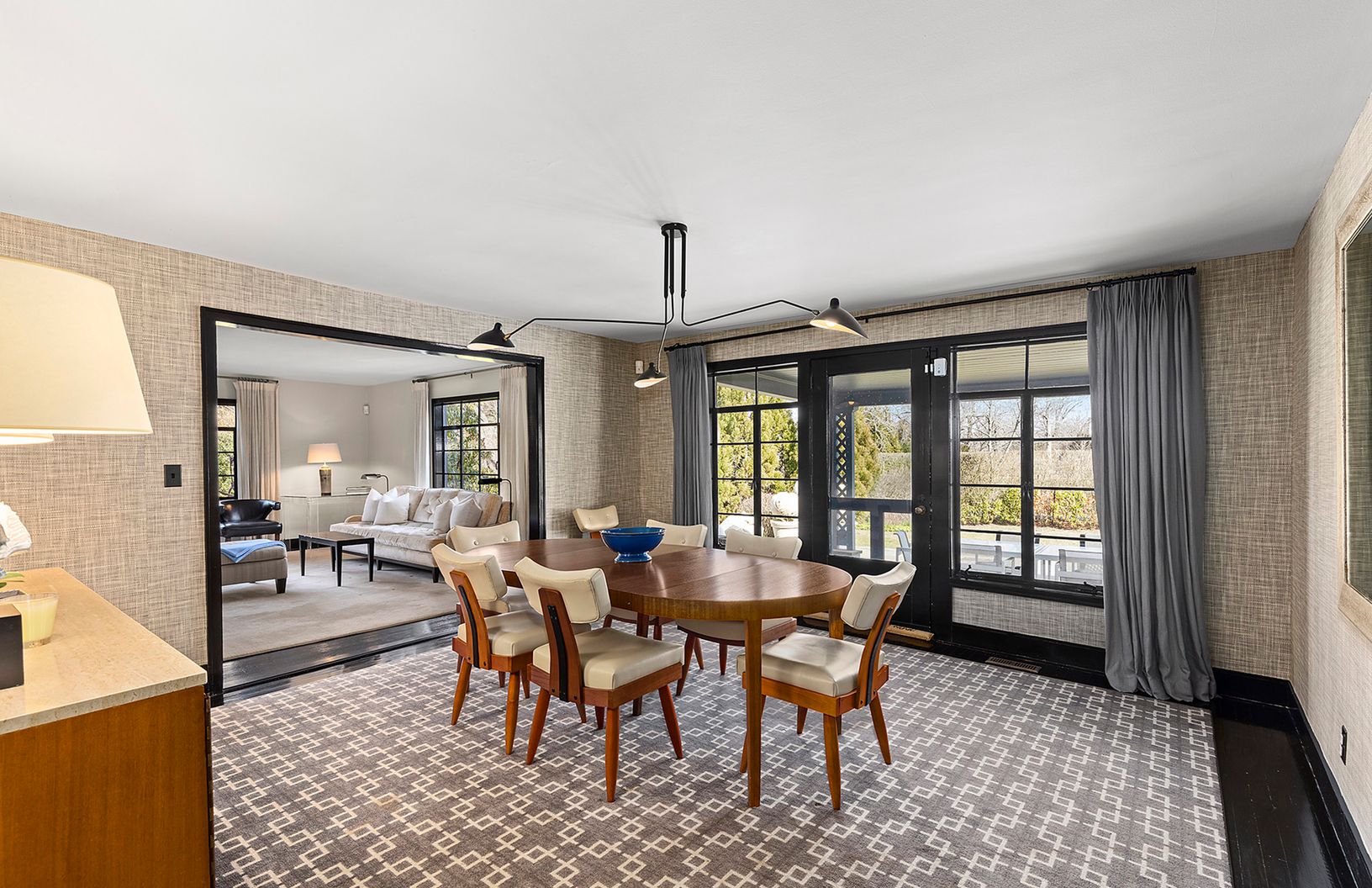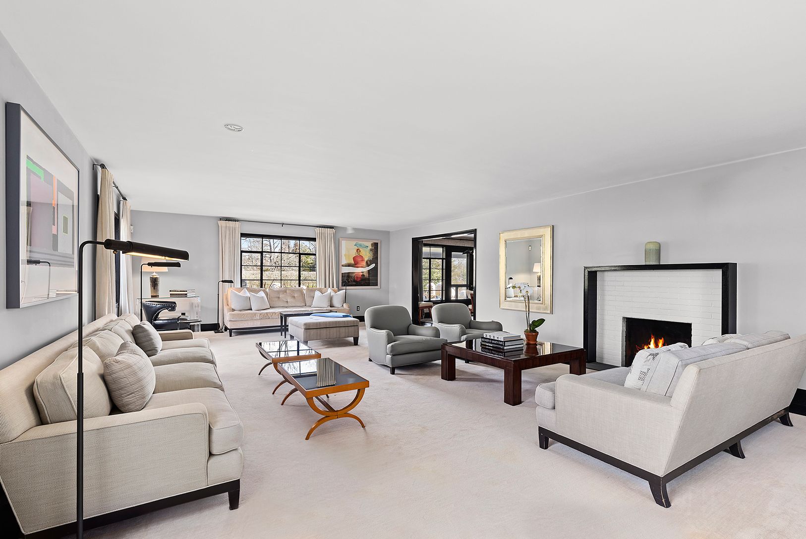 Hidden behind tall hedges and trees, this warm and inviting one-plus acre south of the highway house opens to a covered patio overlooking the lush landscaping and rolling lawns. This private and tranquil setting offers 5 bedrooms and 4.5 baths. A small bedroom, bath and powder room are on the first floor. The second floor has a primary bedroom ensuite with a private study & terrace. There is also a guest bedroom ensuite with a sitting are