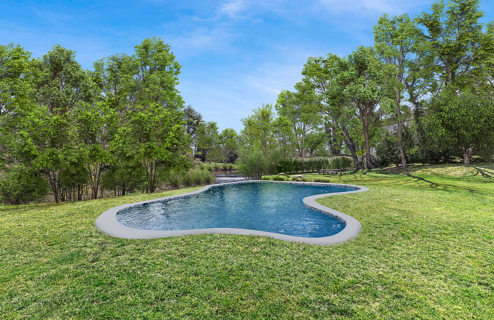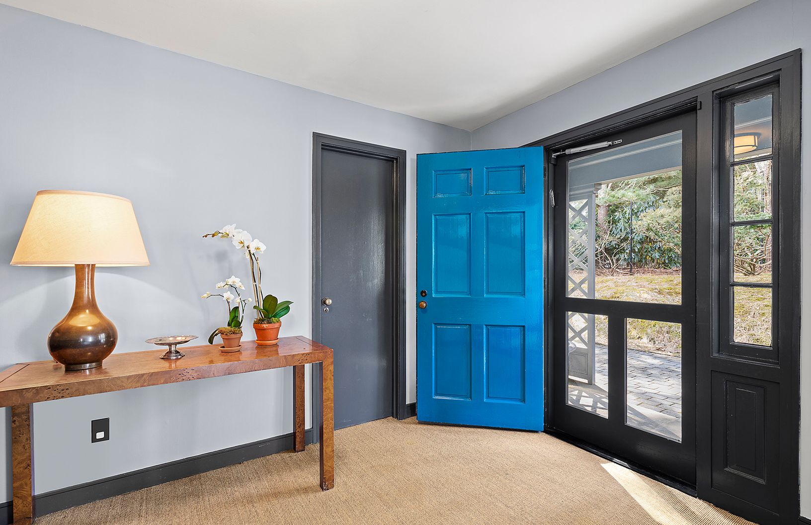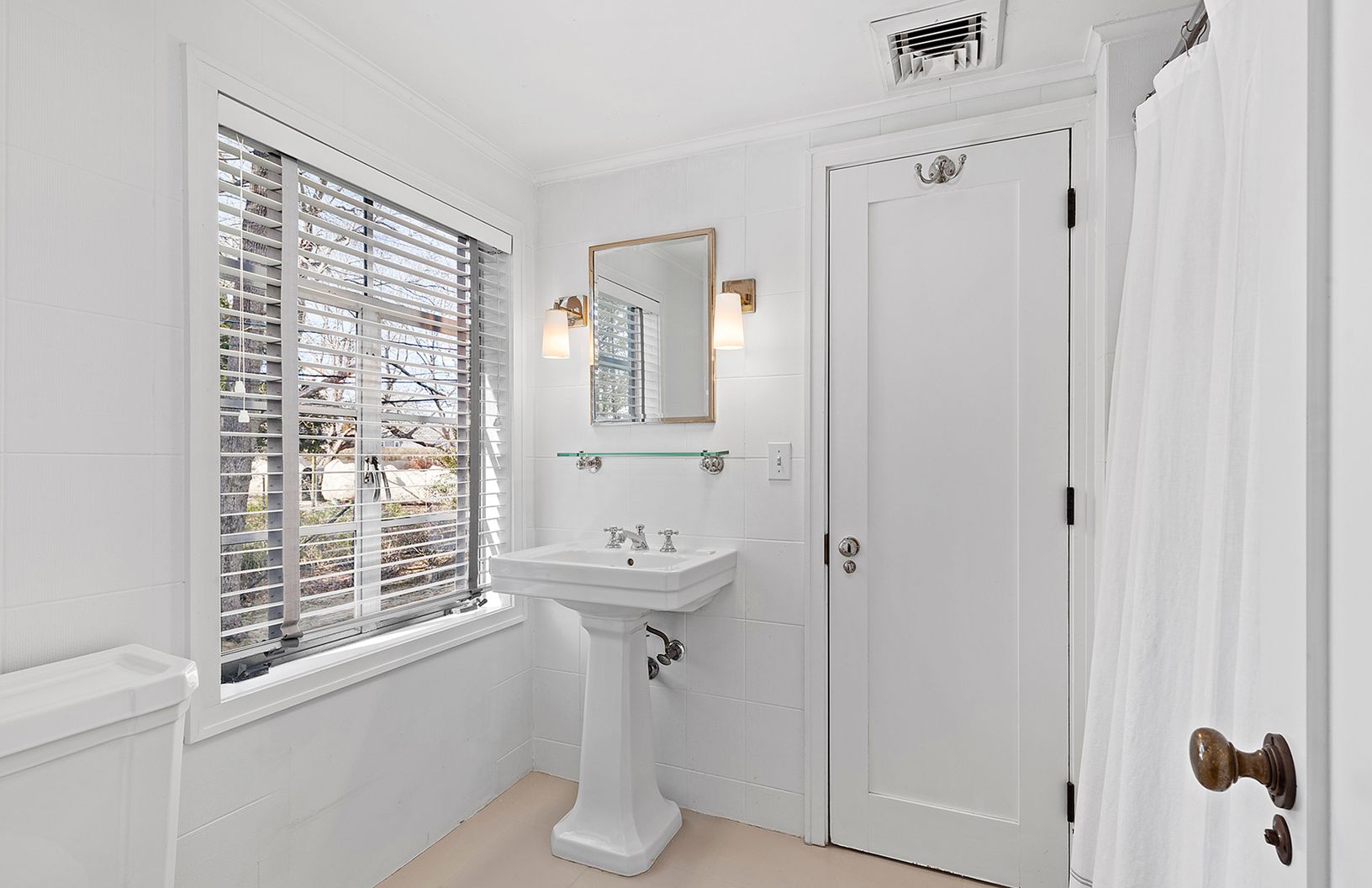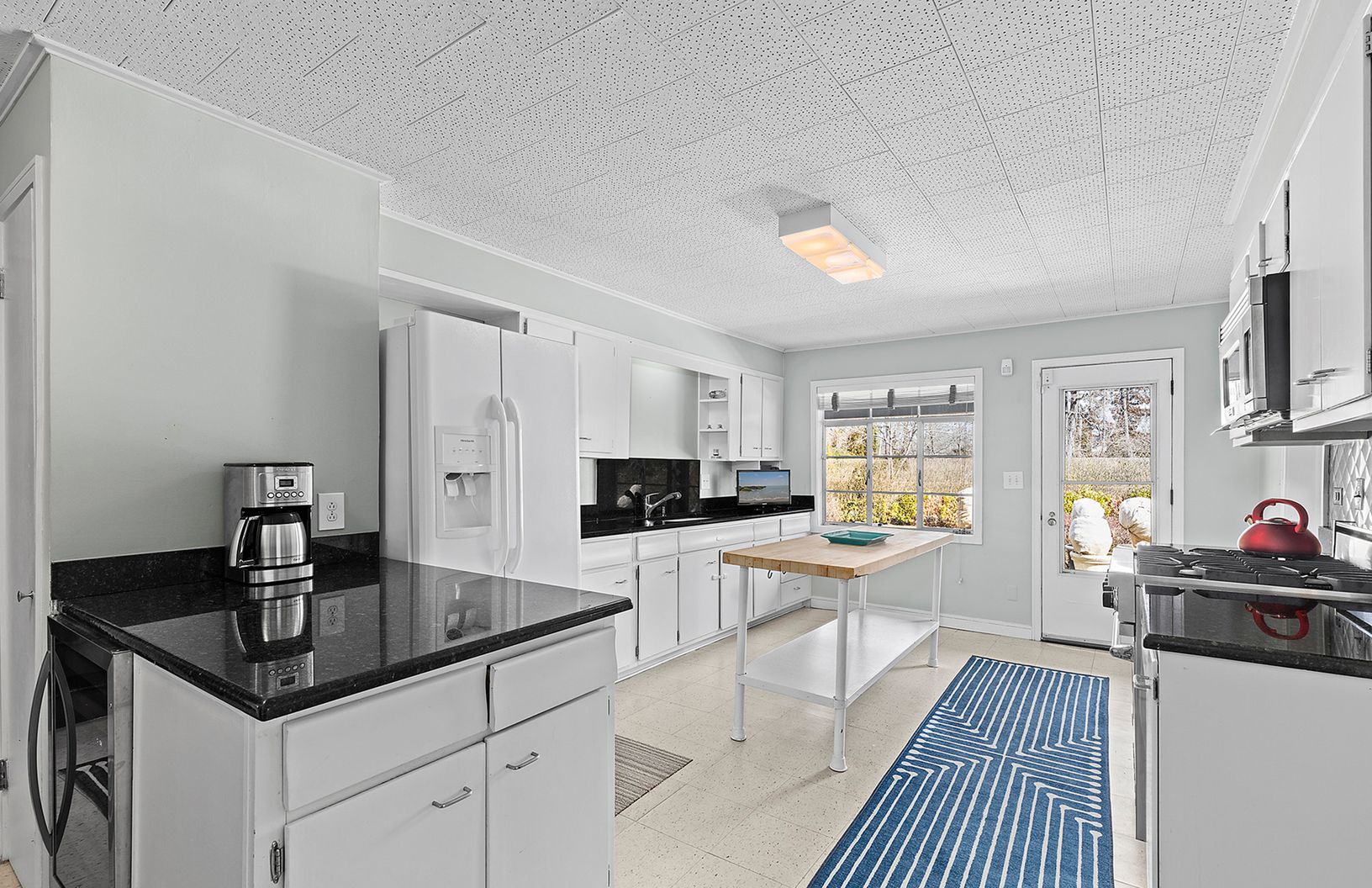 Hidden behind tall hedges and trees, this warm and inviting one-plus acre south of the highway house opens to a covered patio overlooking the lush landscaping and rolling lawns. This private and tranquil setting offers 5 bedrooms and 4.5 baths. A small bedroom, bath and powder room are on the first floor. The second floor has a primary bedroom ensuite with a private study & terrace. There is also a guest bedroom ensuite with a sitting are