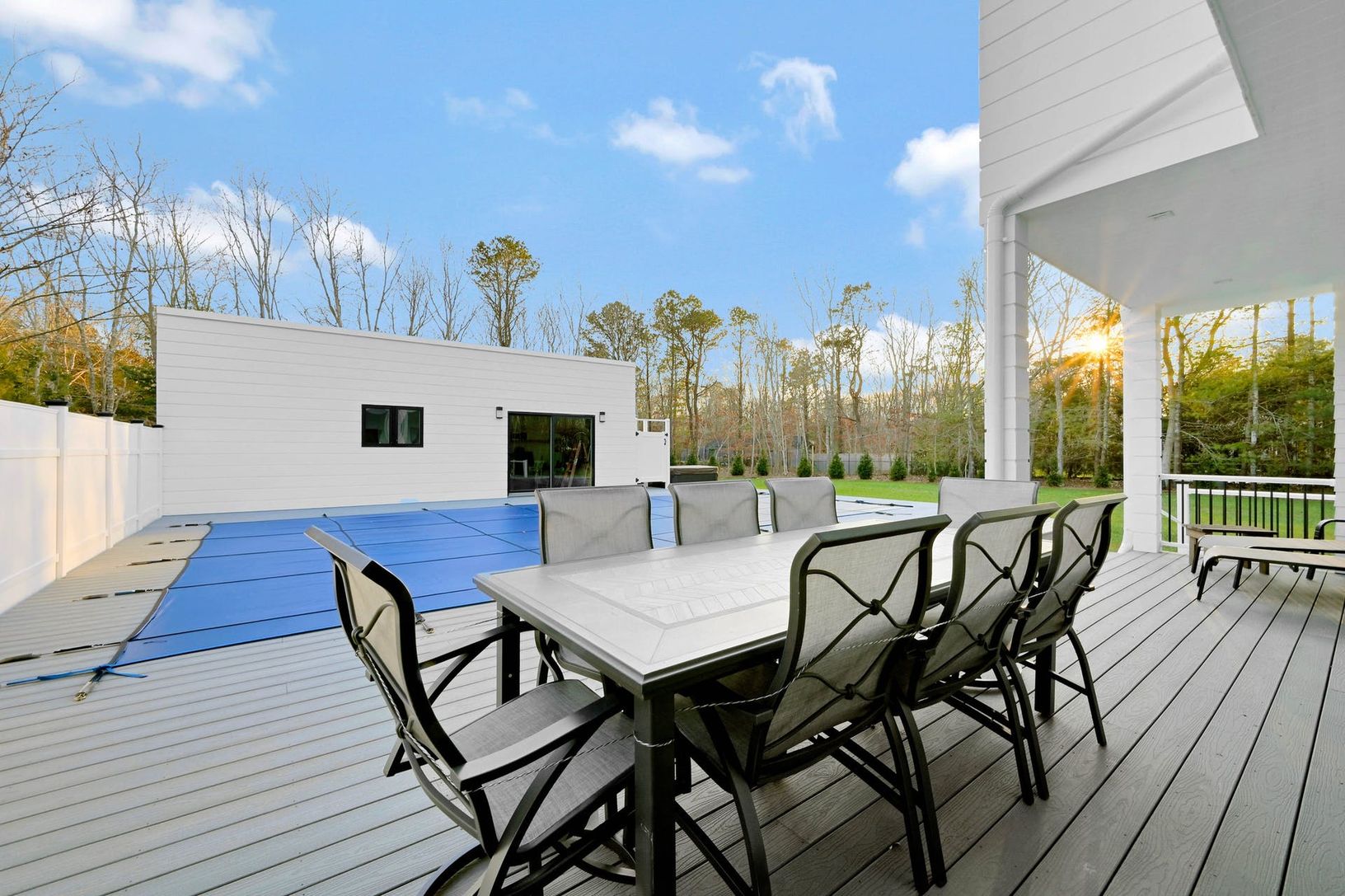 Located in the Village of Quogue in the world-famous Hamptons, this newly renovated Contemporary home offers many features for a memorable summer or luxurious year-round living. Sited on 1.01 acres, the home offers 4 bedrooms, 5 baths, 9-foot ceilings throughout the main floor, open living room, dining room, kitchen and eat-in kitchen areas, all contributing to an expansive interior feeling. The wood burning fireplace in living room is a great