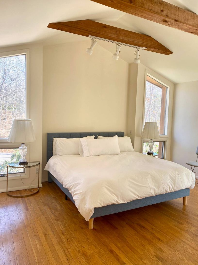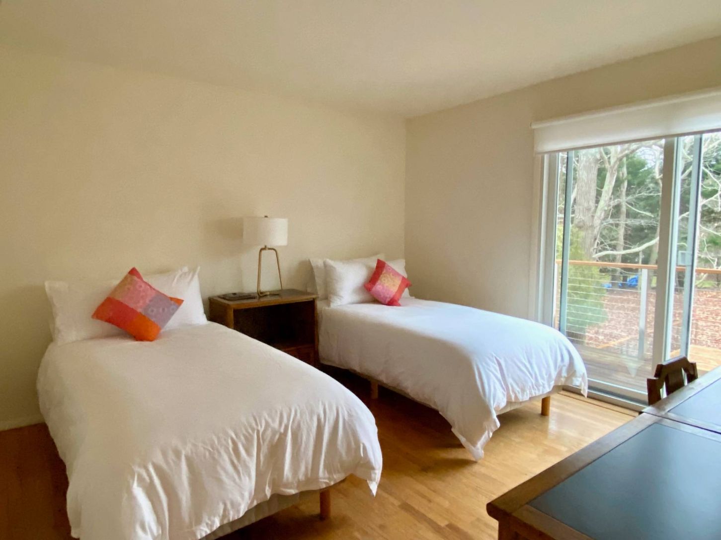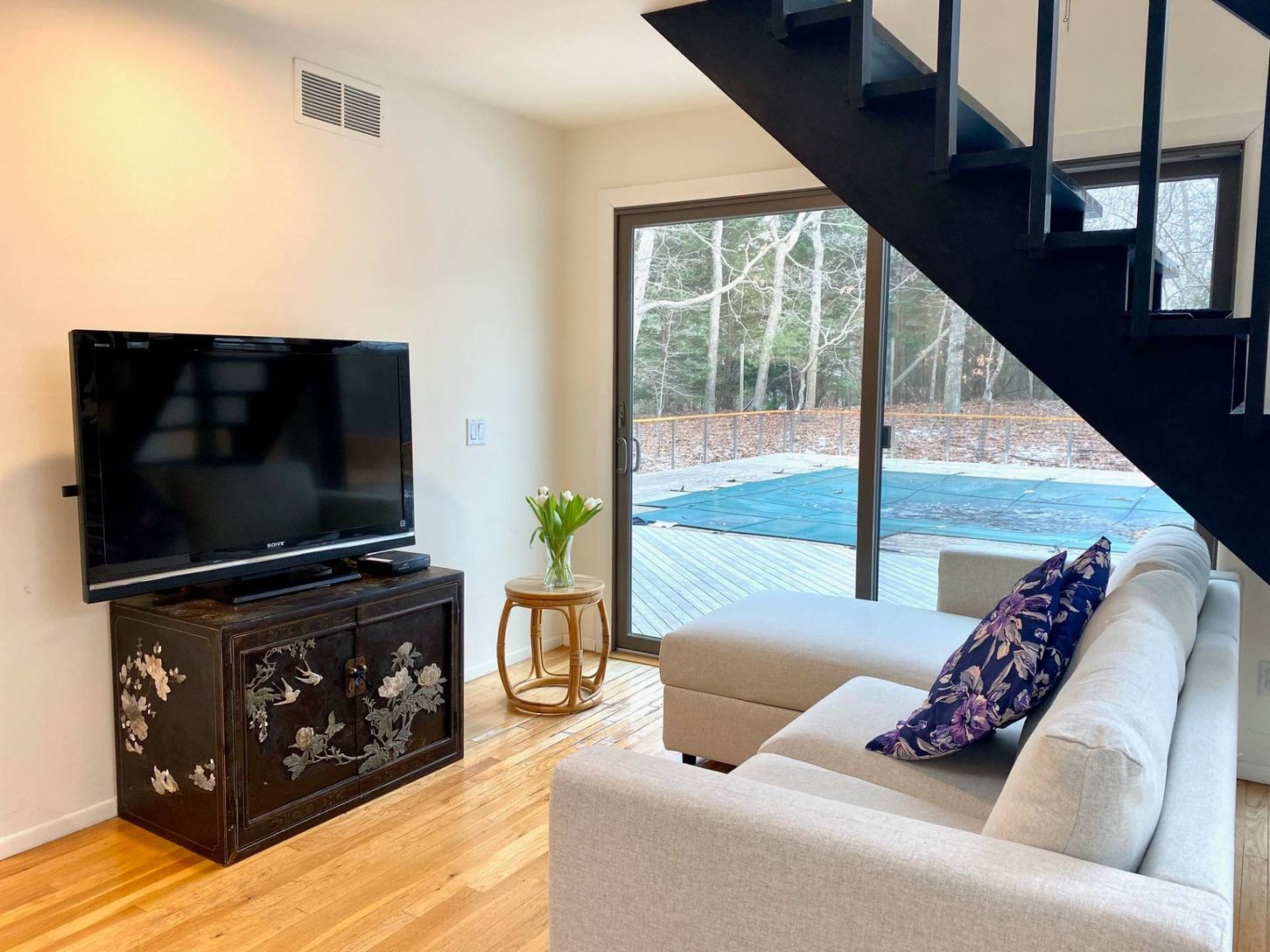 Modern saltbox retreat tucked away on a quiet cul-de-sac, featuring a spacious wraparound deck and a stunning 20' x 40' heated pool. Located just 0.7 miles from a private beach, this home offers the perfect blend of privacy and convenience. The house features three generously sized bedrooms, all with new mattresses, large closets, and dressers. Two bedrooms are located on the second floor and one on the first. The primary suite includes a king