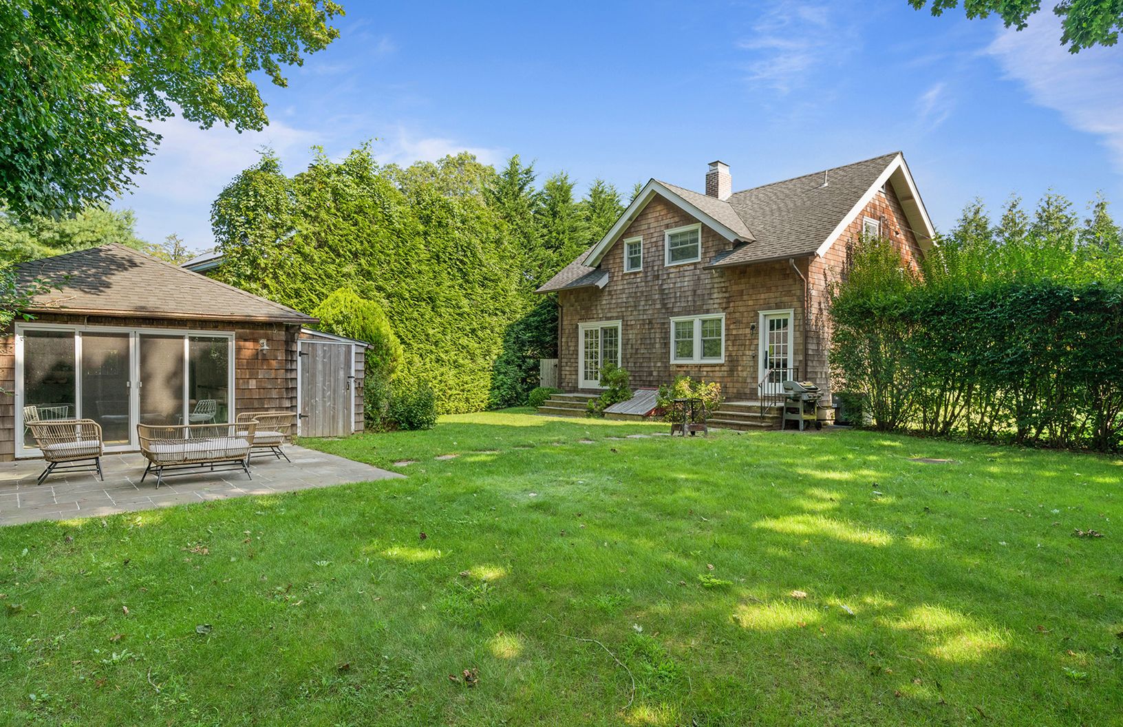 Charming and turnkey, this 1,500 square foot cottage from the 1920's, is ideally located in the Village of East Hampton across from 8.8 acres of forever farmland and within a short distance from everything the Village has to offer including transportation. The home includes an open living area with fireplace, formal dining area, kitchen with granite countertops, banquette, and all new stainless appliances. Upstairs there are three bedrooms lai