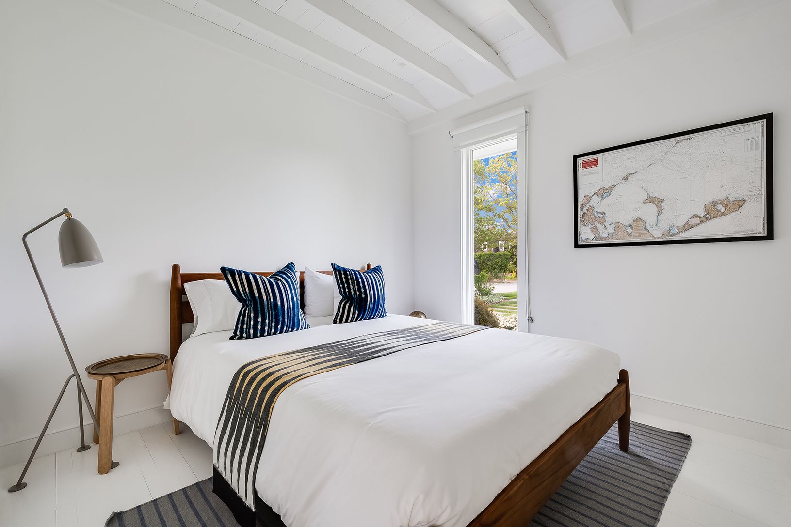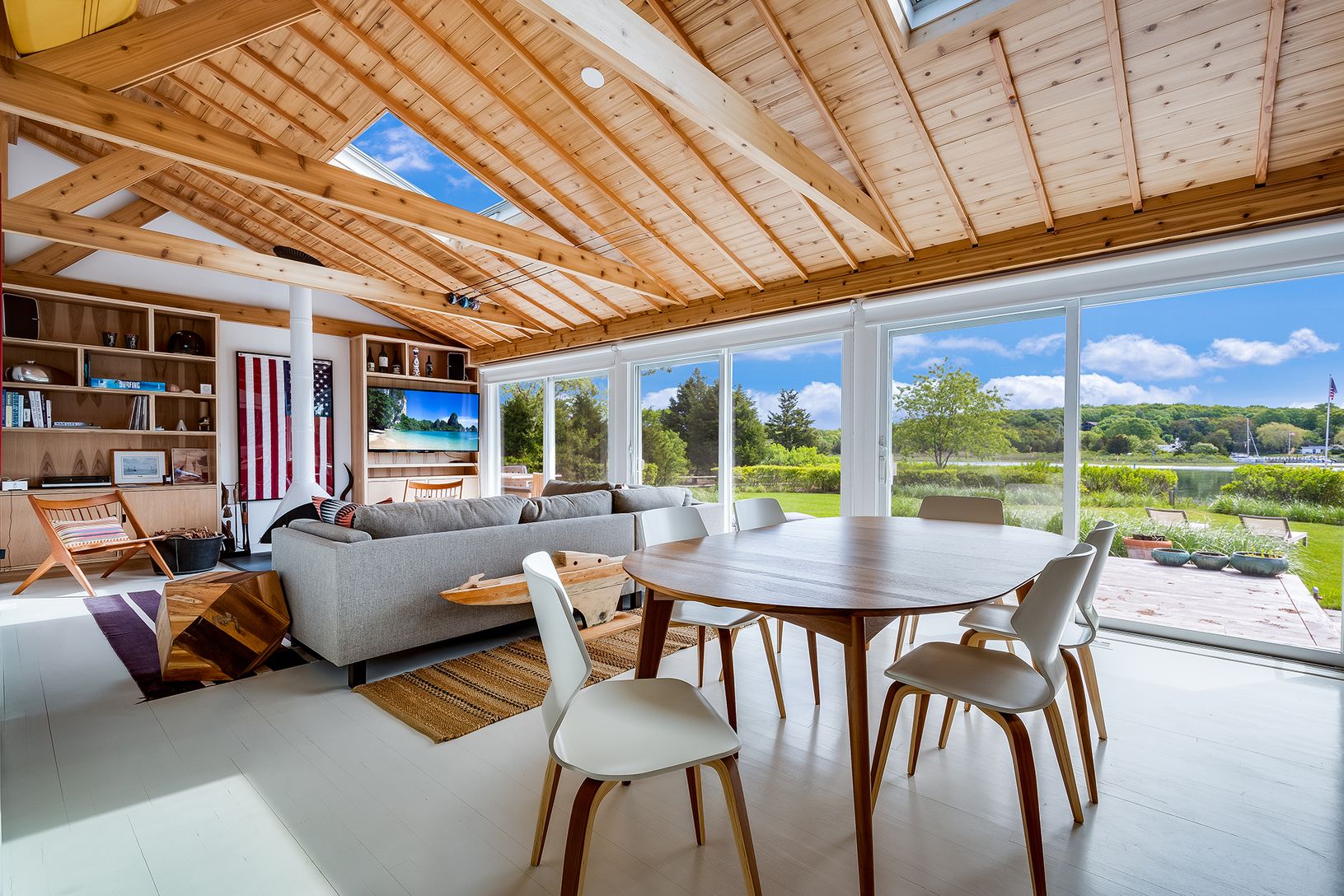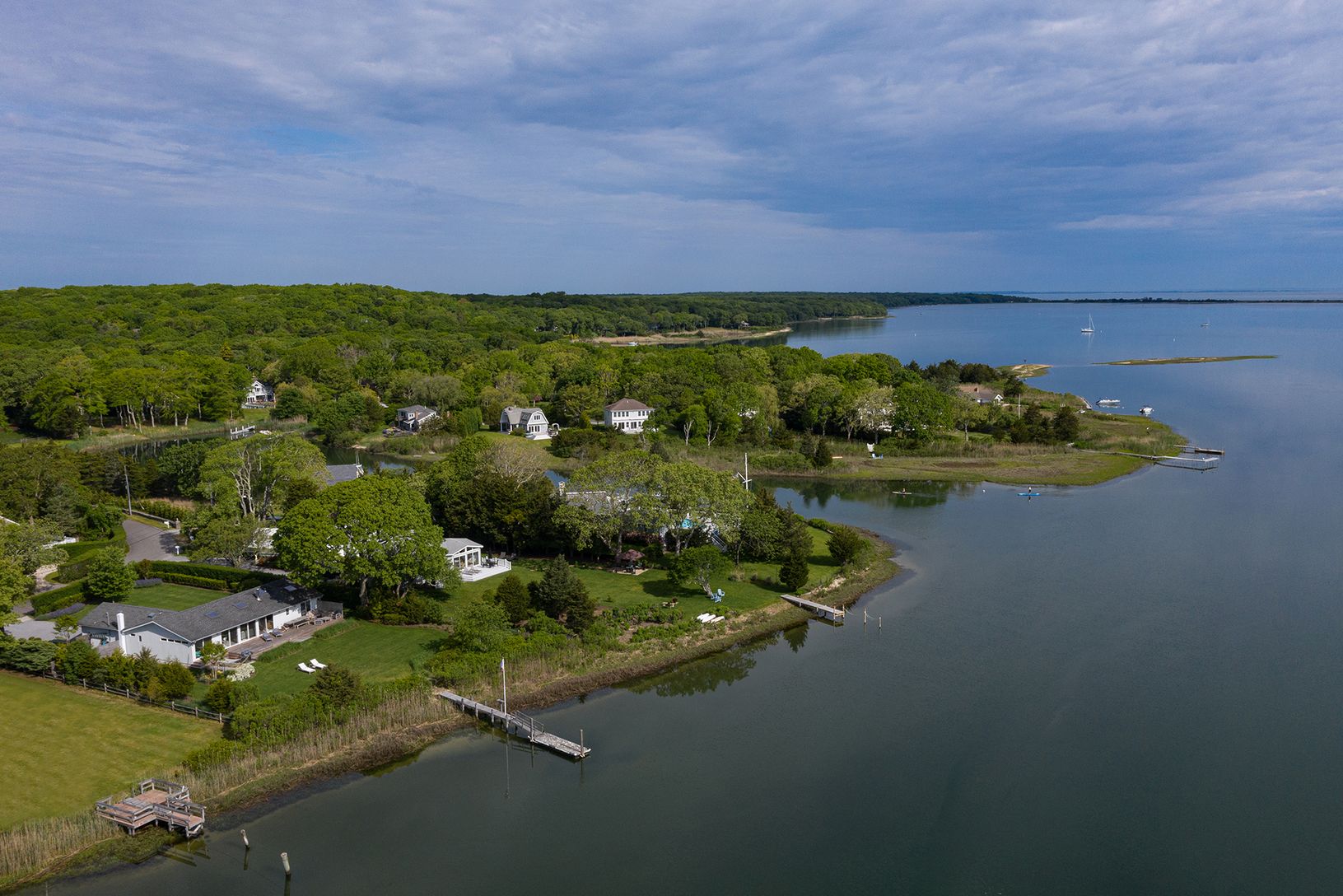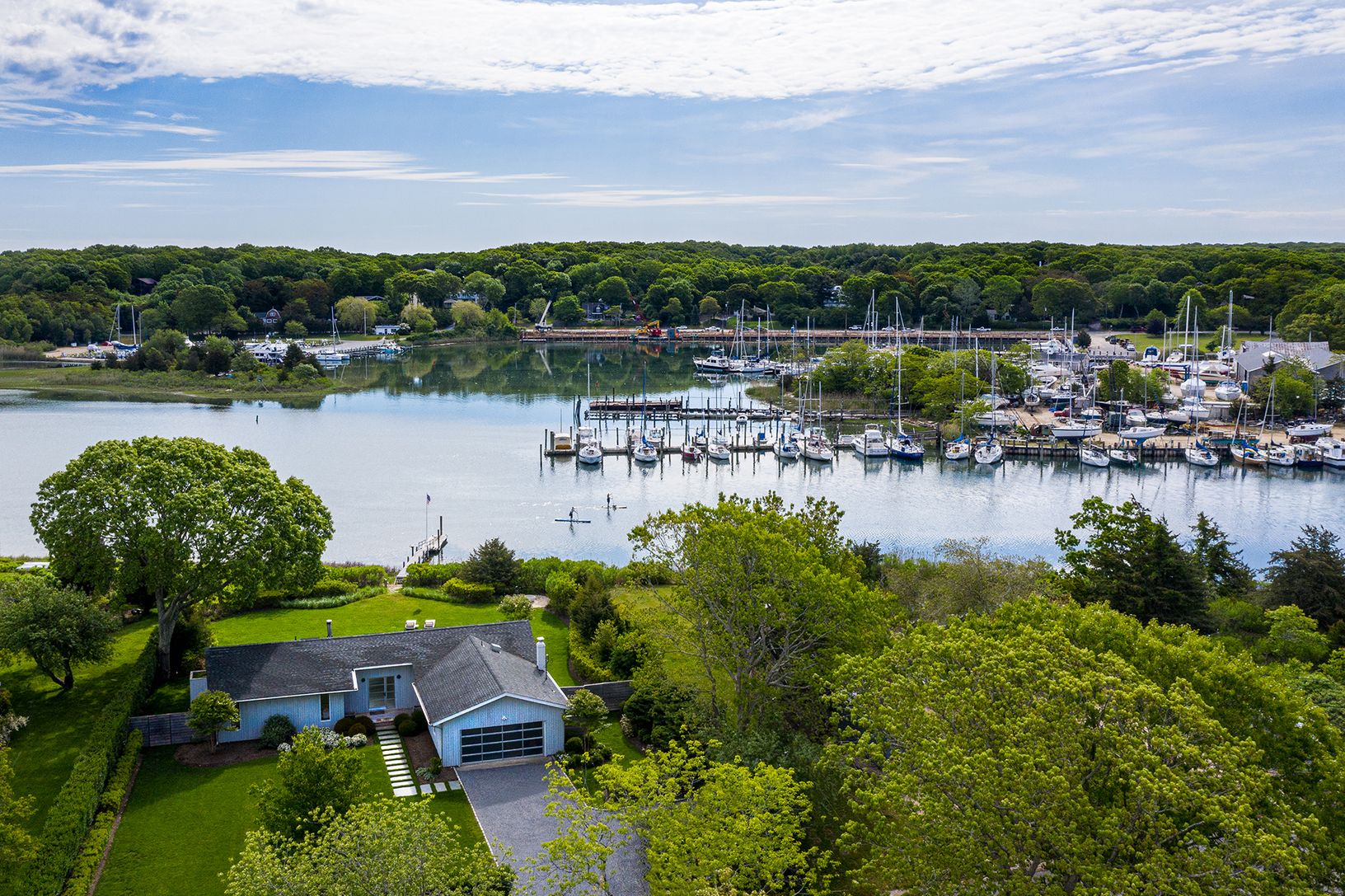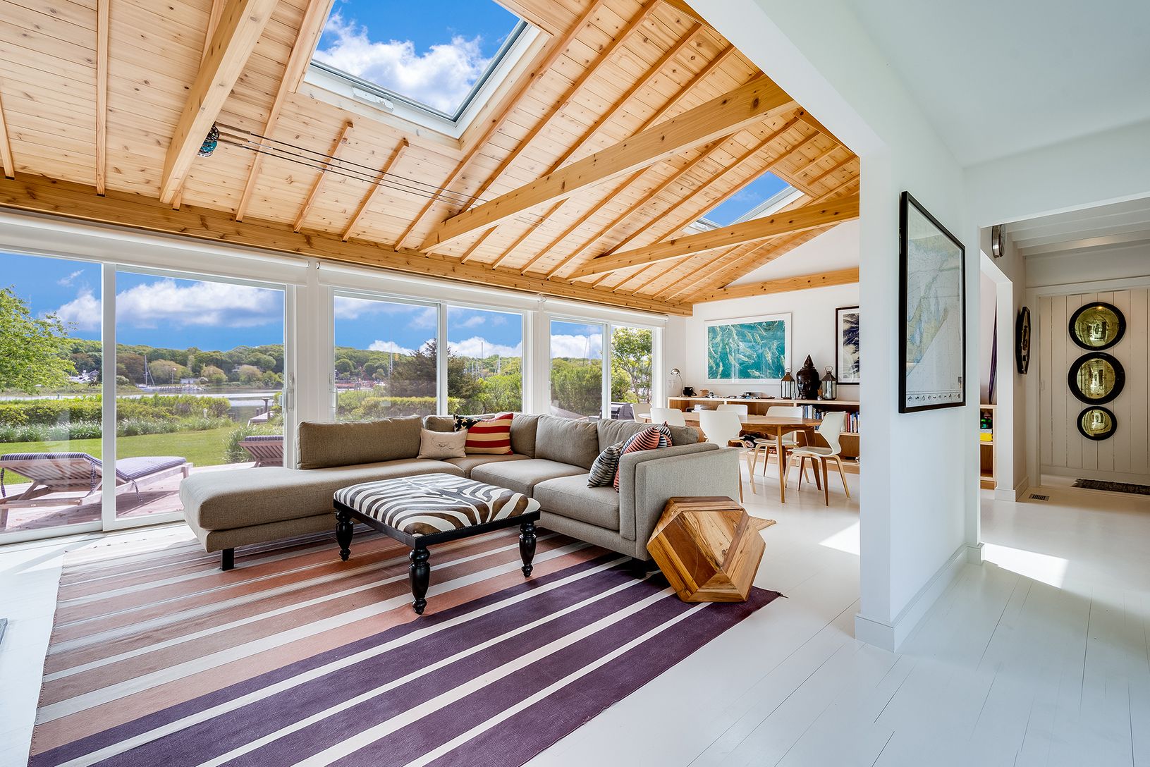 Fresh from a top shelf renovation, this property is the professionally designed home of a world traveller and sports activist. It sits on a quiet cul de sac with a private dock, 115 feet of water frontage and sensational views of the Harbor. Enter into the living area with skylights, exposed beams and white painted oak floors. Walls of glass doors lead to the sumptuous grounds, water access for paddle boarding and boat trips from your dock. Fi