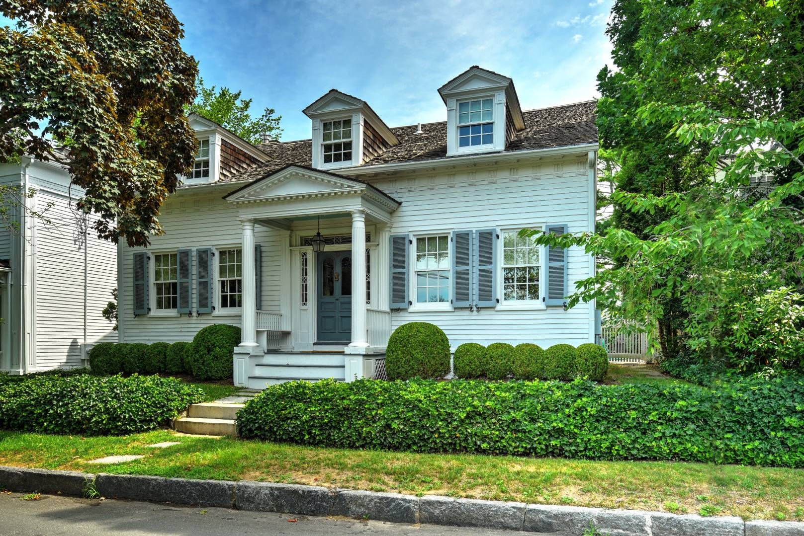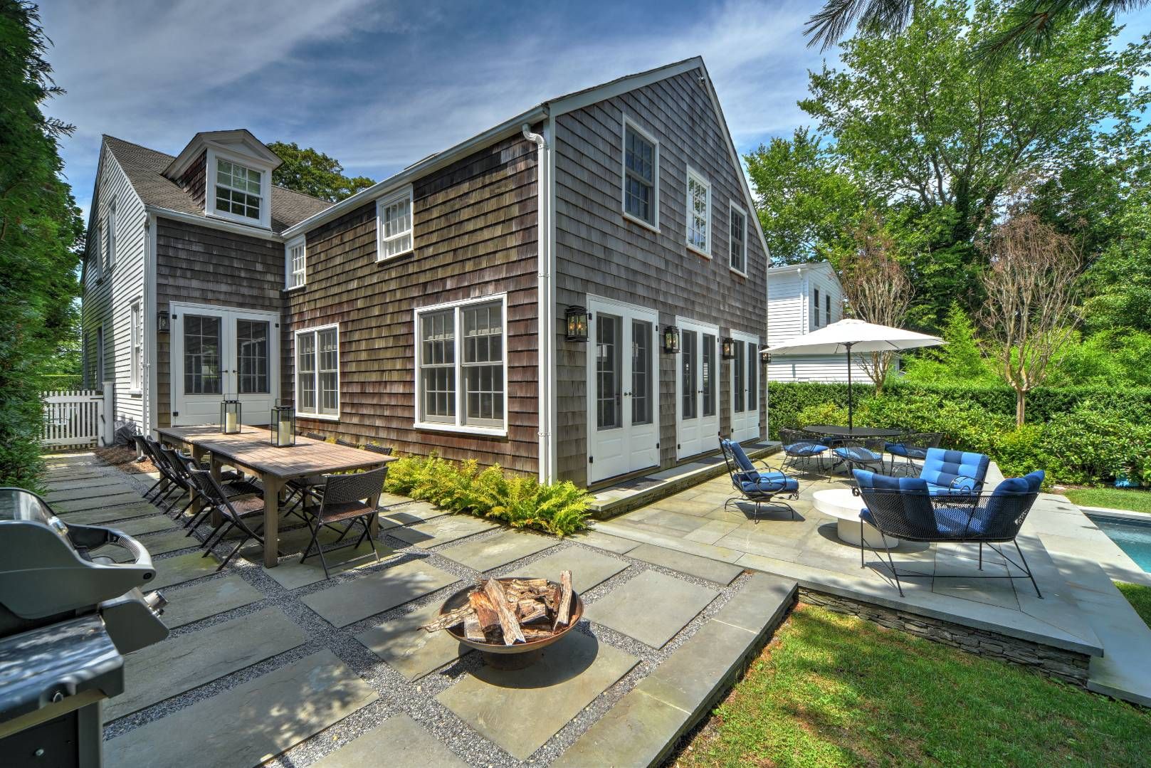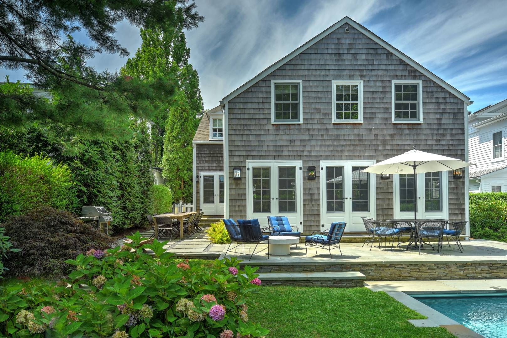 Sag Harbor Village premiere location--Suffolk Street. Impeccably restored early 1800s Georgian-style home featuring 5 bedrooms, 4 baths, 2 pairs of double parlors, 9 fireplaces (currently 2 are operational), a spacious newly renovated eat-in-kitchen with French doors leading out to a lovely terraced private garden and heated Gunite pool. The front elevation features elegant 6 over 6 windows and an impressive front door with gorgeous sidelights